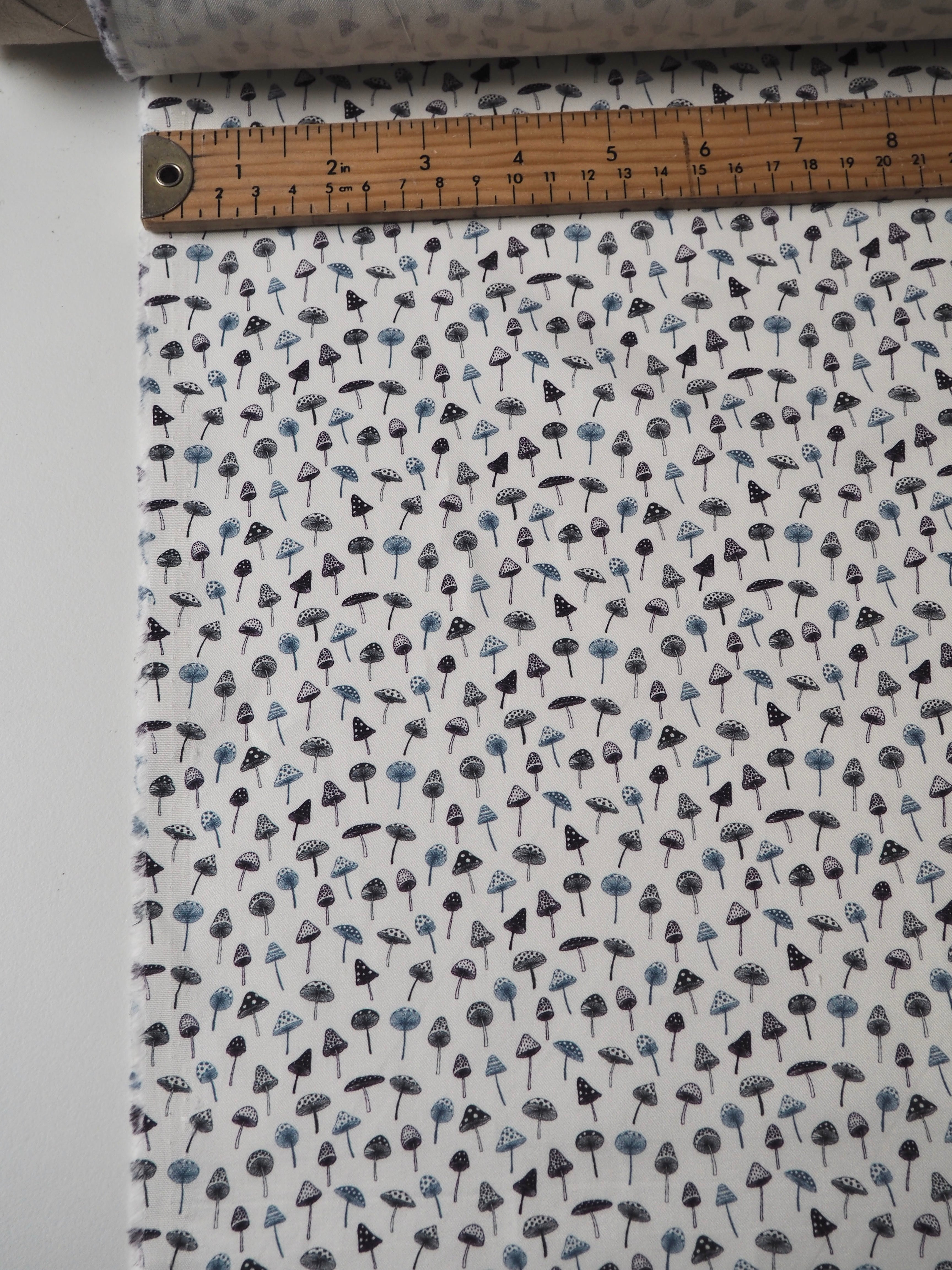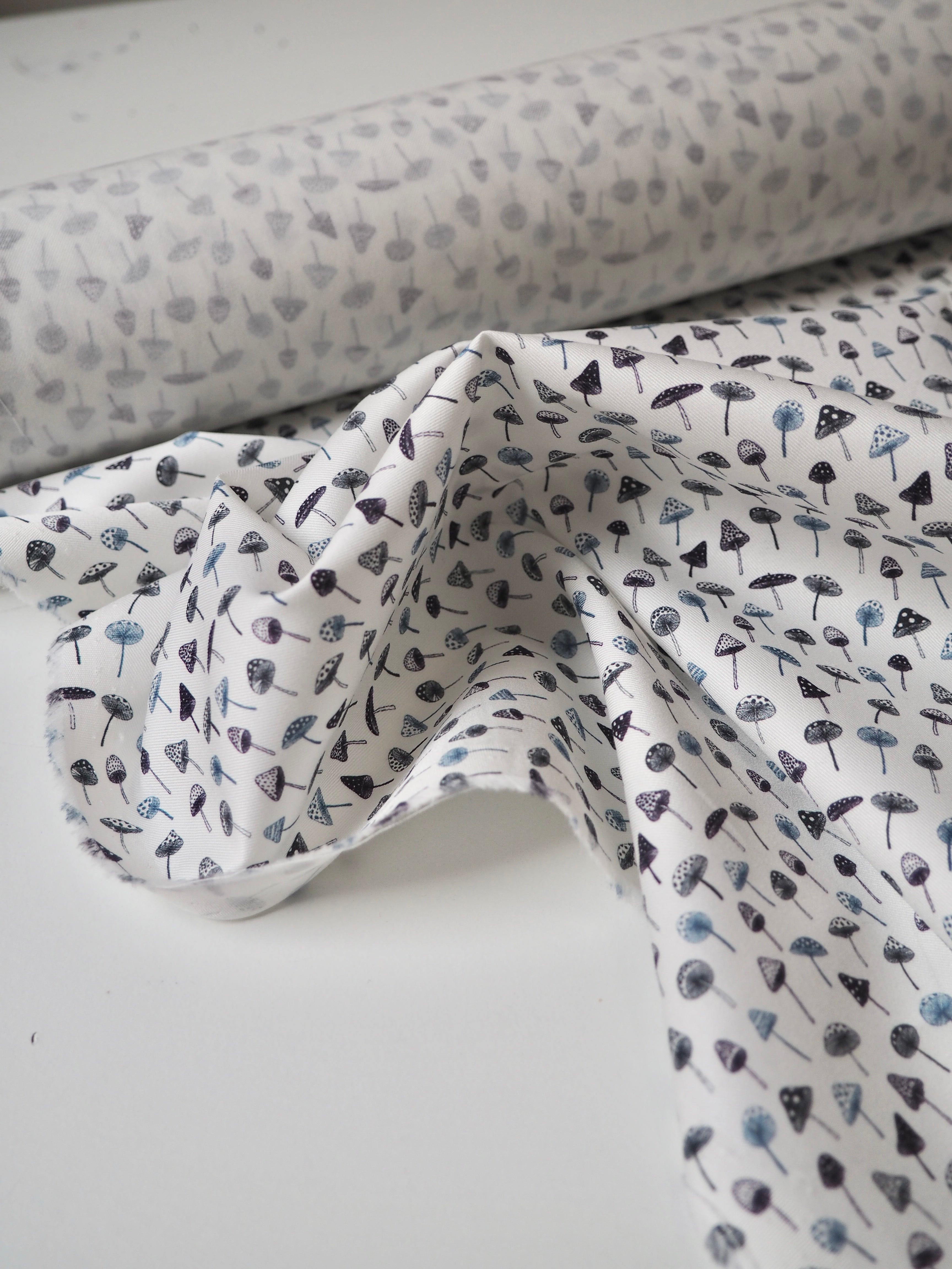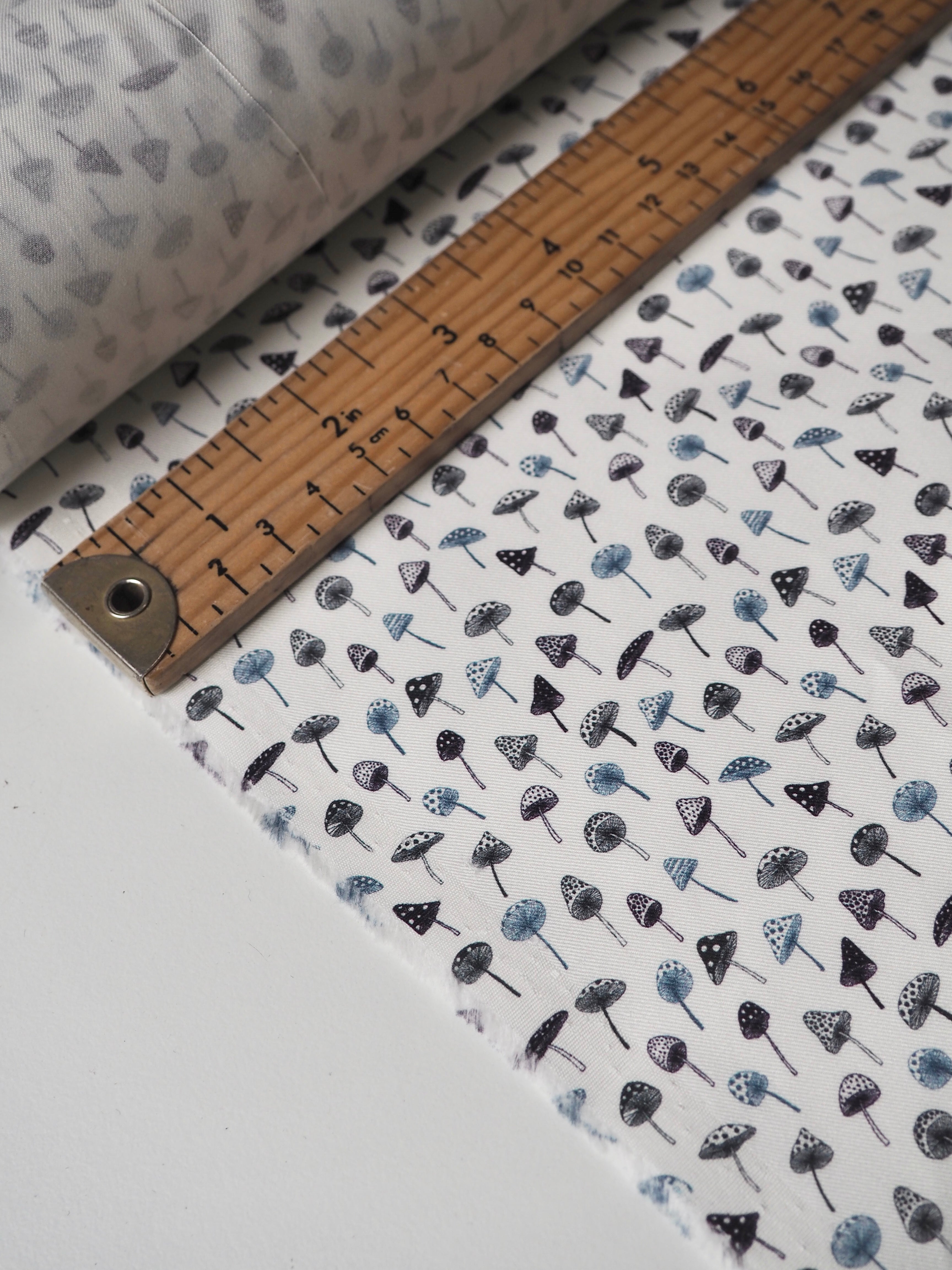 This ex-designer fabric is a classic Liberty cotton twill. It's a small scale mushroom print. A top-quality Liberty cotton in a light to medium weight. Soft with a lovely drape and slight crispness. Has a wonderful cotton handle and a slight sheen. Fully opaque! We would love to see a light jacket or bag!