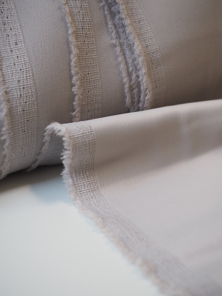 This ex-designer fabric is a viscose lining. It has a twill weave in a soft but sleek viscose fibre. Lightweight with a gentle drape and shiny satin finish. Great movement! Ideal for lining any garment, especially a suit jacket or coat!