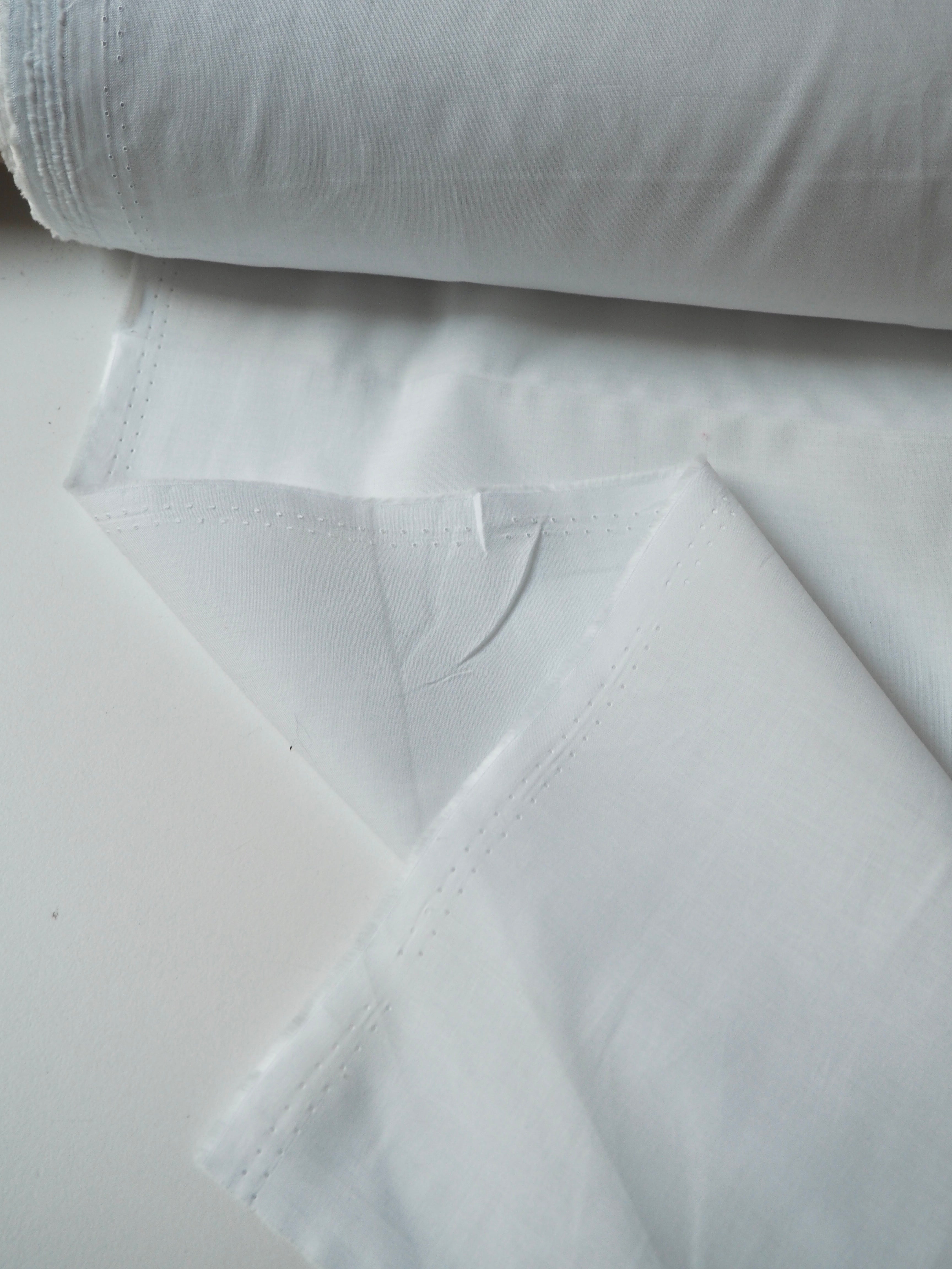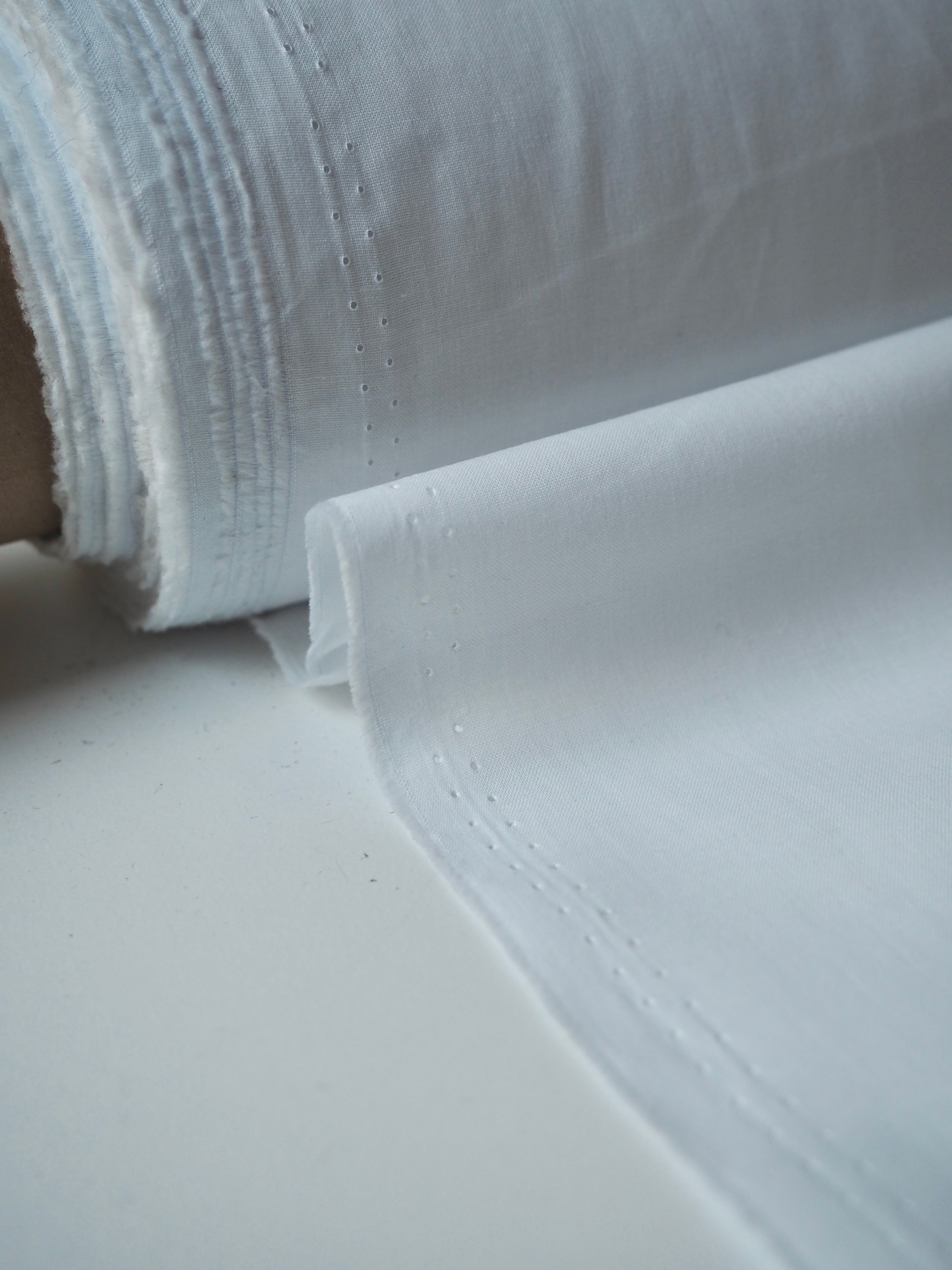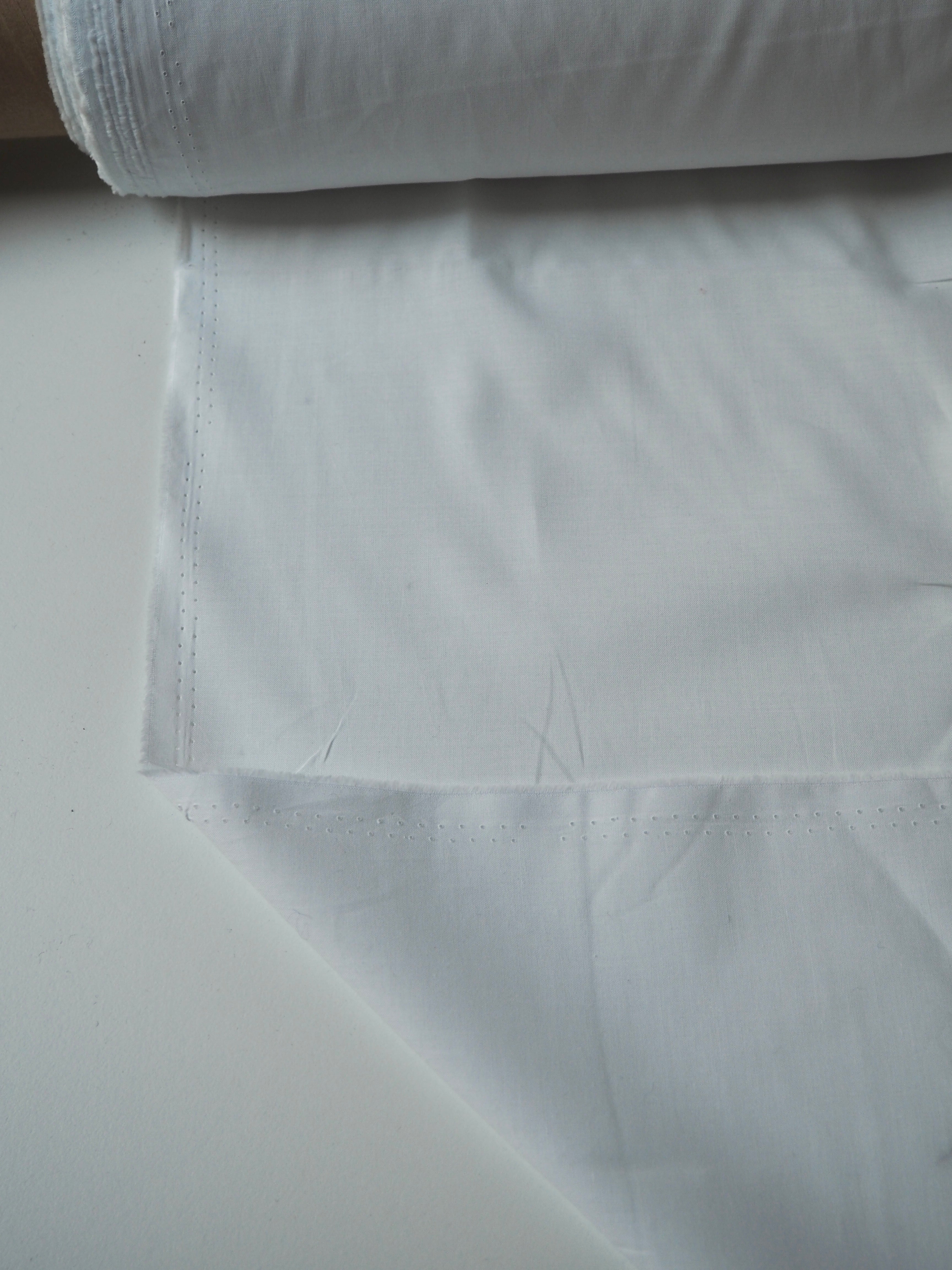 This ex-designer fabric is a cotton lawn. It's a classic white cloth with a plain weave and a comfortable handle and drape. It's soft and easy to wear, and perfect for any staple garments. This one is lightweight and is semi- sheer. Perfect as a lining or for a nice summer top!