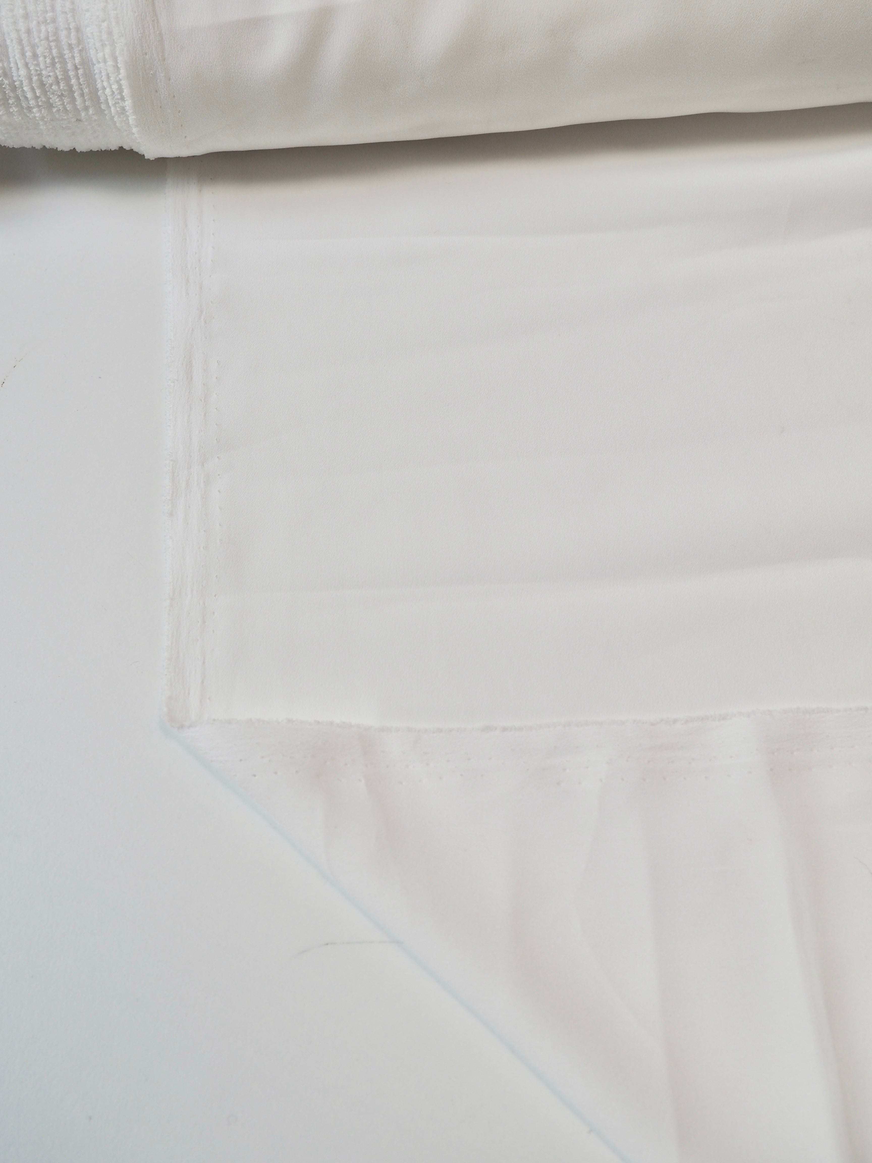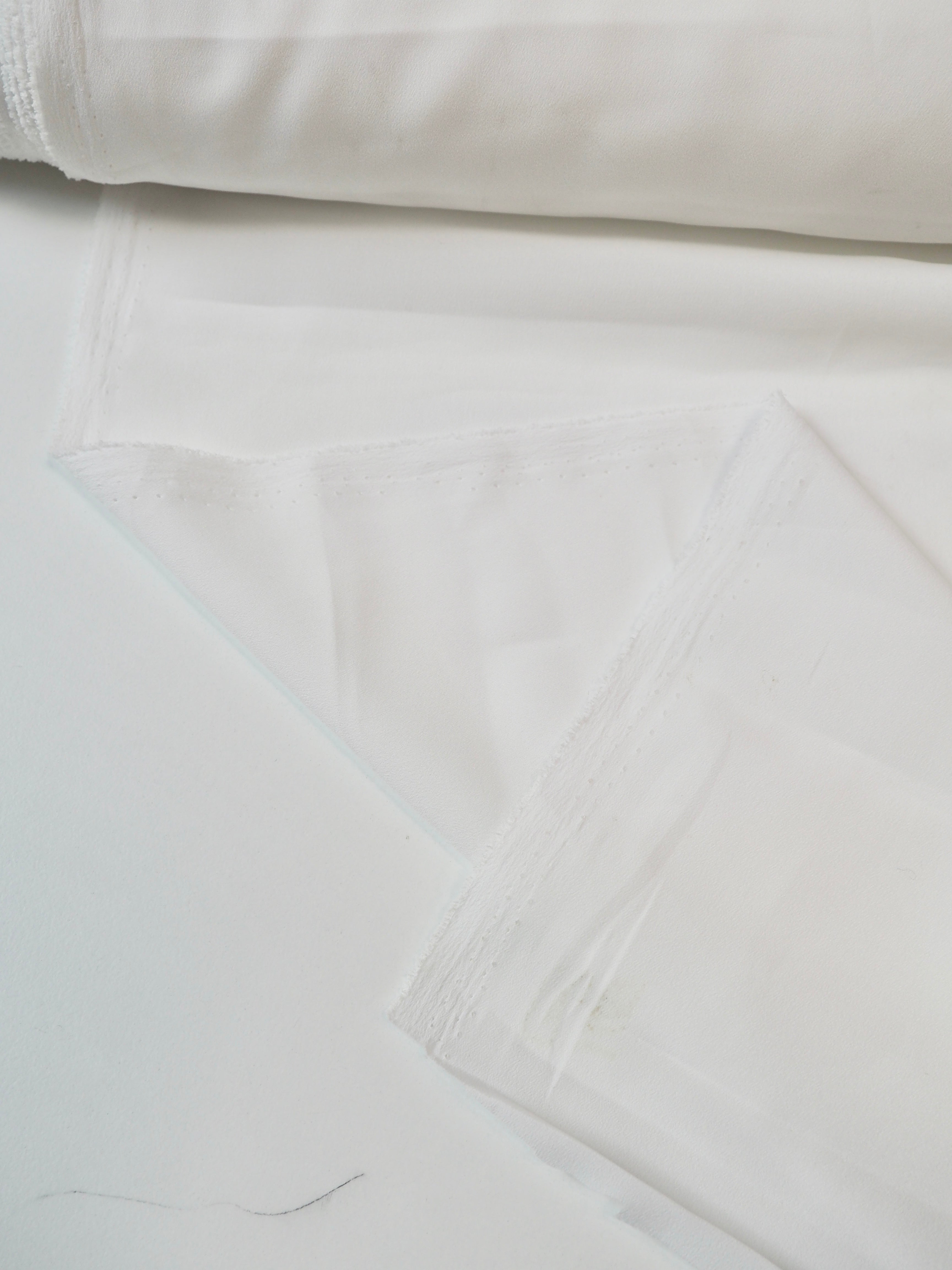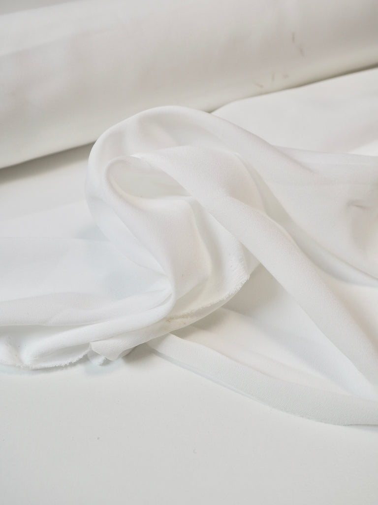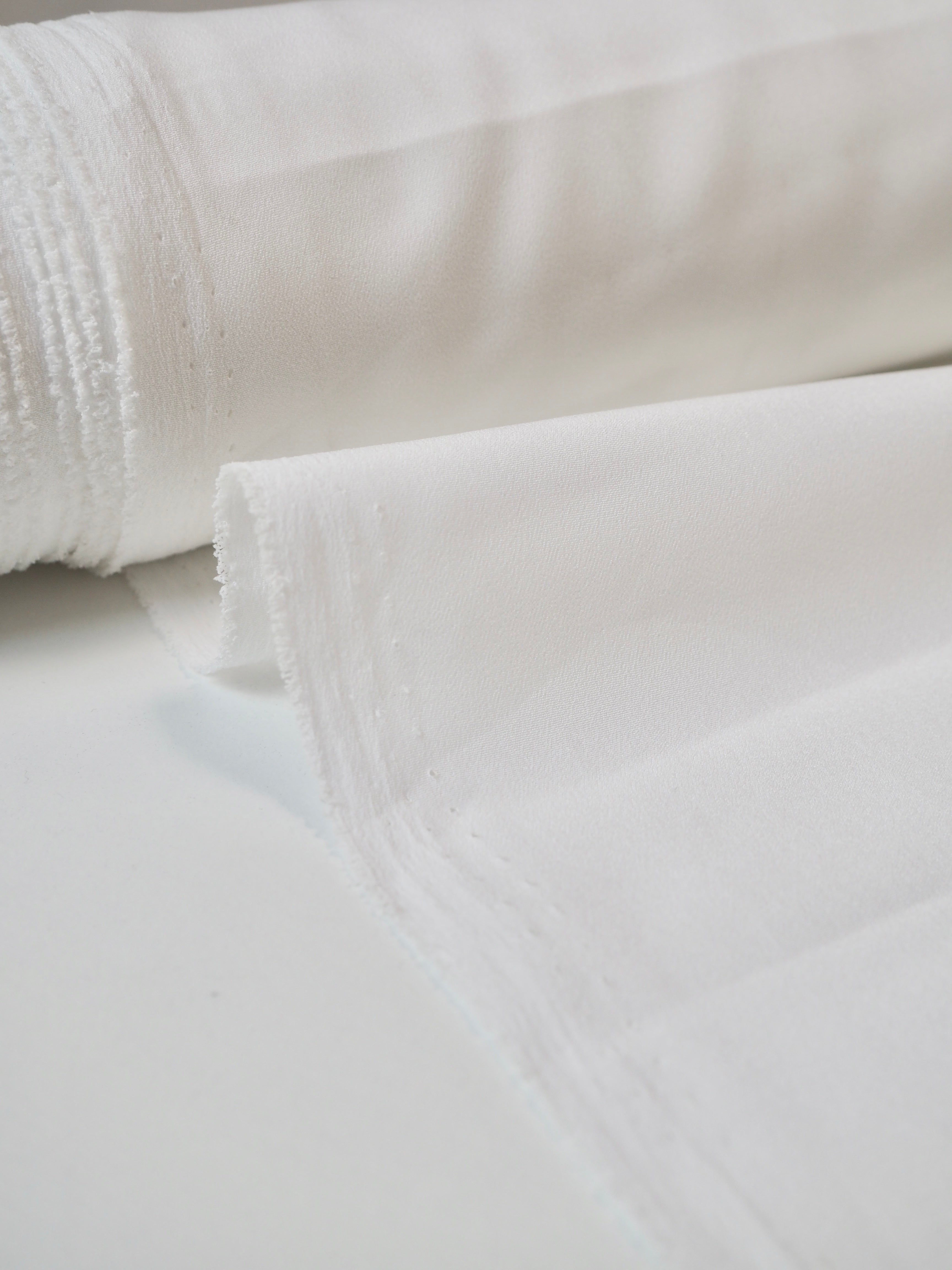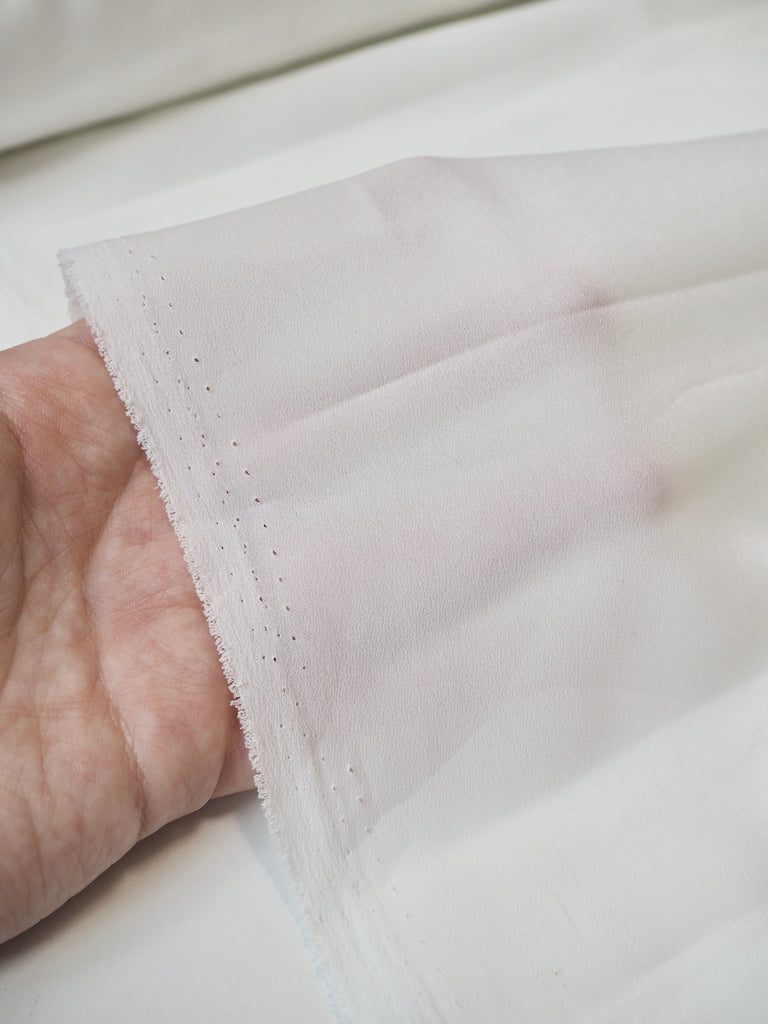 This ex-designer fabric is a crepe de chine. It has the characteristic gentler crepe texture but is still very soft and lightweight. It's very drapey and has fantastic movement. Semi-sheer. Would be perfect for a lining or a slip dress!