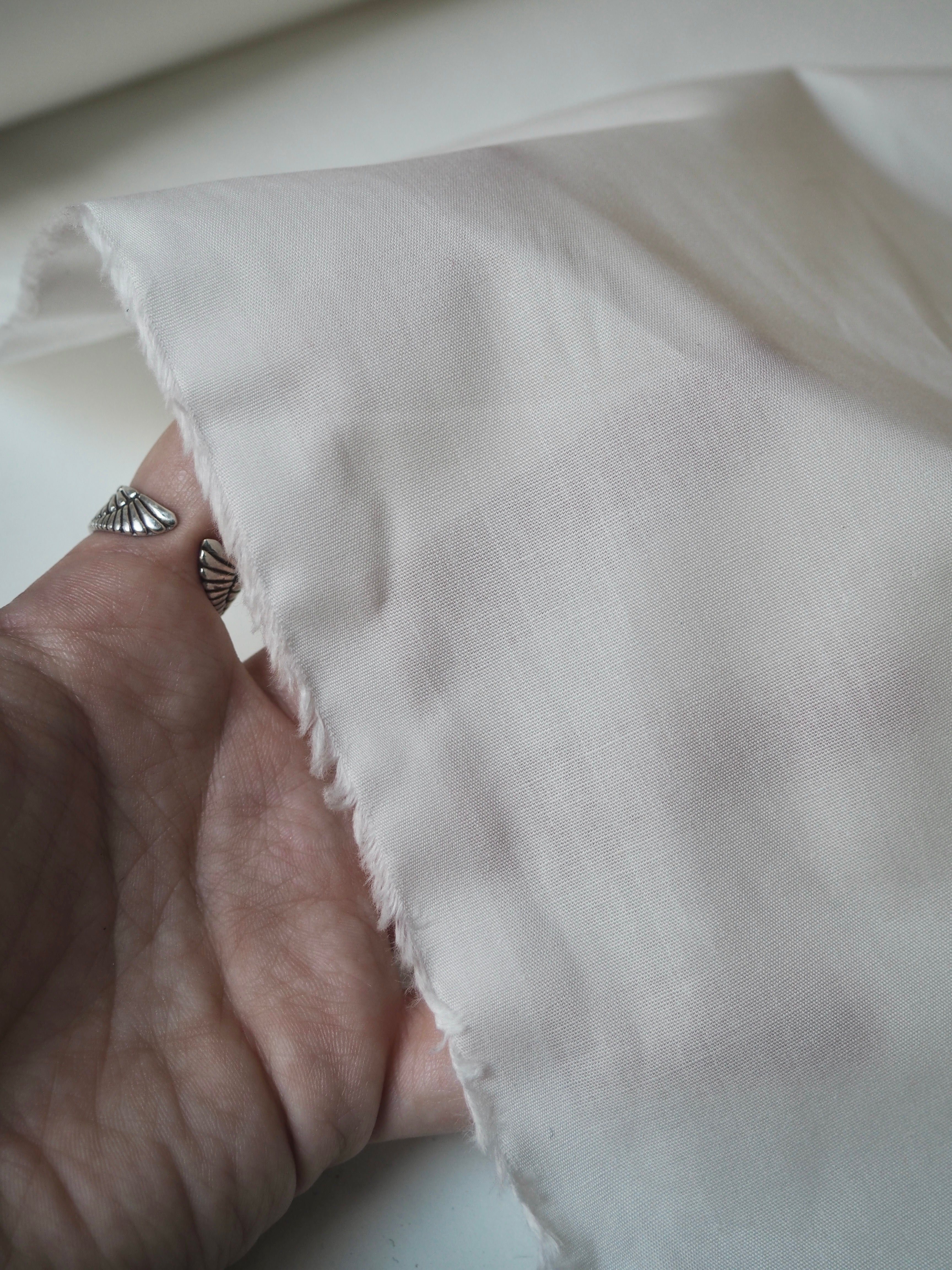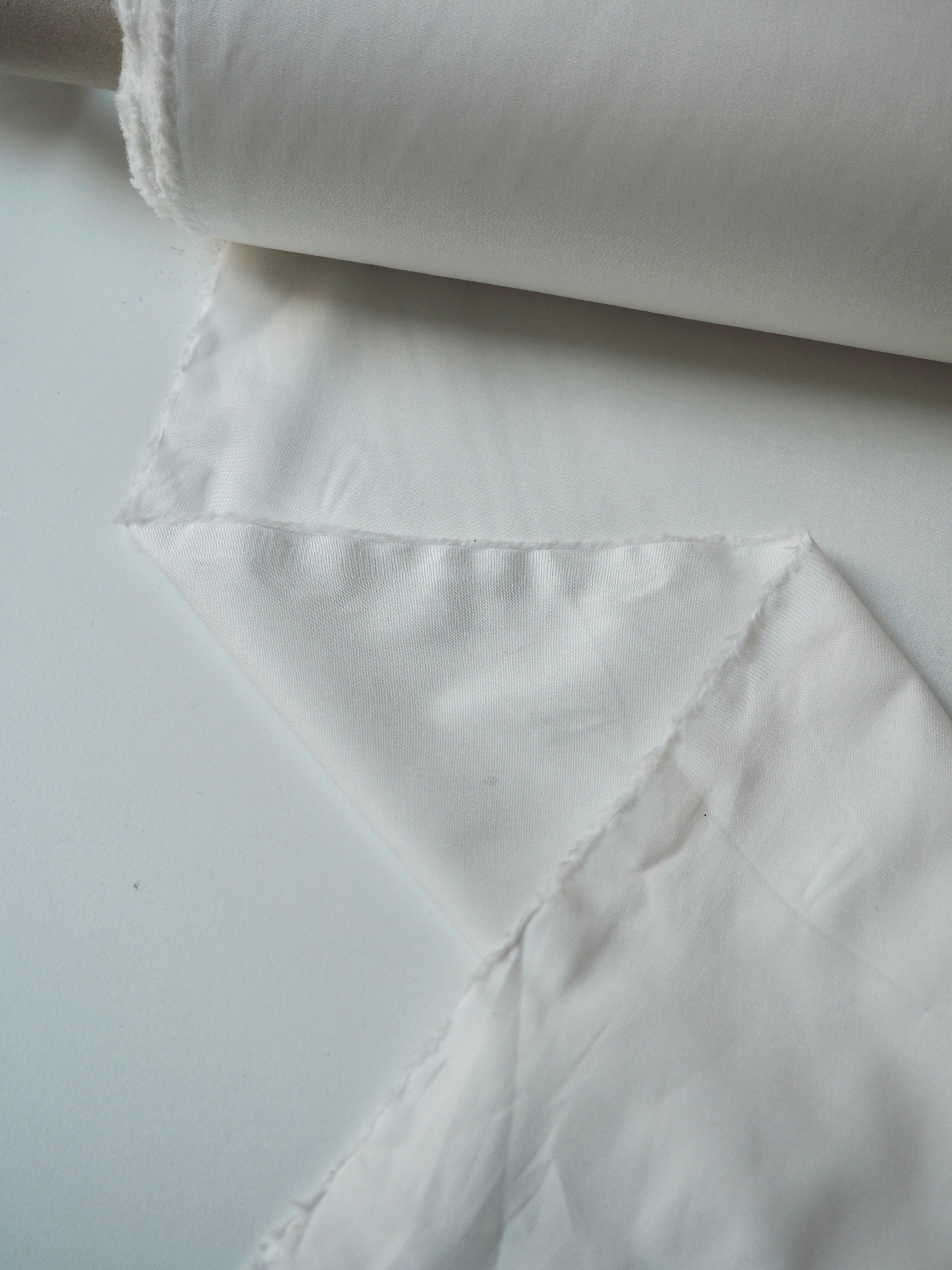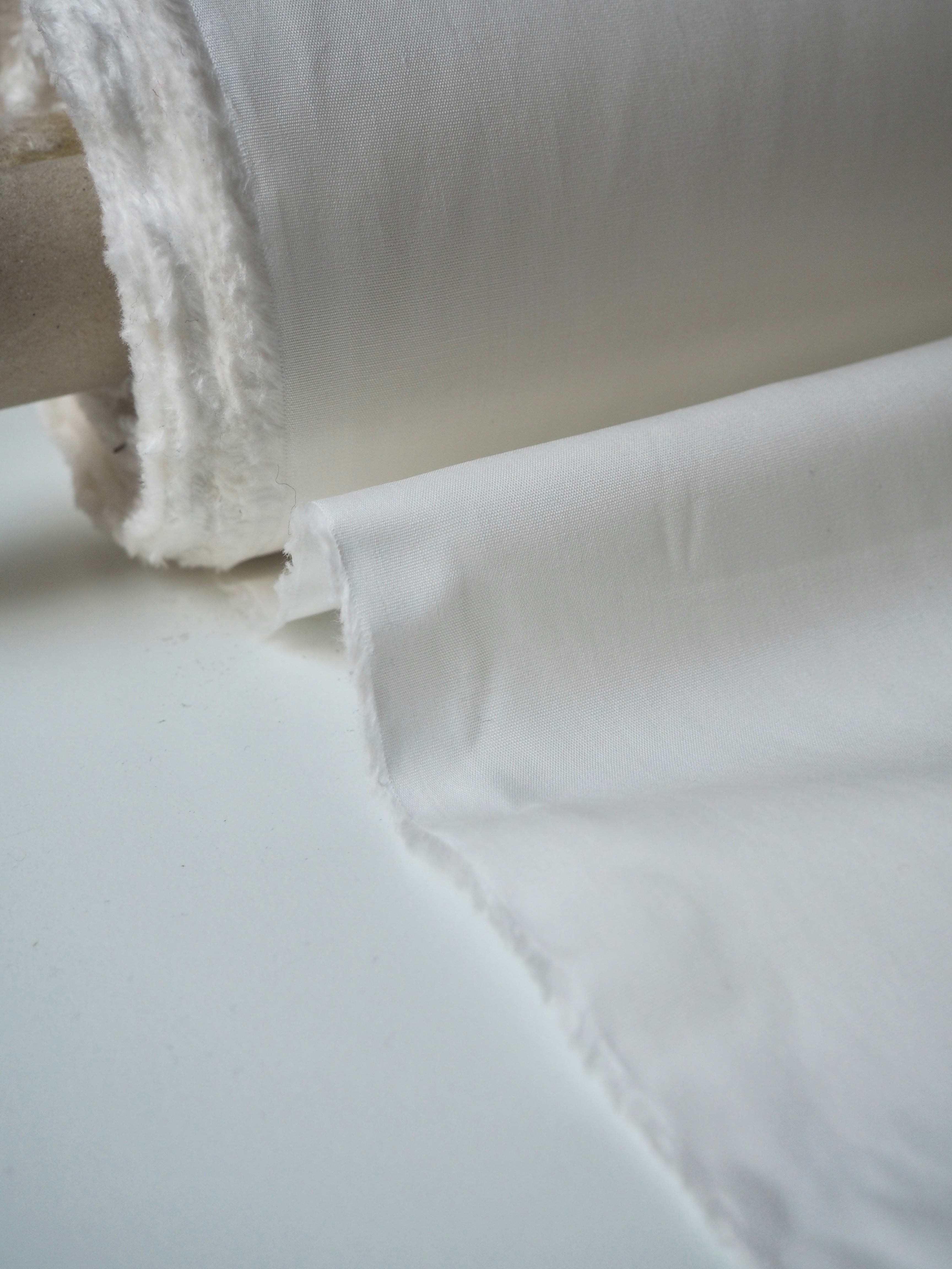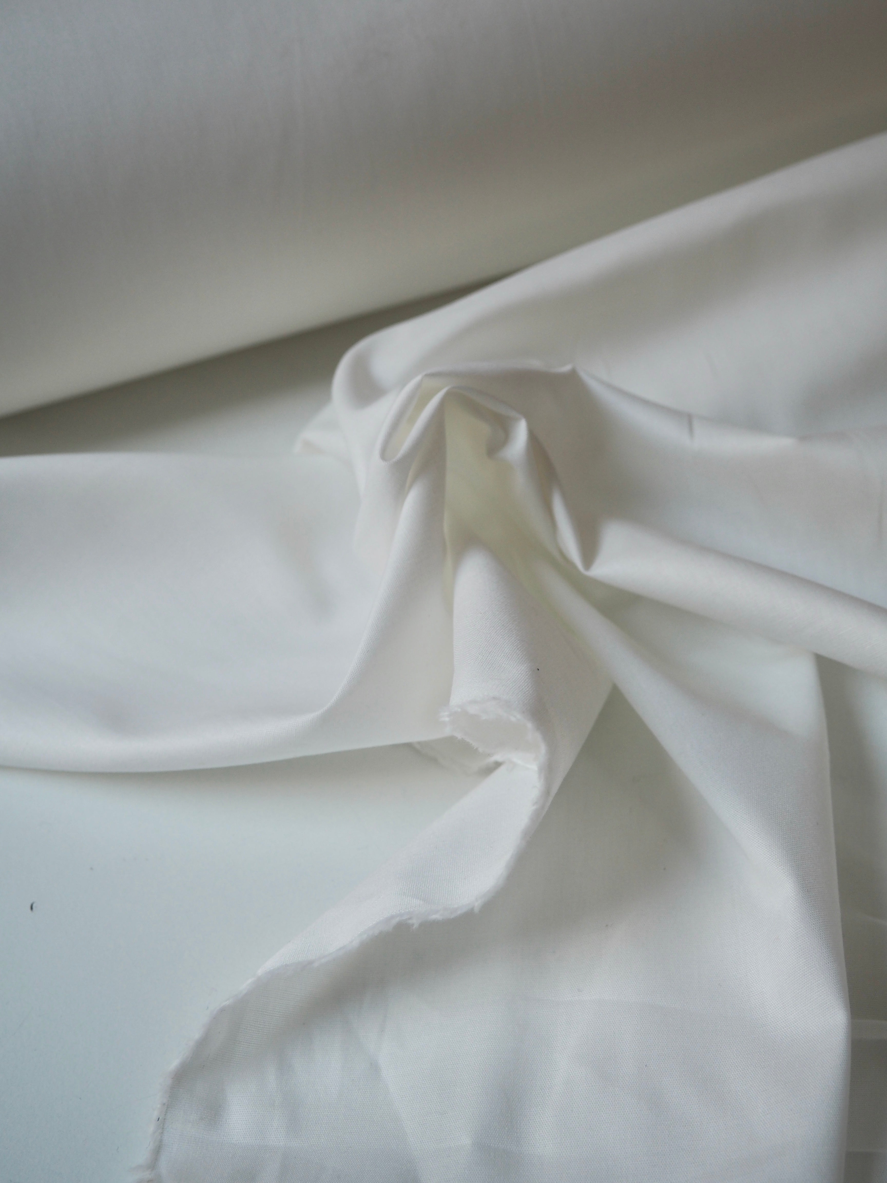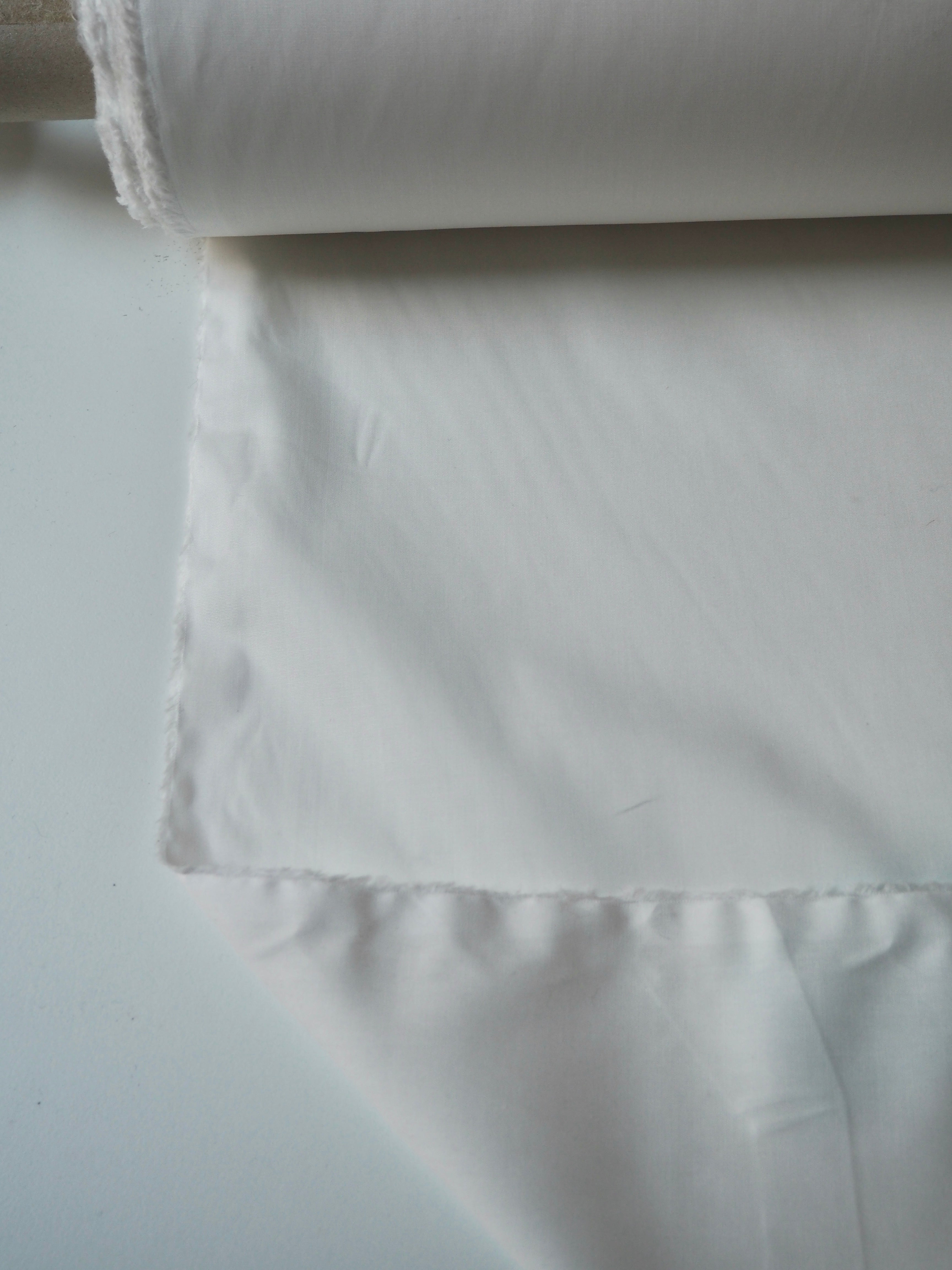 This ex-designer fabric is a cotton lawn. It's a classic white cloth with a plain weave and a comfortable handle and drape. It's soft and easy to wear, and perfect for any staple garments. This one is lightweight, with a crisper handle, and is slightly sheer. Perfect as a lining or for a nice summer top!