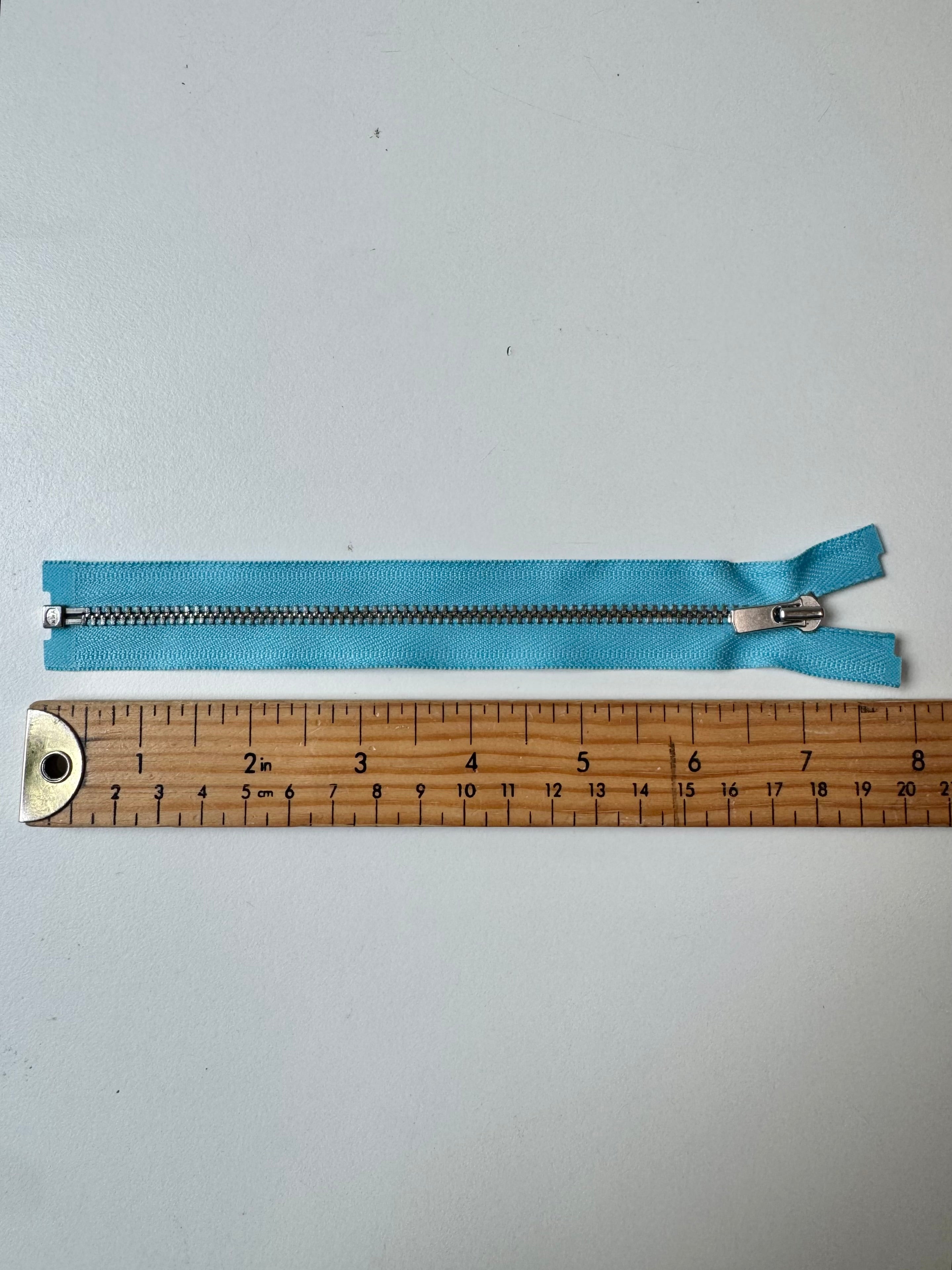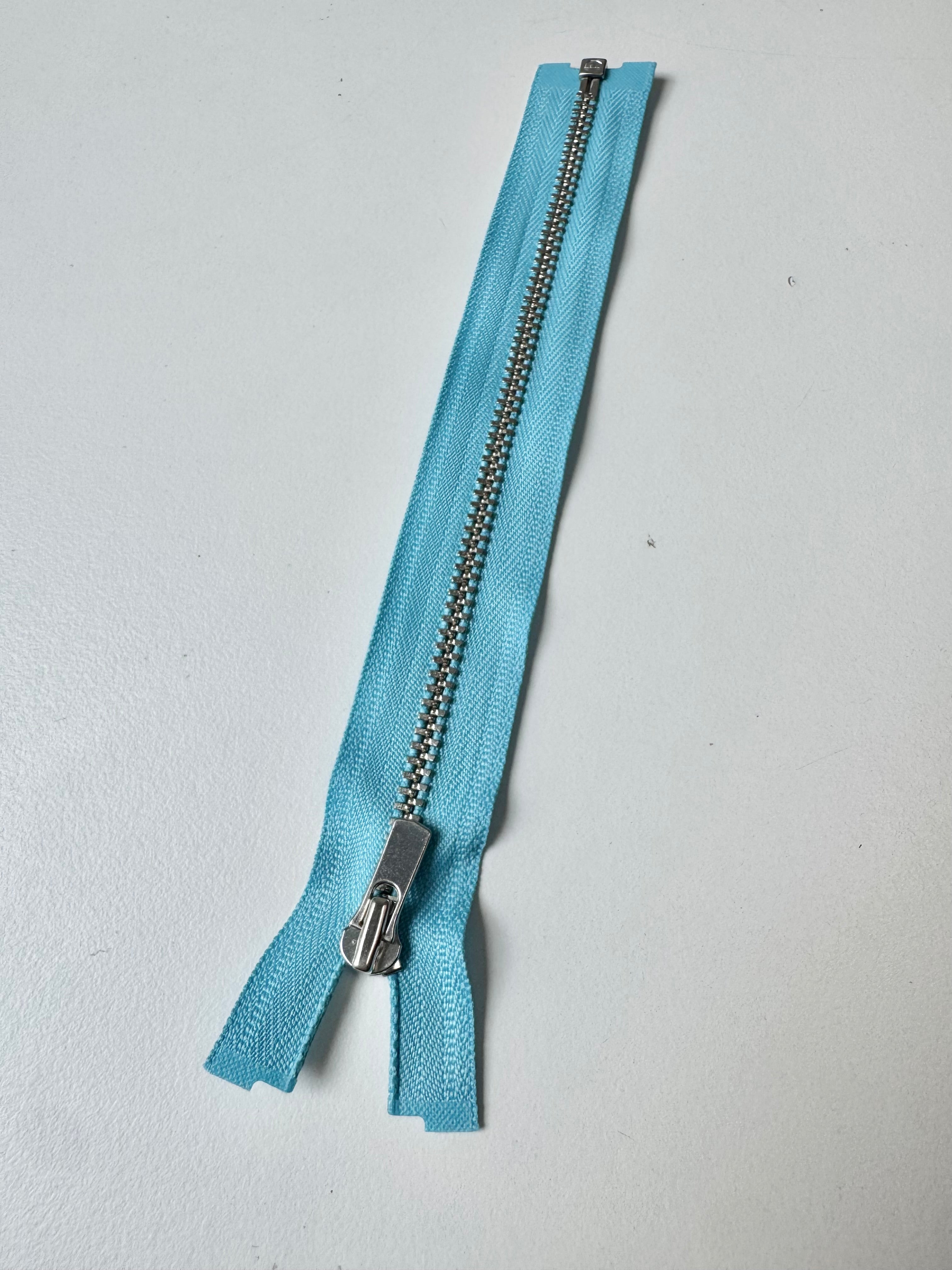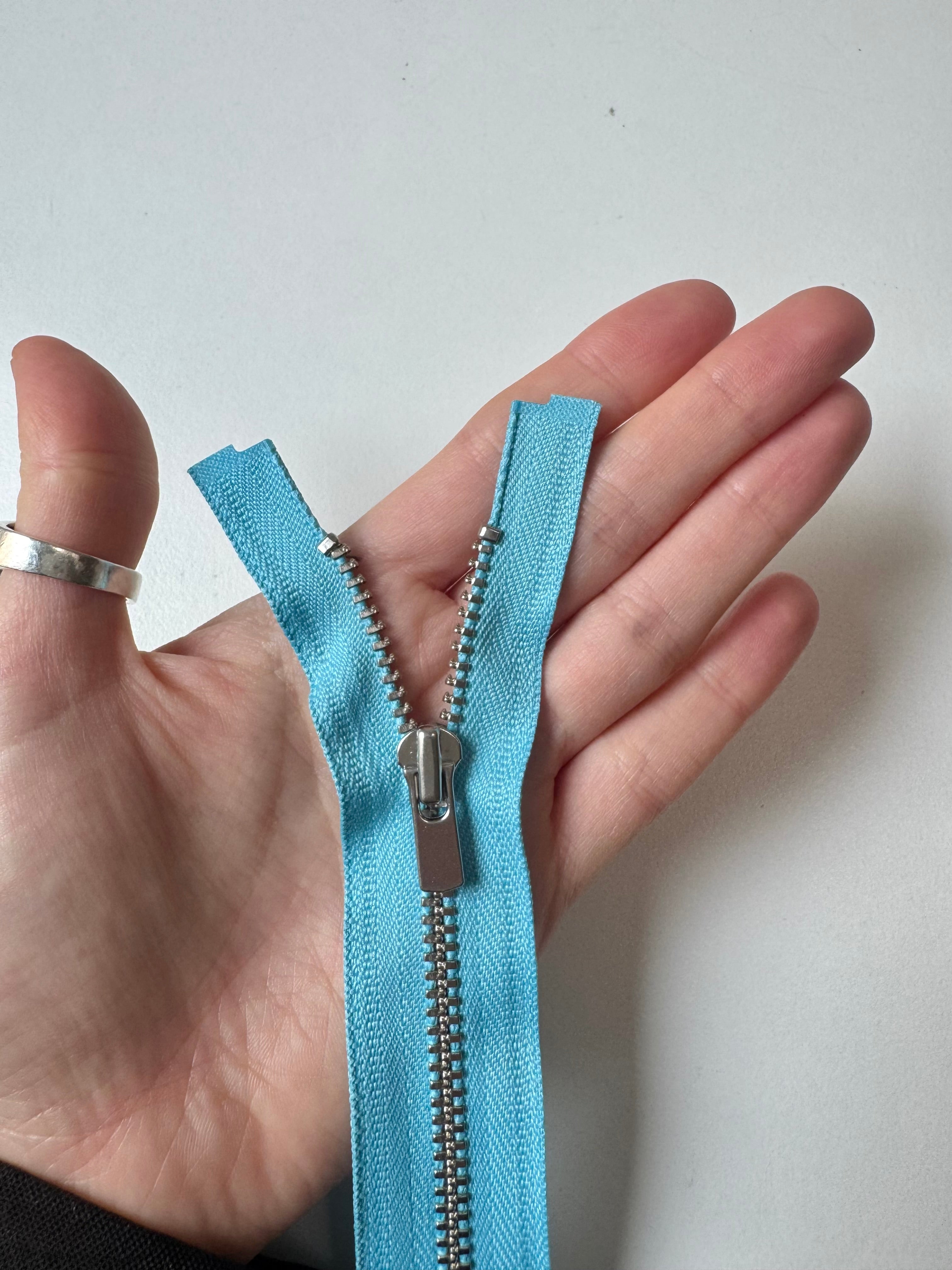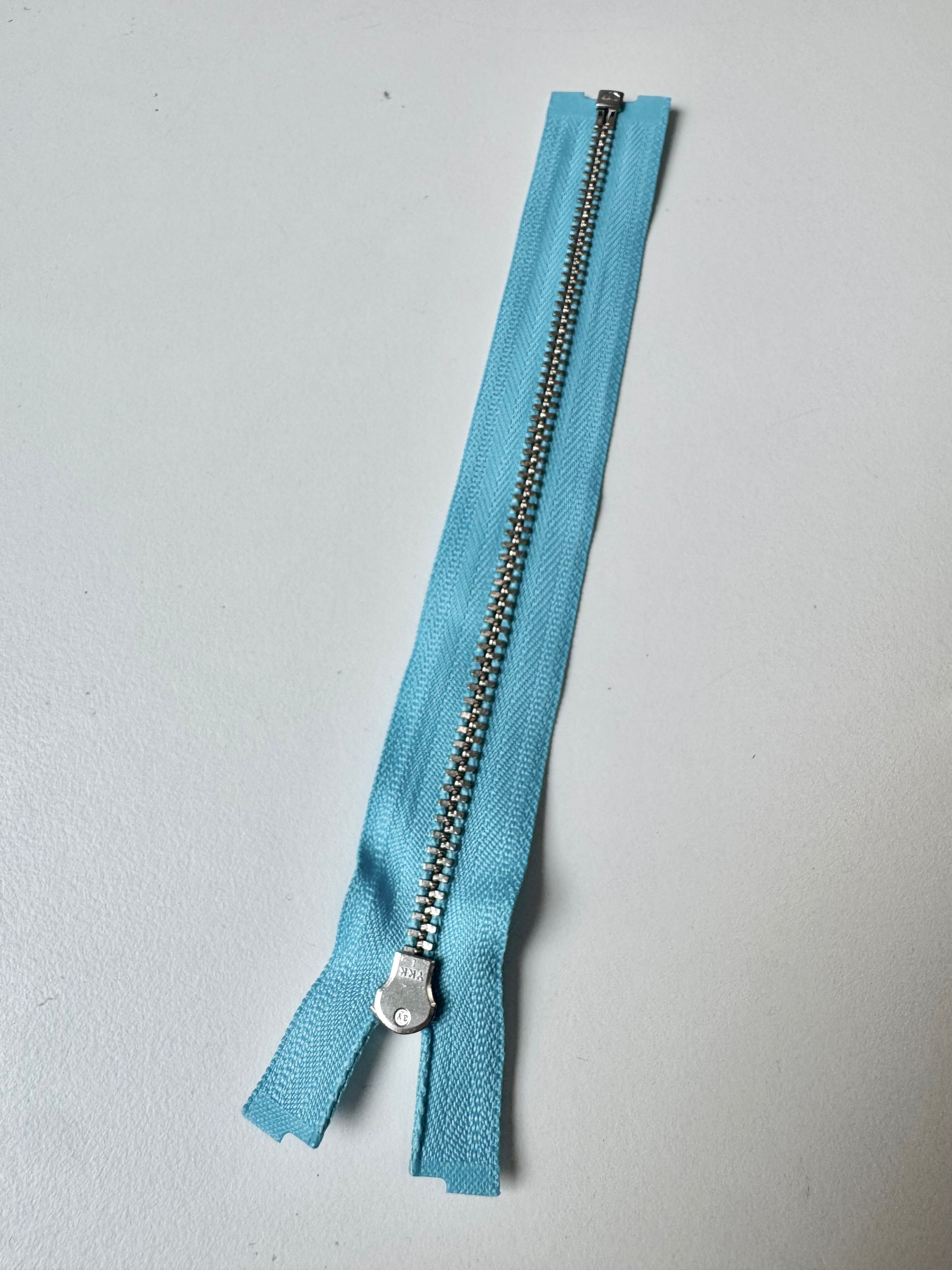 These YKK ex-designer open-ended zips have a sturdy tape and silver metal 4mm teeth. Matching metal zipper pull.