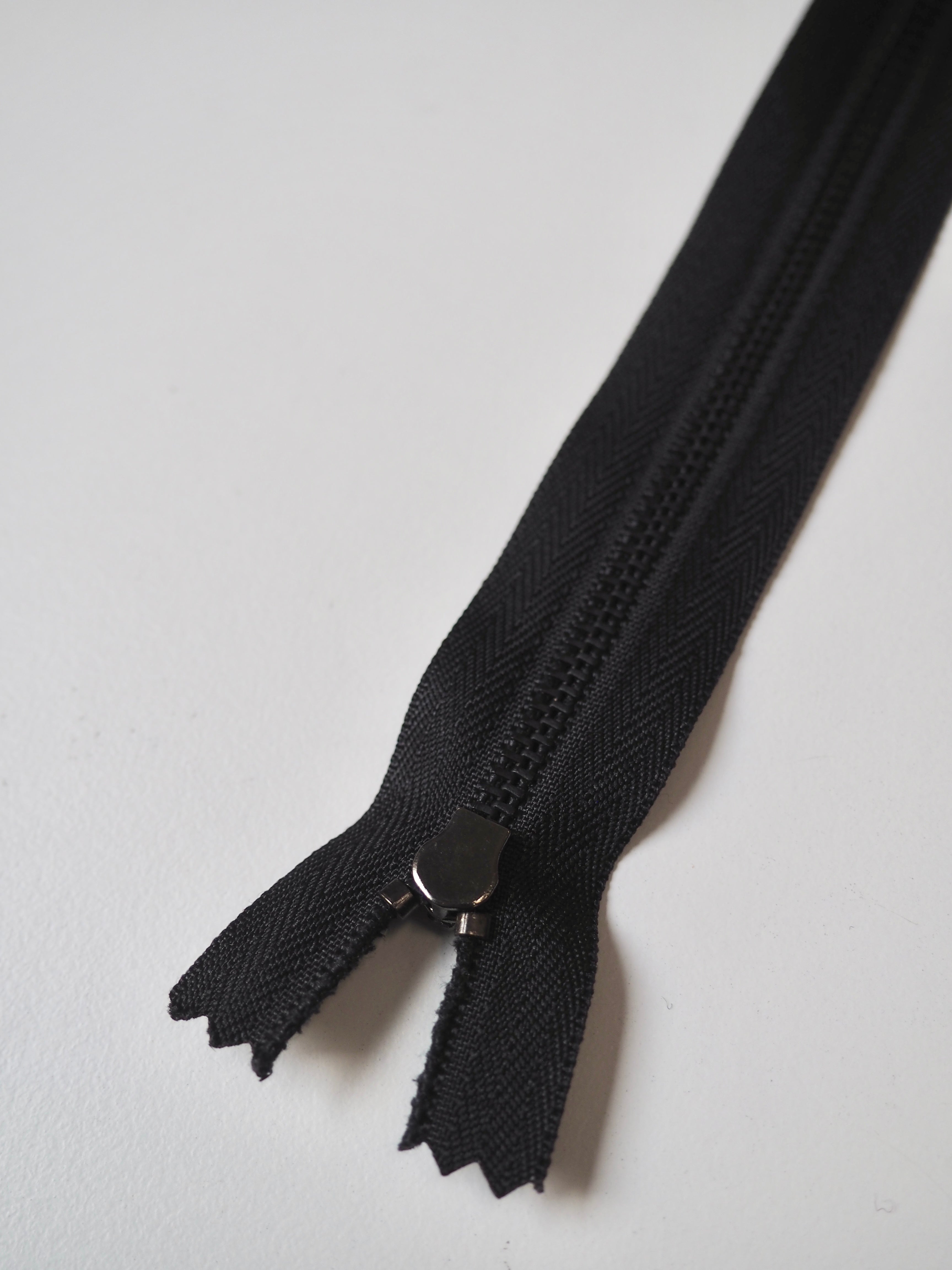 These ex-designer close-ended zips have narrow metal 4mm teeth and a metal zipper pull.