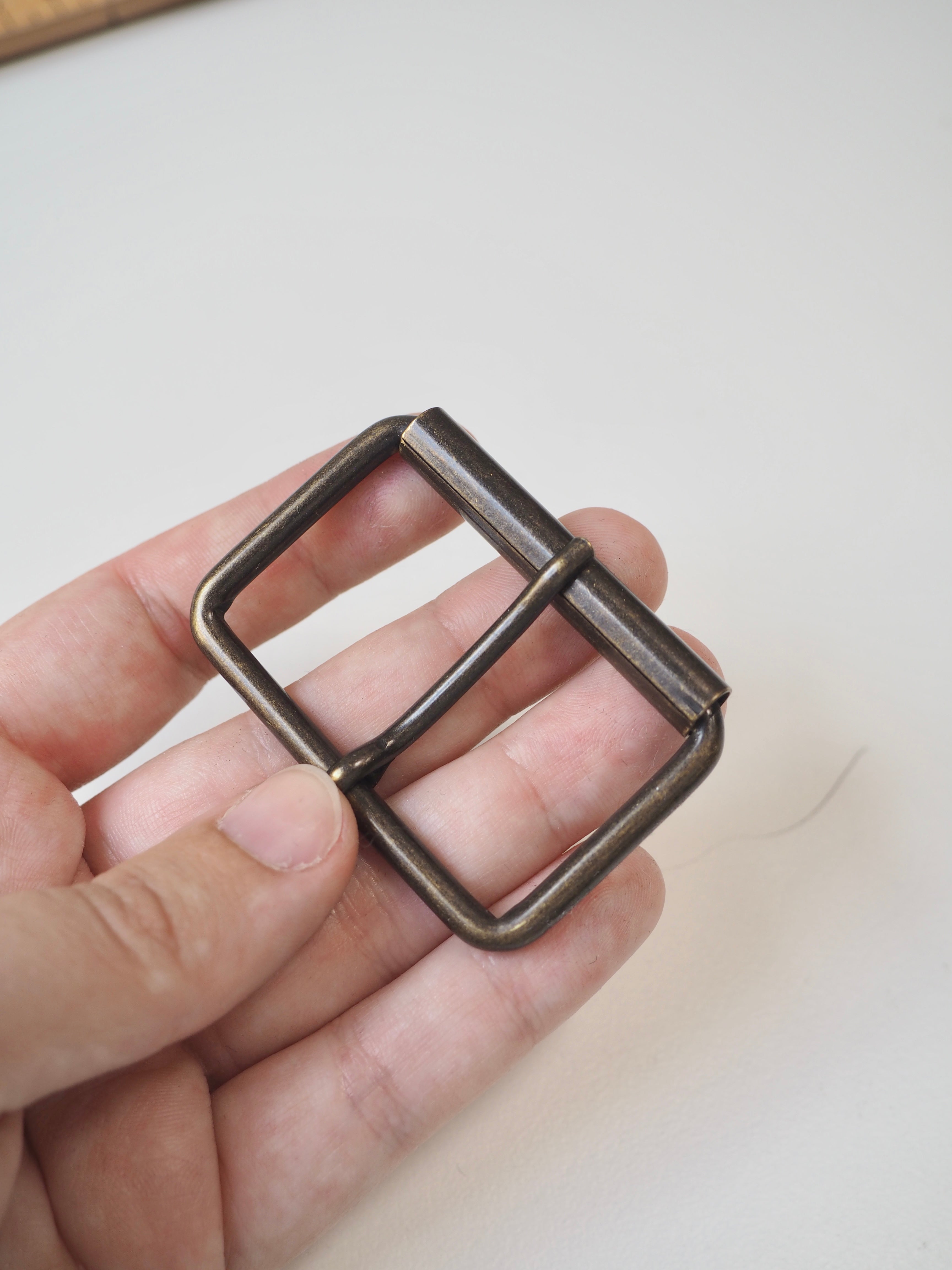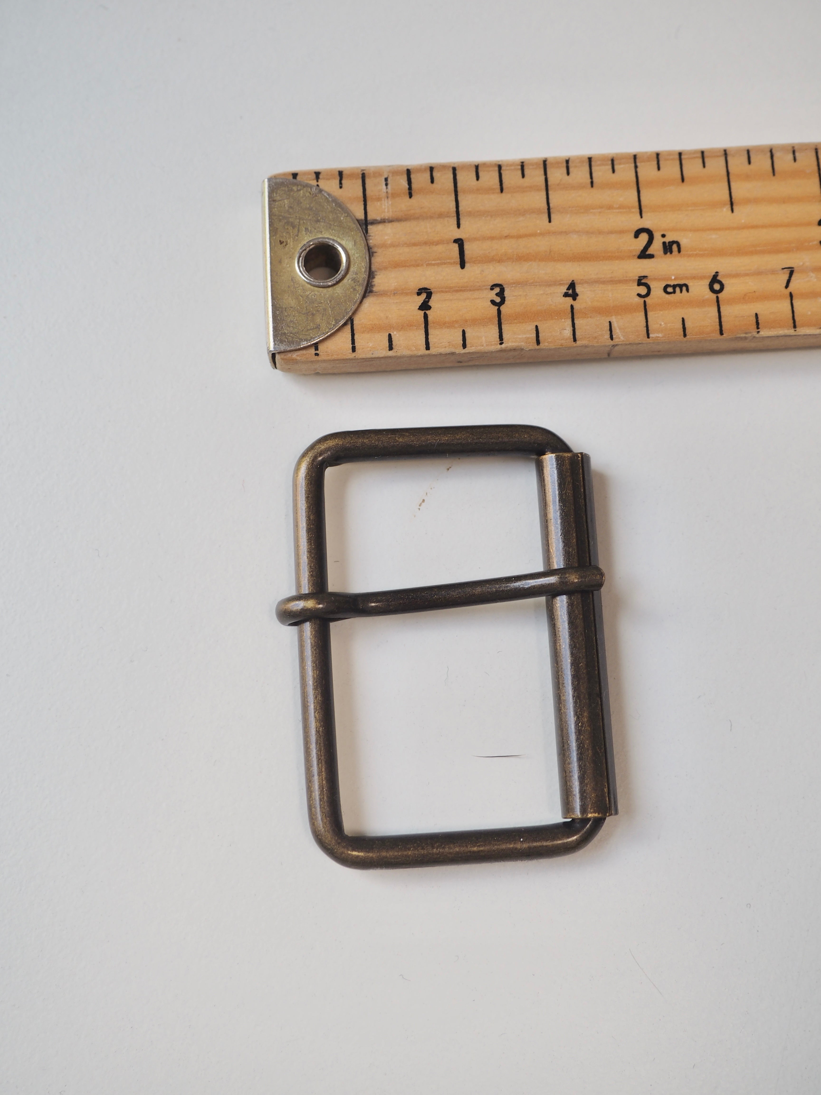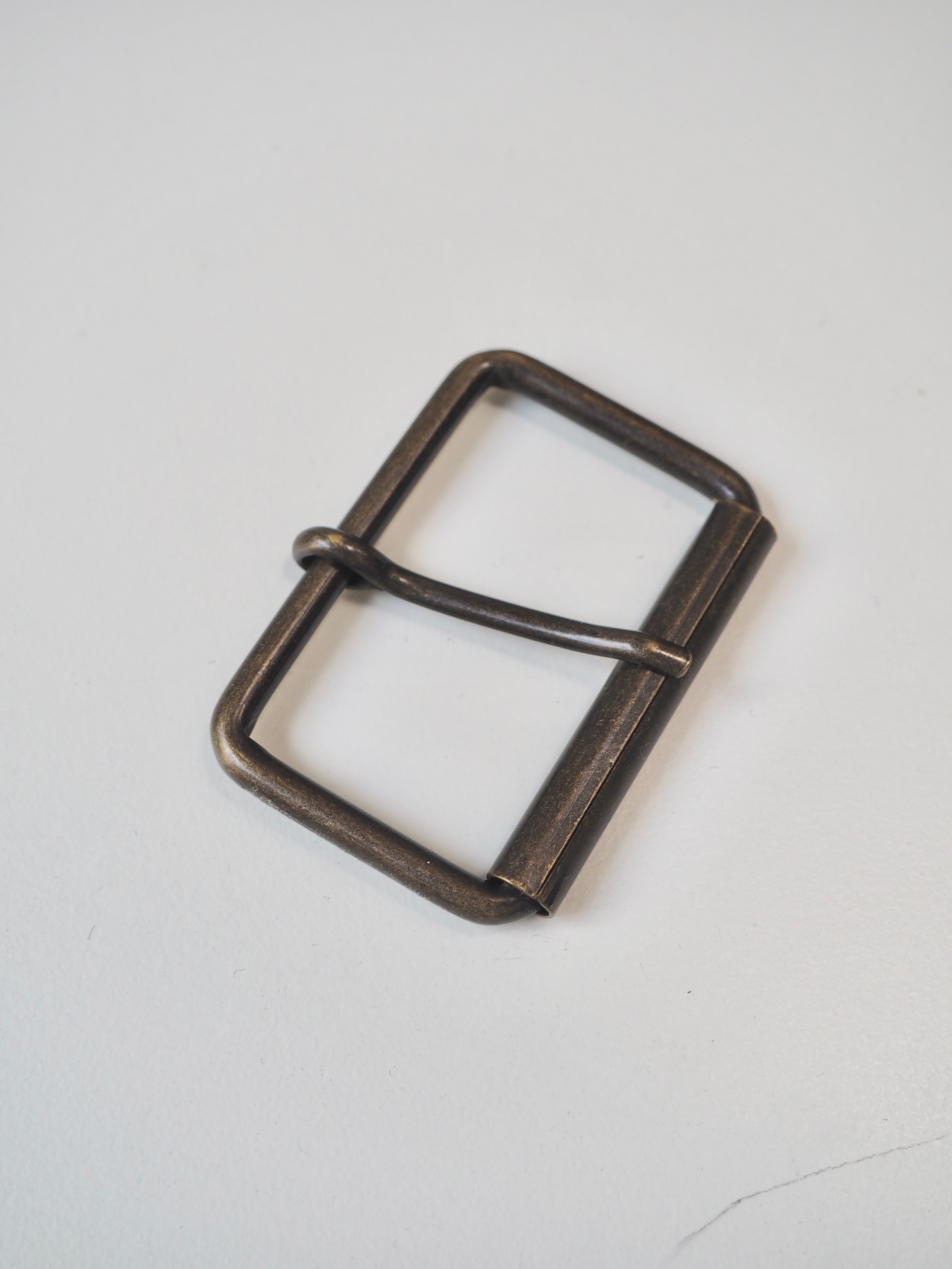 This ex-designer hardware is a buckle. These brass buckles are perfect for adding to garments and accessories! They are medium weight and have a nice finish.