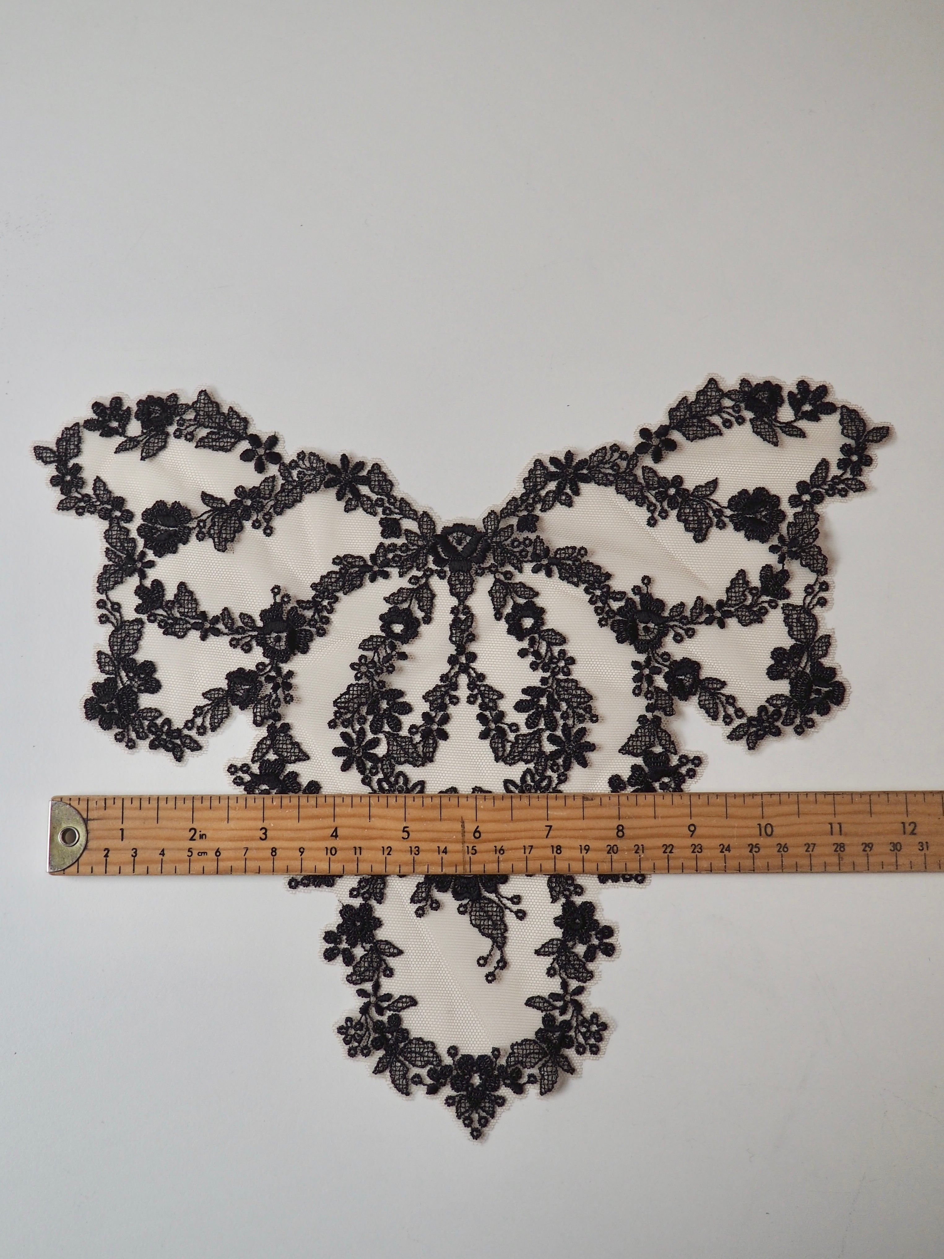 Black + Cream Floral Lace Trim Piece 30x31cm