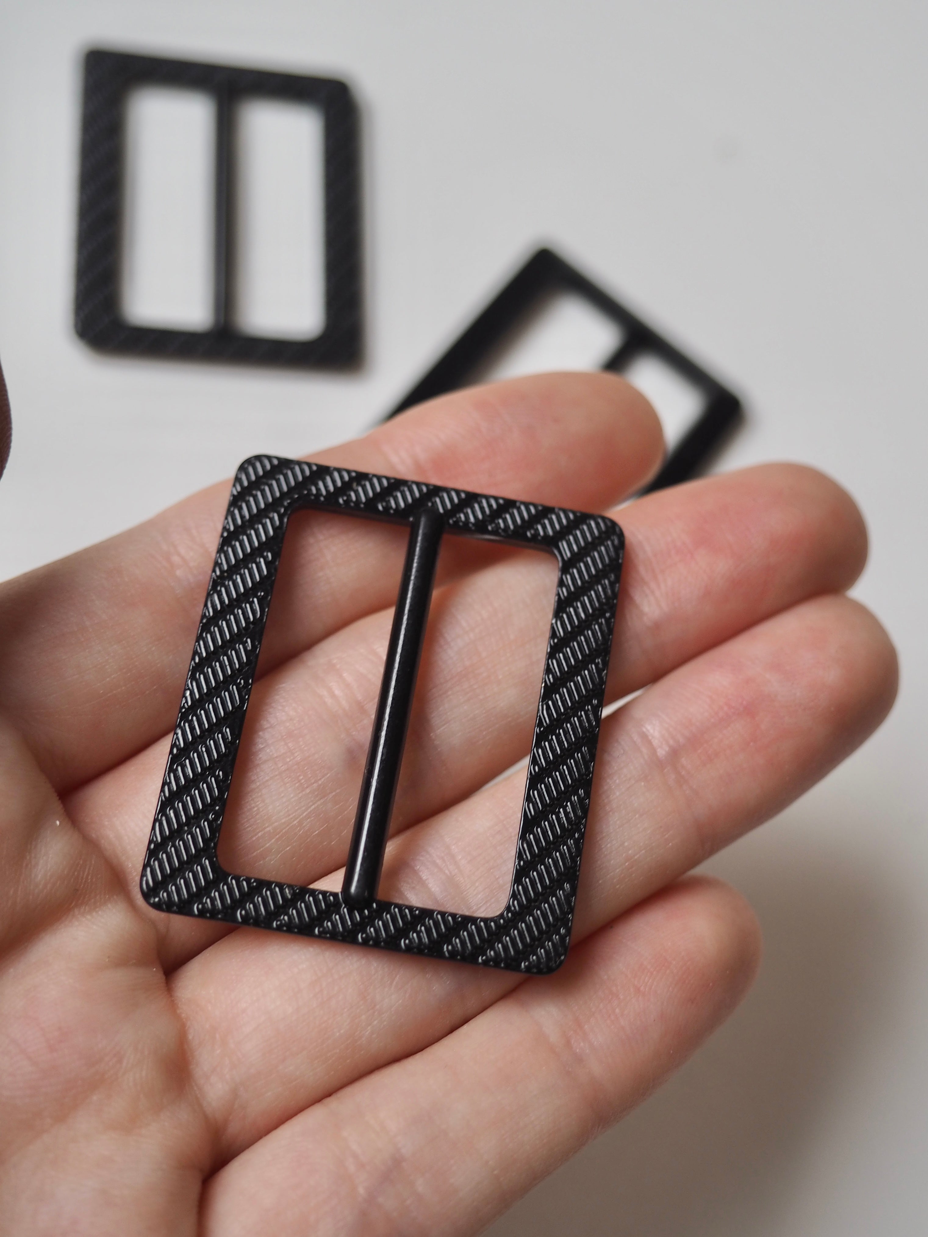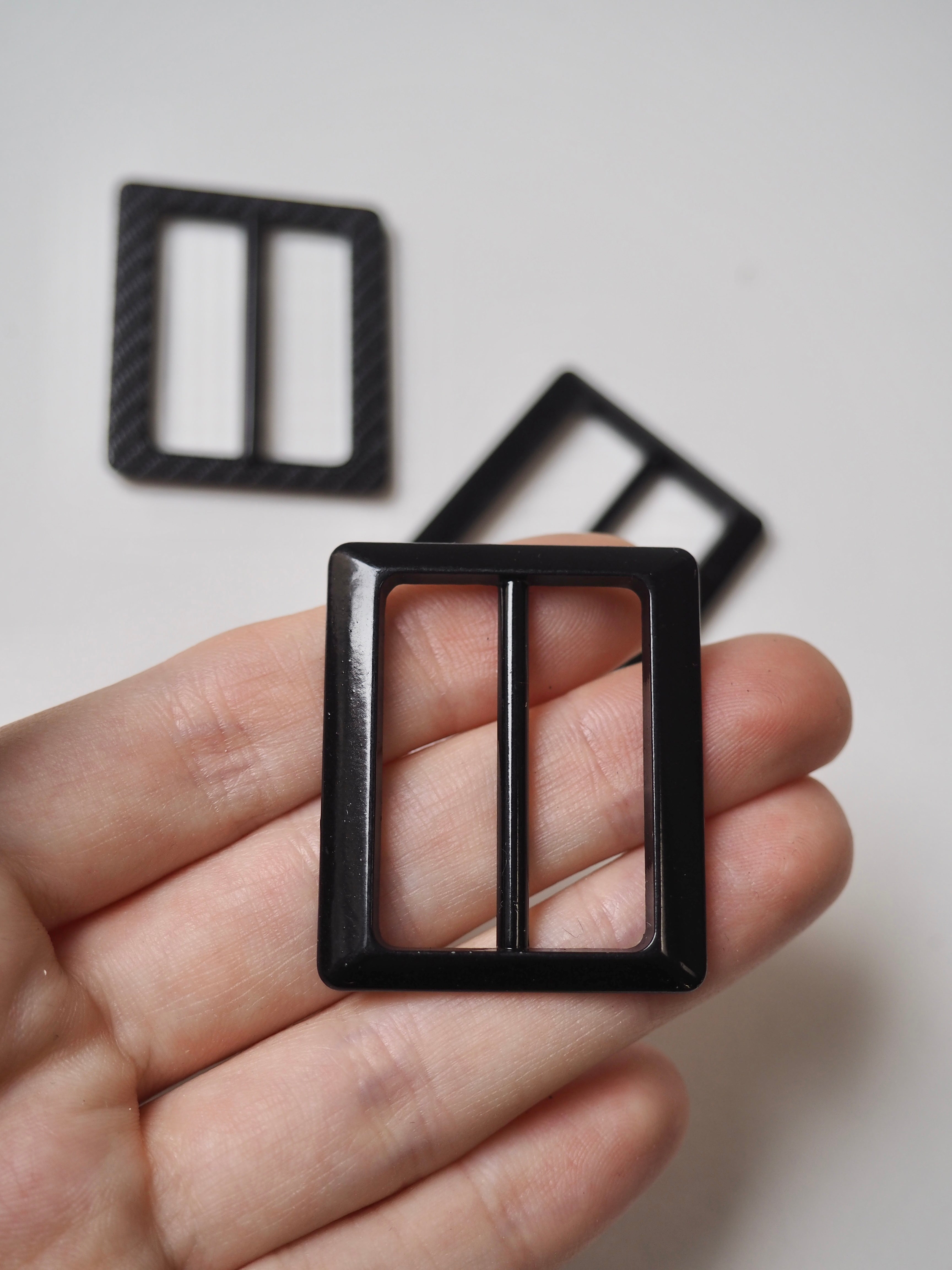 This ex-designer hardware is a slider. It's lightweight and has a fixed central bar for adjustments. They could be used for coats, dresses, jumpsuits, or accessories - they're great for adding an extra detail to your me-mades.