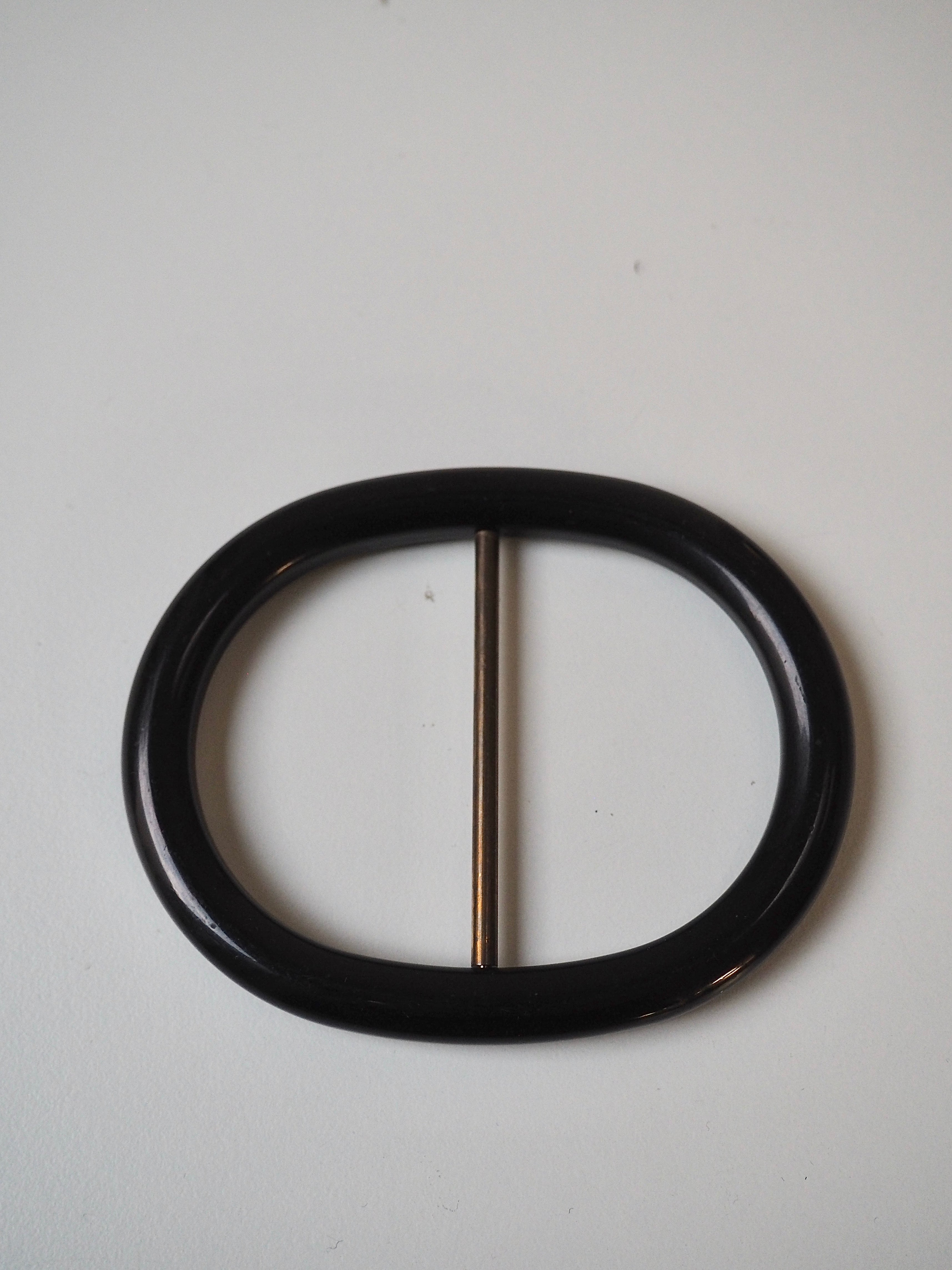 This deadstock trim is a plastic buckle, perfect for adding a special detail to garments! They could be used for coats, dresses, jumpsuits, bags, belts - they're perfect for adding an extra detail to your me-mades. No needle, so only works as a slider style buckle.