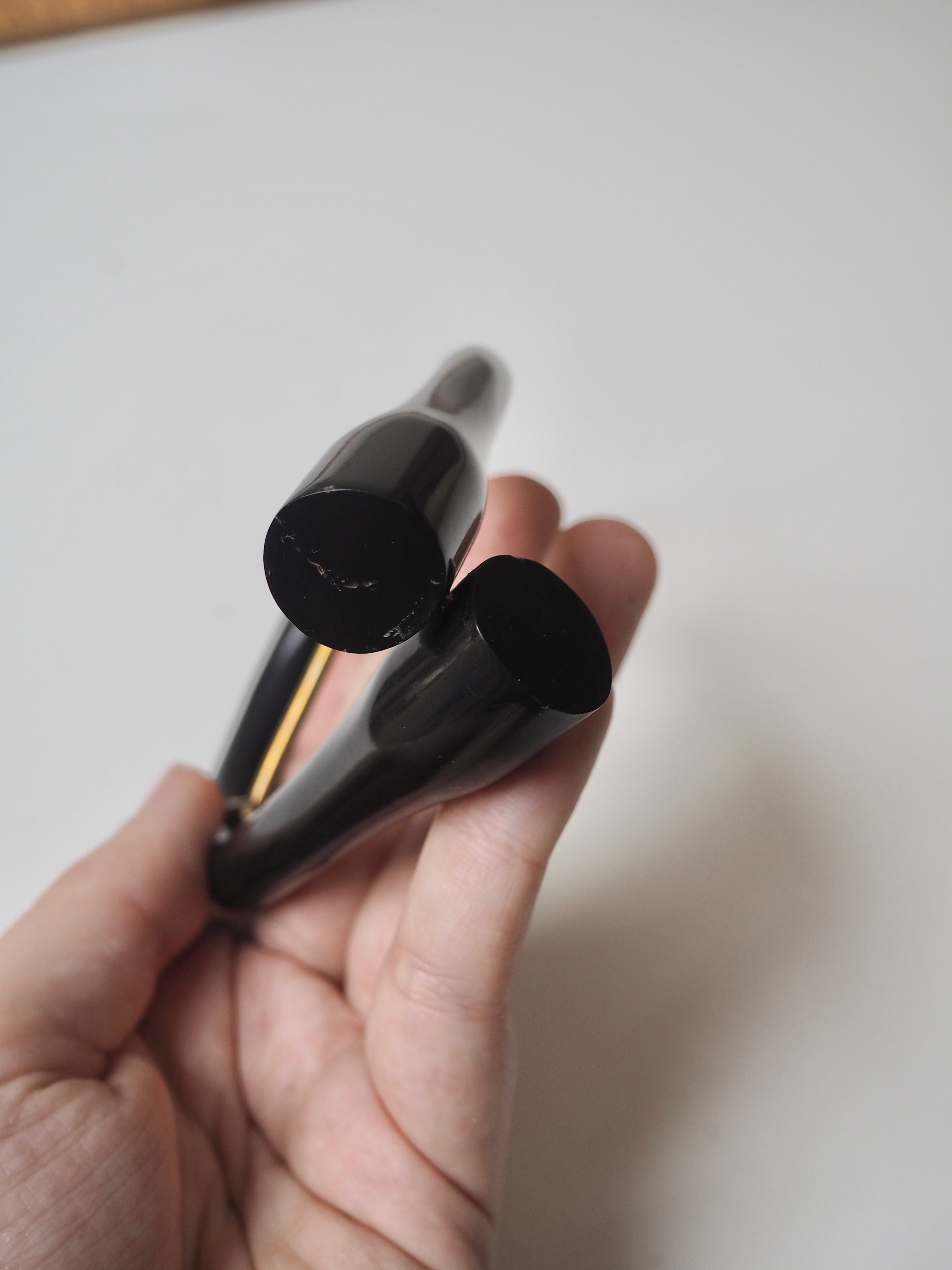 This deadstock trim is a plastic buckle, perfect for adding a special detail to garments! They could be used for coats, dresses, jumpsuits, bags, belts - they're perfect for adding an extra detail to your me-mades. They are a black colour, with lighter brush type marks to look like horn. It has a needle, so can work with belt holes or be removed to use as a slide style buckle.