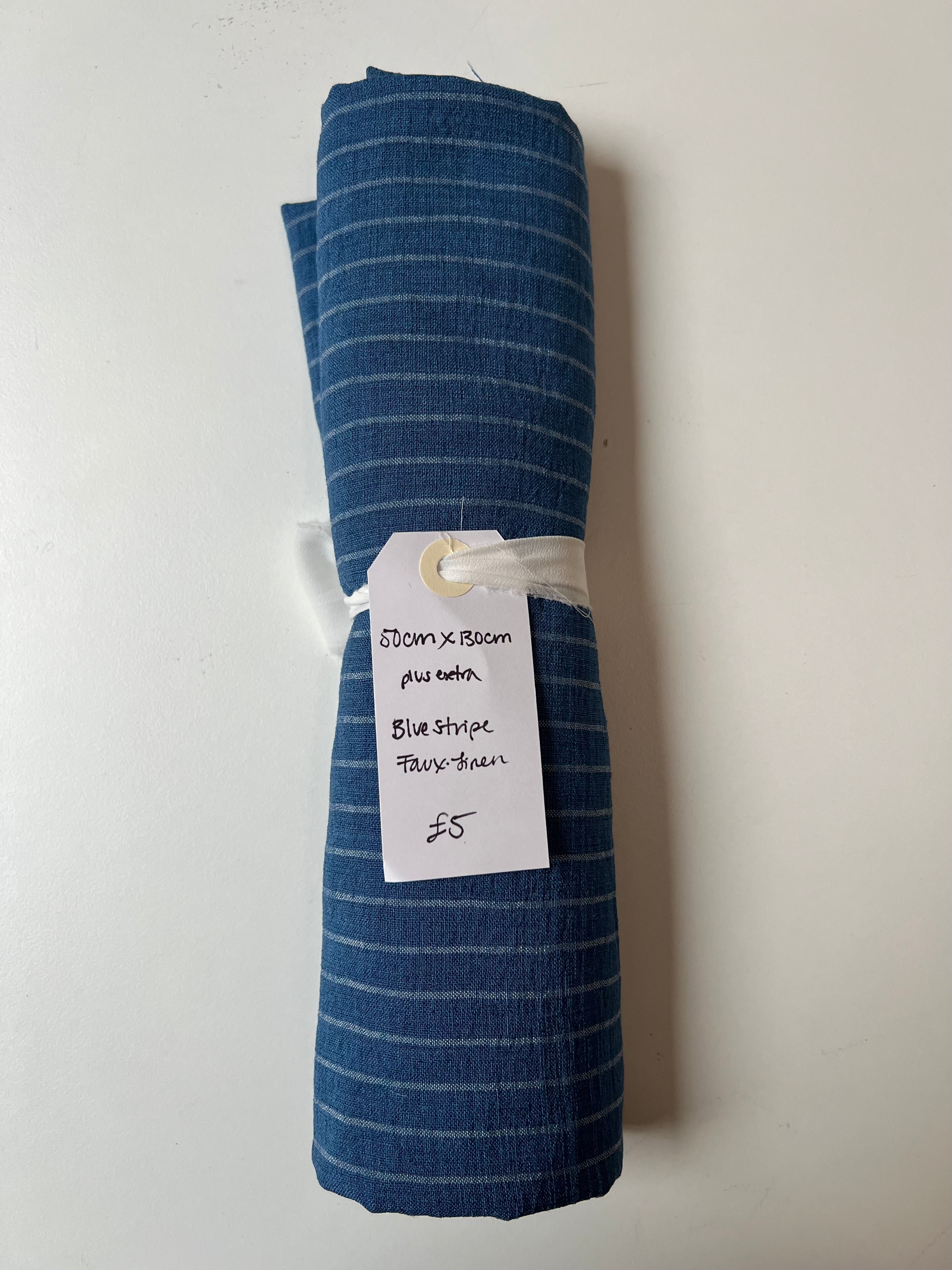 Blue Stripe Faux Linen Remnant
