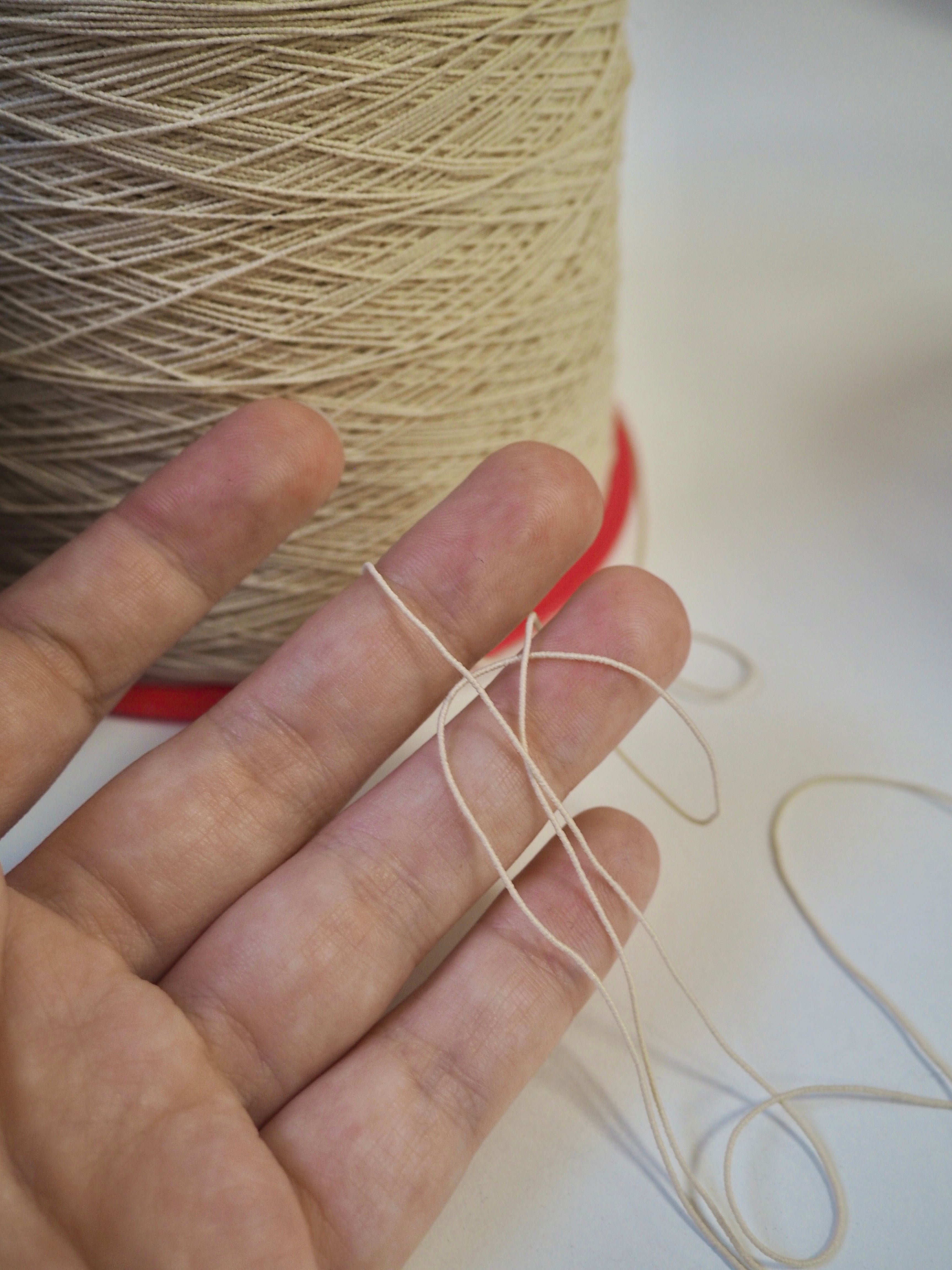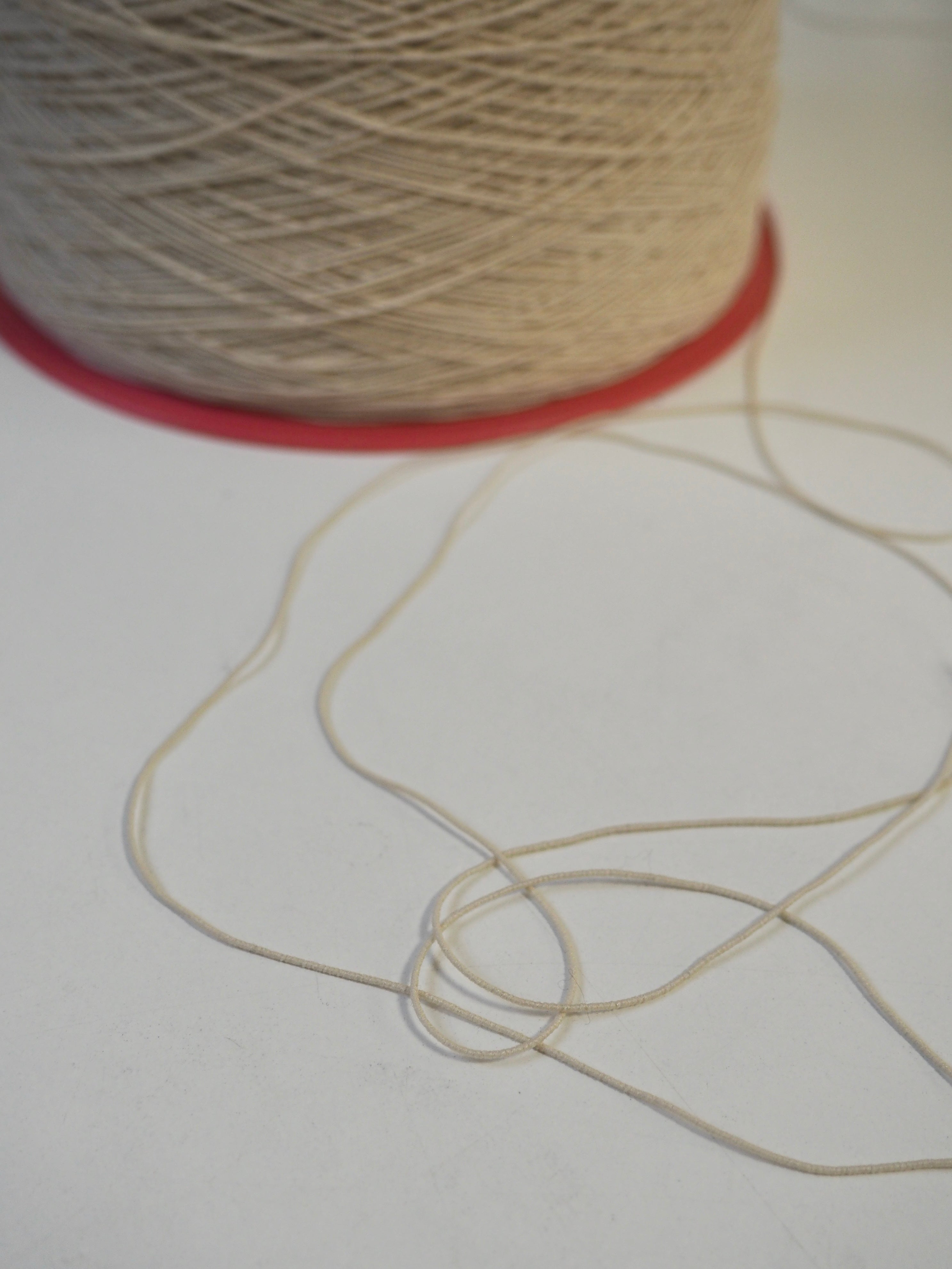This ex-designer trim is an elastic thread. It's very stretchy, up to 1.5x its original size. Super lightweight and perfect for shirring projects!