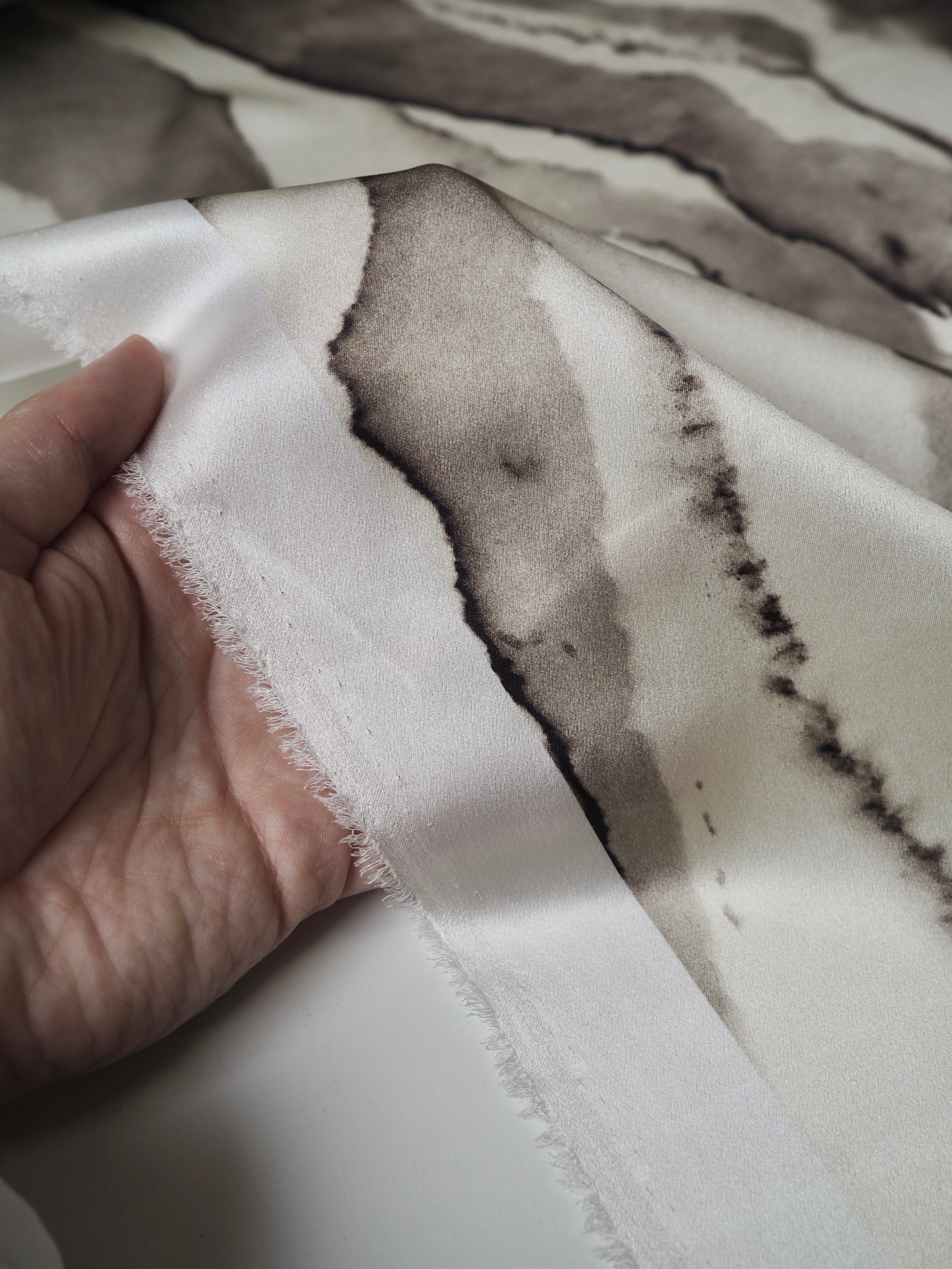 Cream + Grey Marbled Heavy Silk Satin