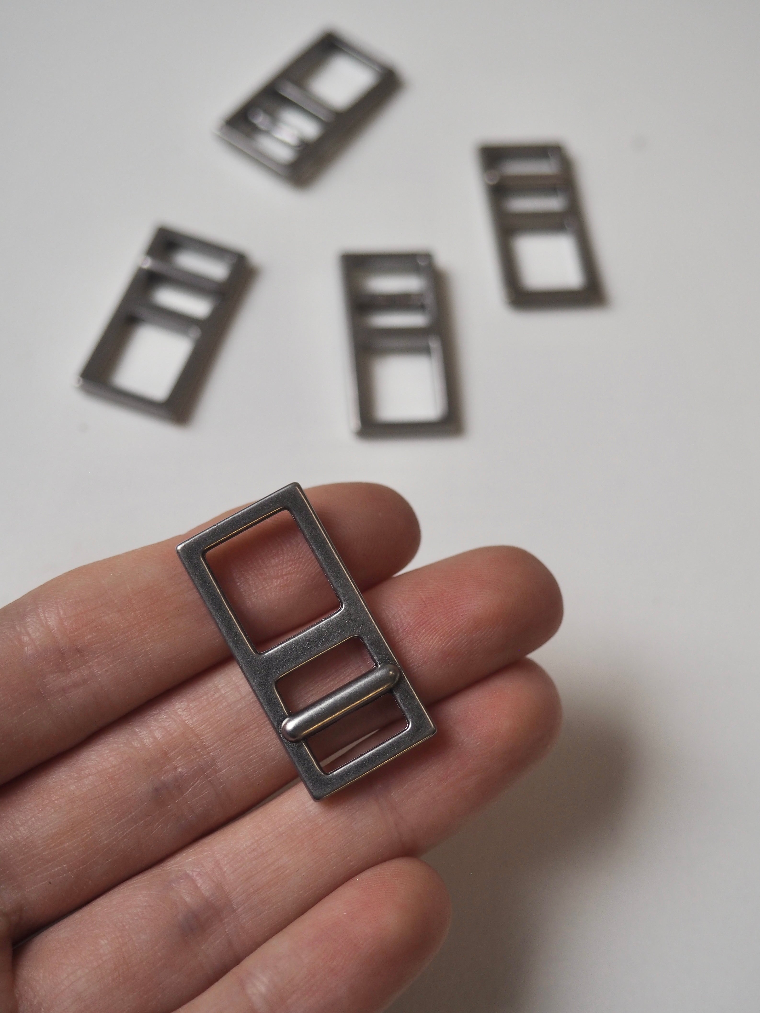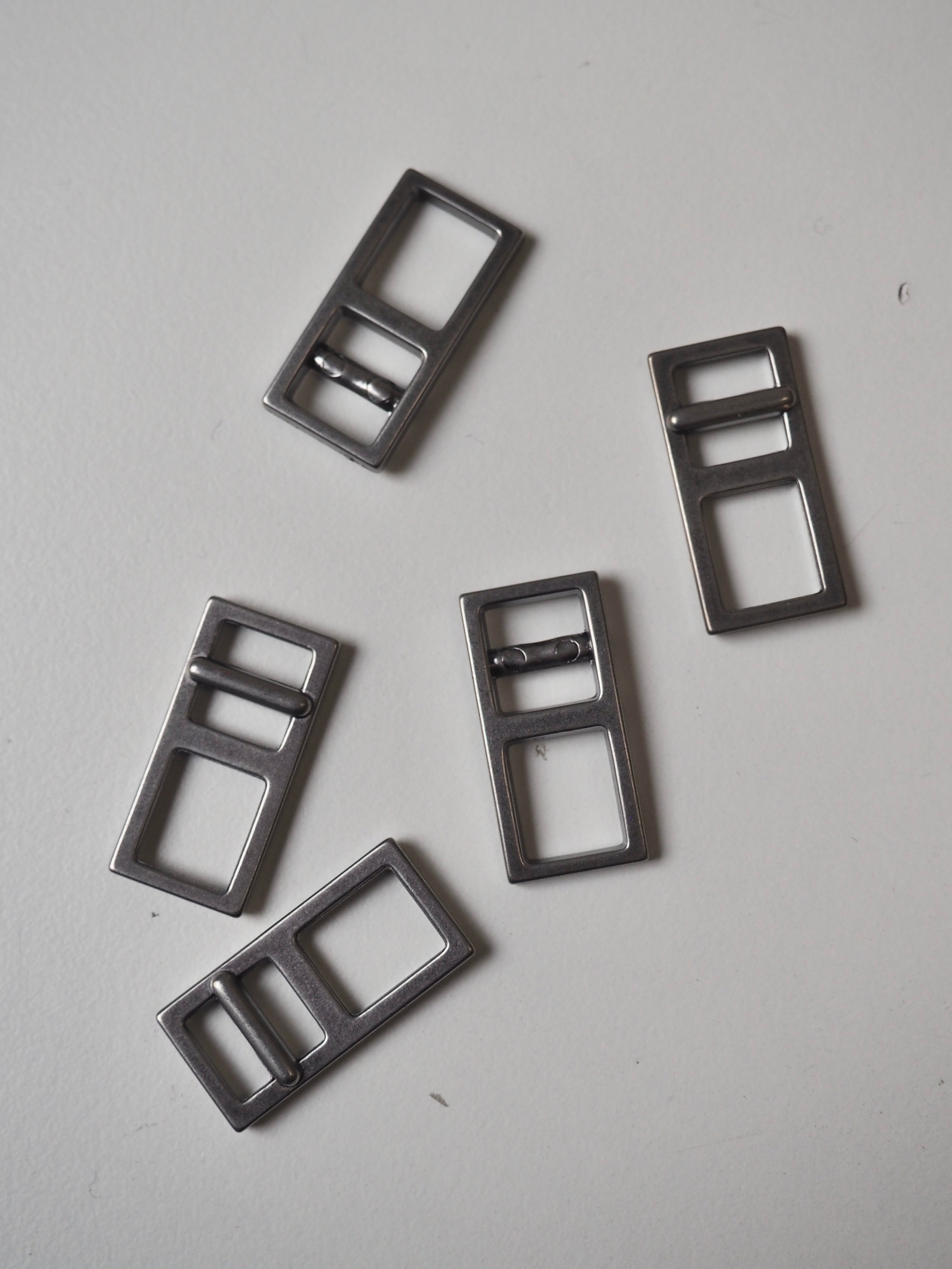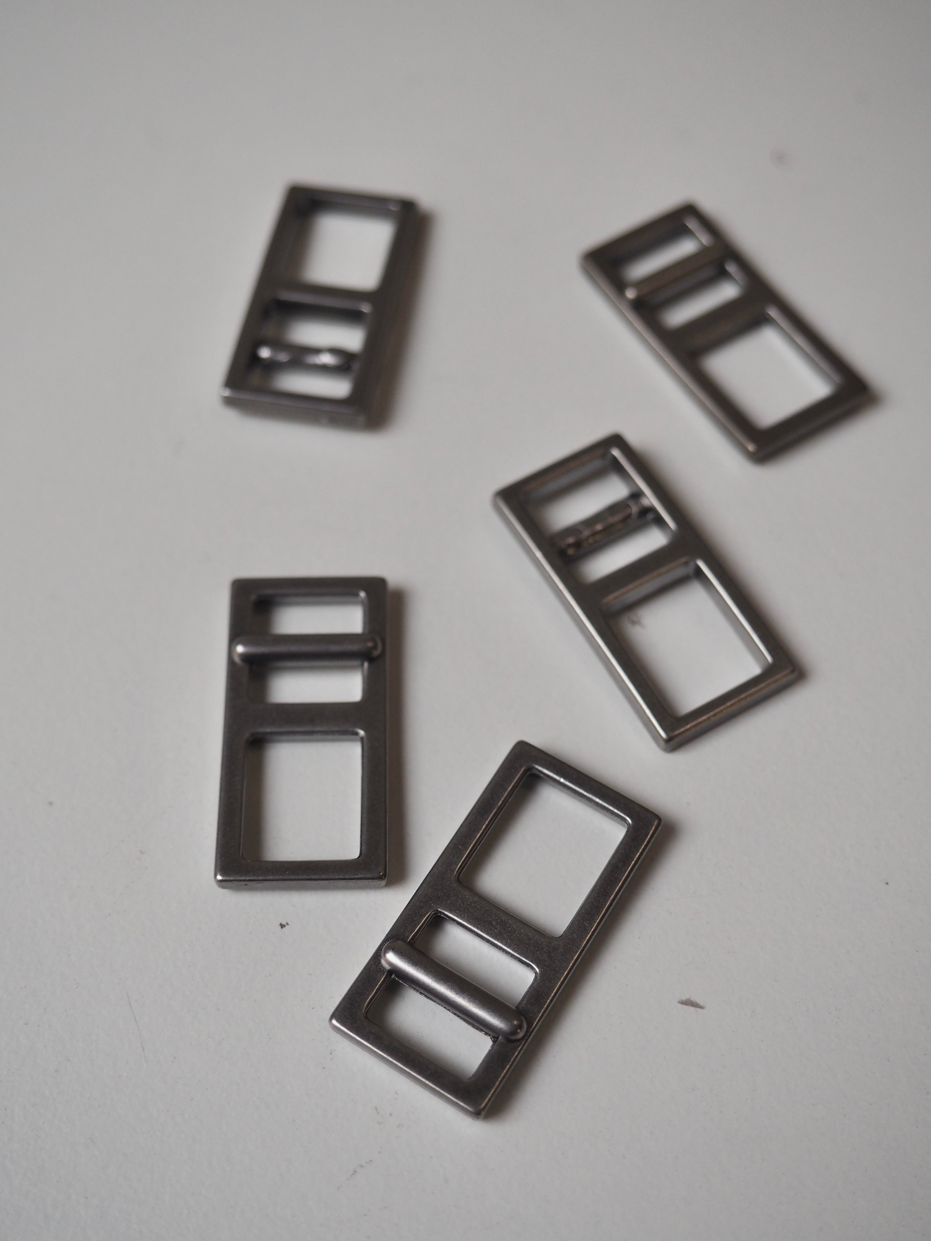 This ex-designer hardware is a slider. It's lightweight and has three internal sections for adjustments. It could be added to a zip to use a chunky pull. They could be used for coats, dresses, jumpsuits, or accessories - they're great for adding an extra detail to your me-mades.