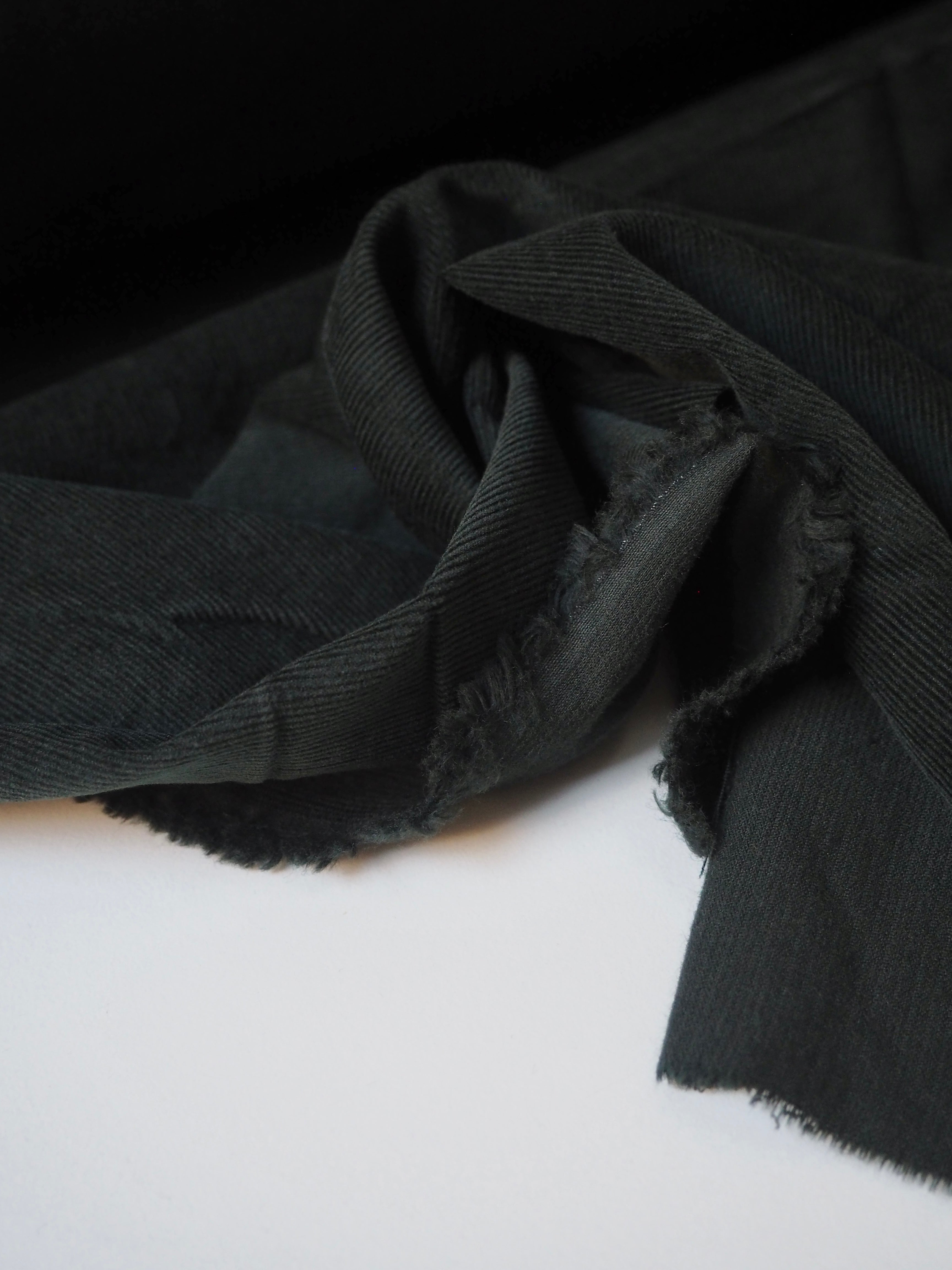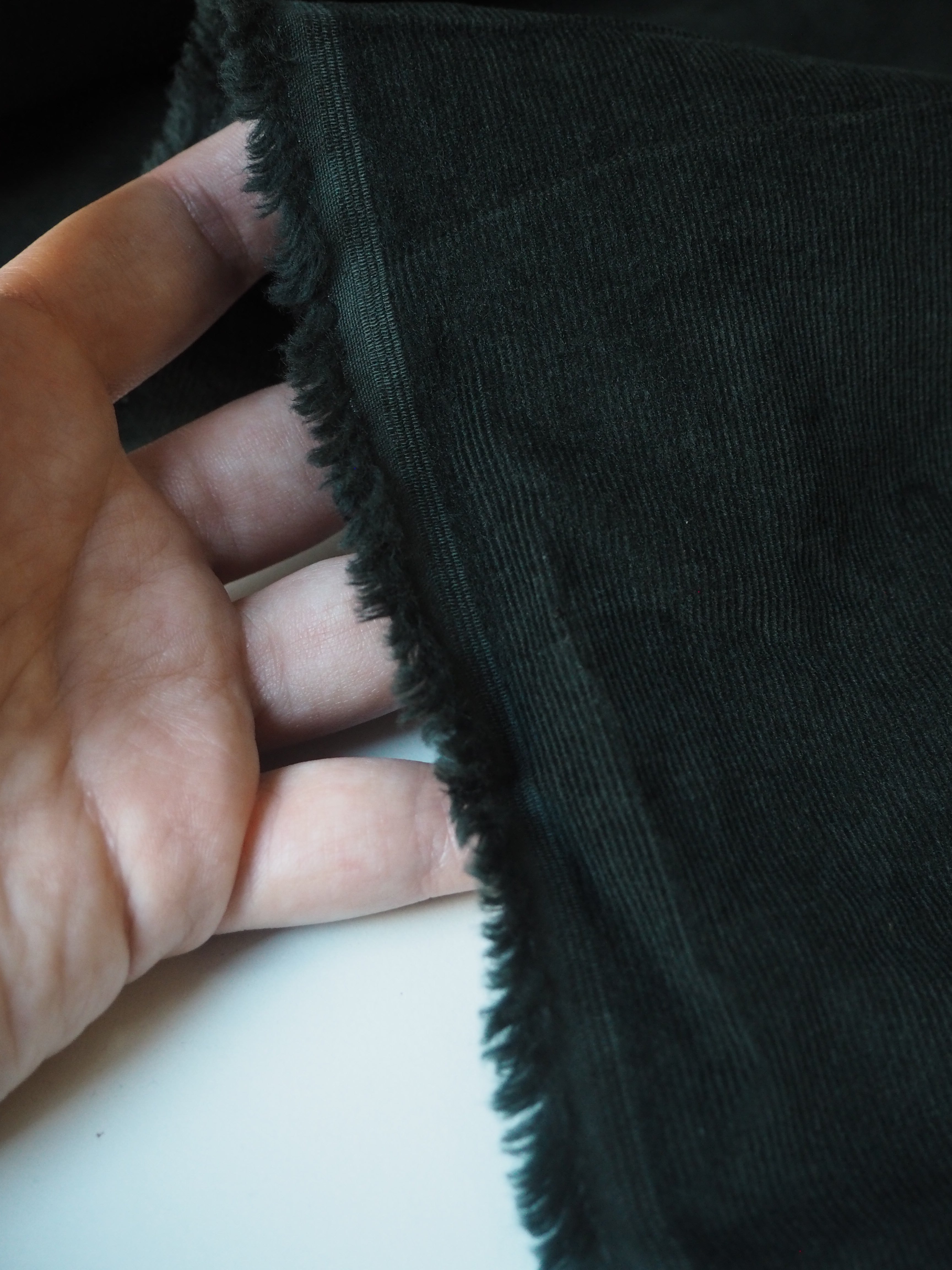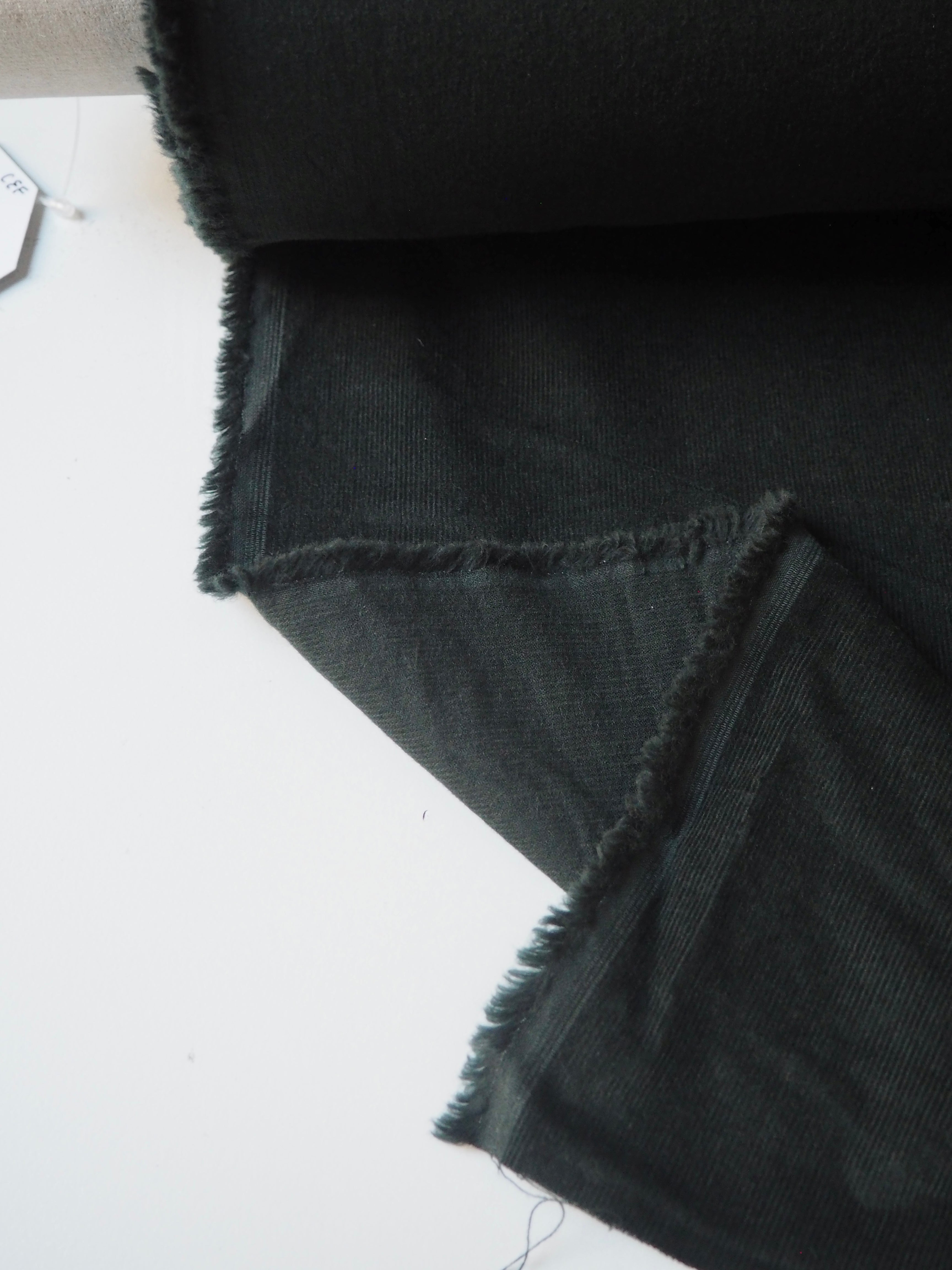This ex-designer fabric is a pin cord. Fine cord ribs run along lengthways. So incredibly soft to the touch! The designer labelled these are pre-washed, but we would recommend still pre-washing. Has a very gentle structure, and lovely light texture. Lightweight, and has a bit of natural ease that makes it perfect for trousers!