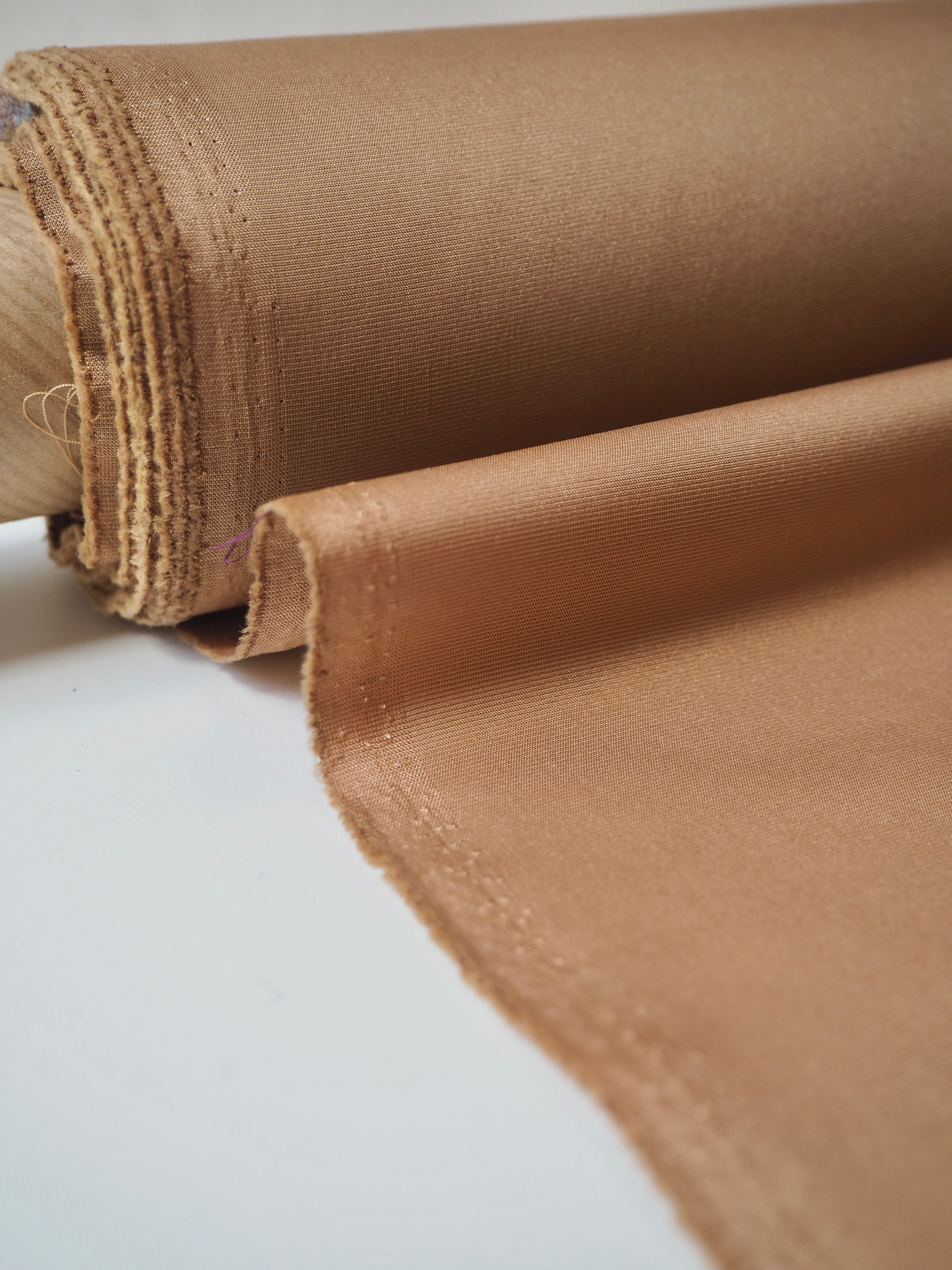 This ex-designer fabric is a faille. Faille is a woven linear pattern, similar to a twill but instead of going diagonally the ribs run width-ways across the fabric. Lightweight with great movement and drape, with the faille weave giving it great structure. This one has a subtle sheen and comfortable handle. Has a slight crispiness. This would be perfect for a jacket, structured dress, or even cushions!