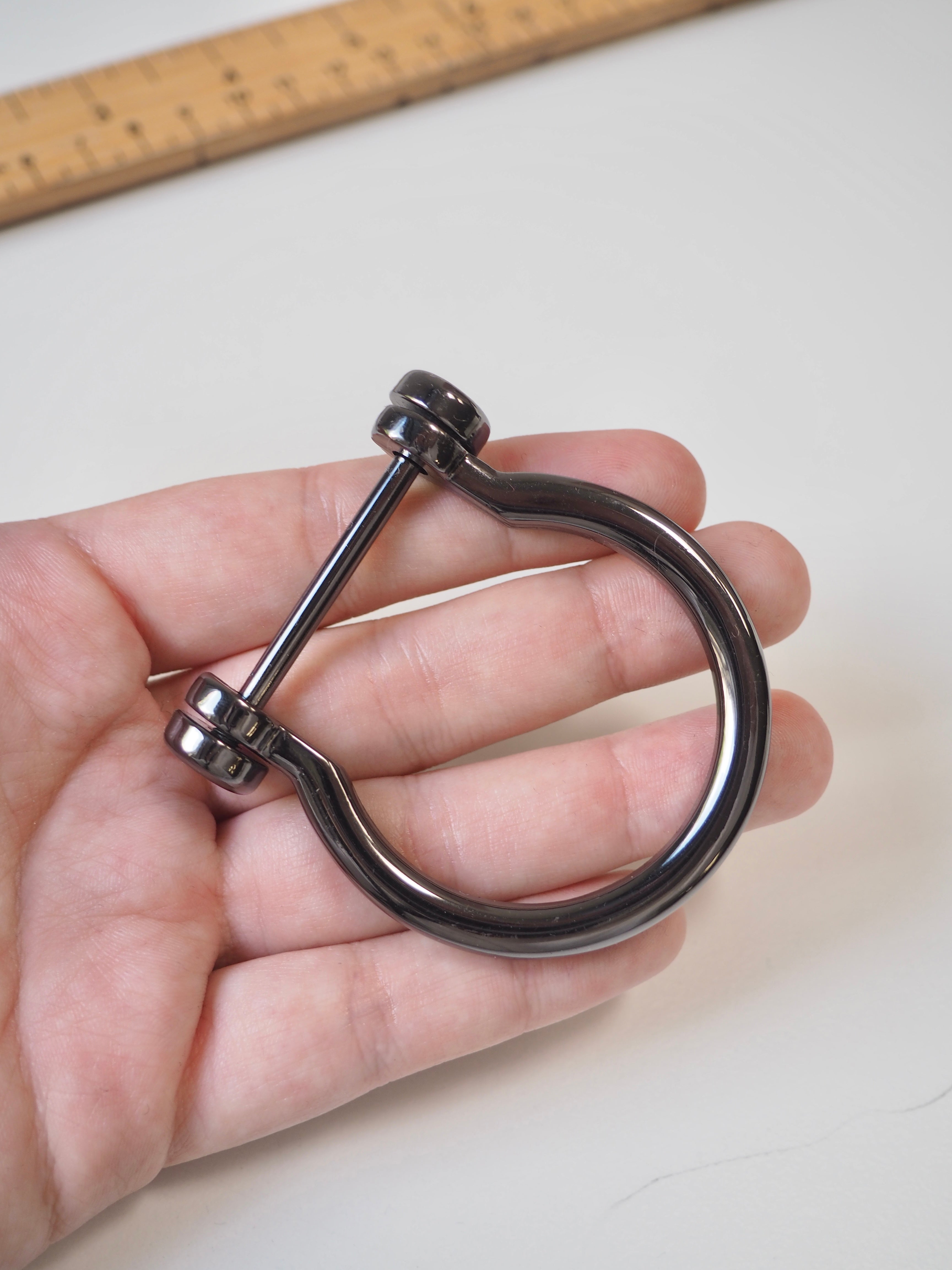 This ex-designer hardware is a unique connector. It's a chunky horseshoe strap connector, that unscrews from the bar ends. Lovely finish and great quality. These can be used for bag making and accessories. Ideal for attaching straps!