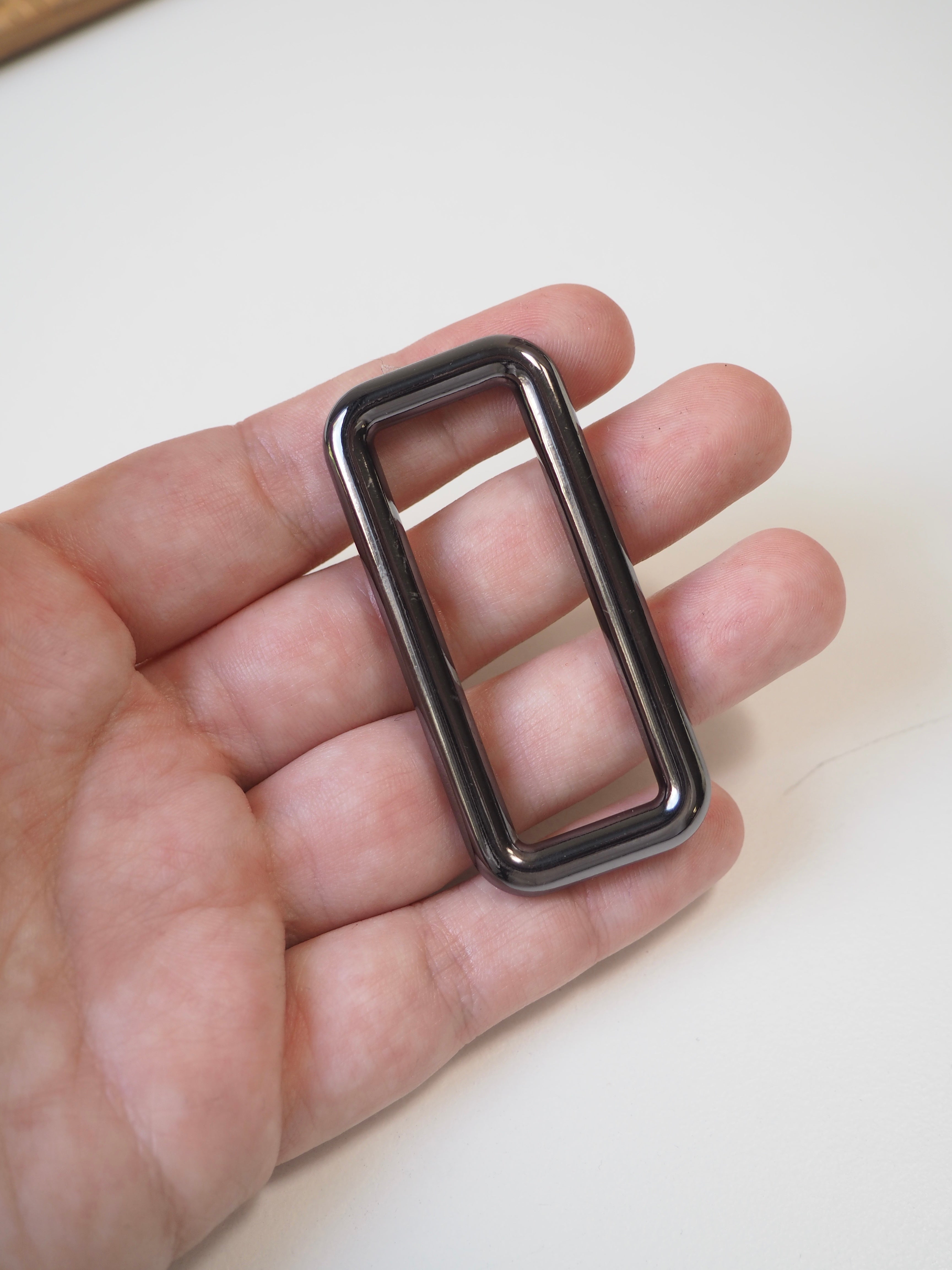 This ex-designer hardware is a rectangle ring. It's chunky and fully enclosed. These can be used for bag making and accessories. Ideal for attaching straps!