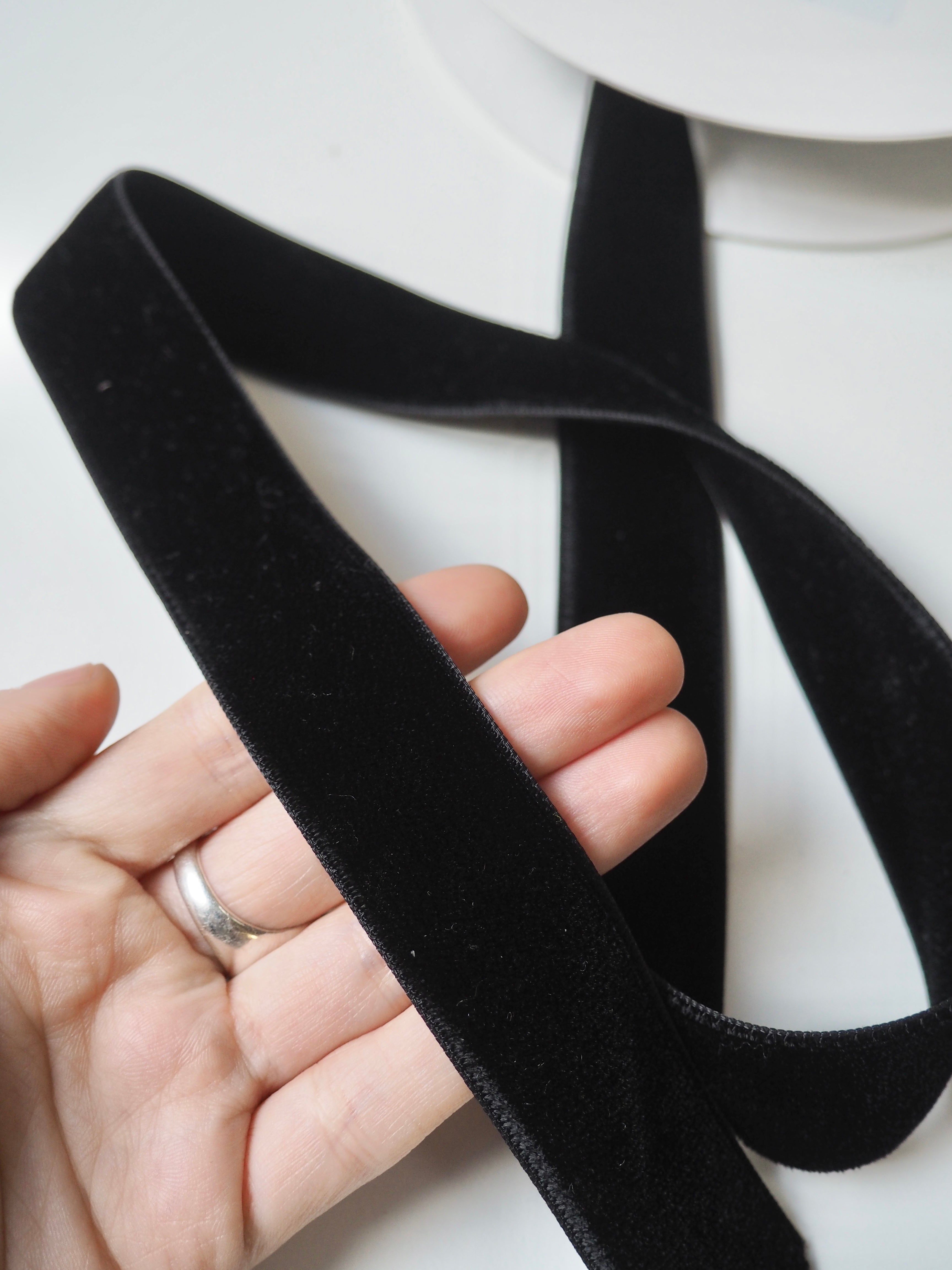 This ex-designer trim is a velvet ribbon. It's soft and luxurious, with a subtle braided edge on each side, and matte flat back. Would look great on garments, as well as bags and home-wares!