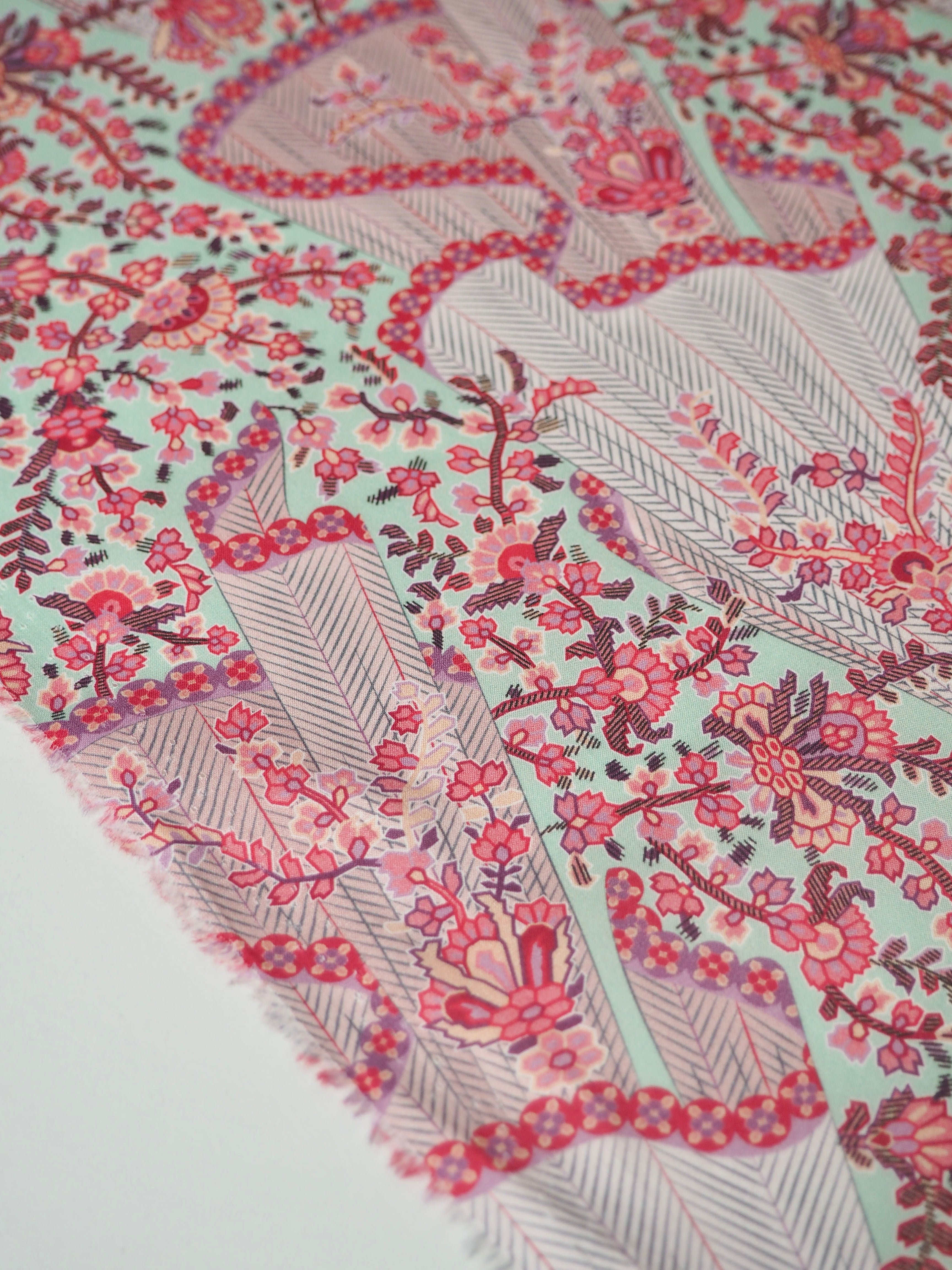 This ex-designer fabric is a classic Liberty Tana Lawn. It's in a playful pink print with floral garlands and draped flounces of fabric dancing down the weft. A top-quality Liberty cotton, and super lightweight! Soft with a lovely drape and slight crispness. Has a wonderful cotton handle. Mostly opaque but lets a little light in. We would love to see it in a blouse or even for quilting!