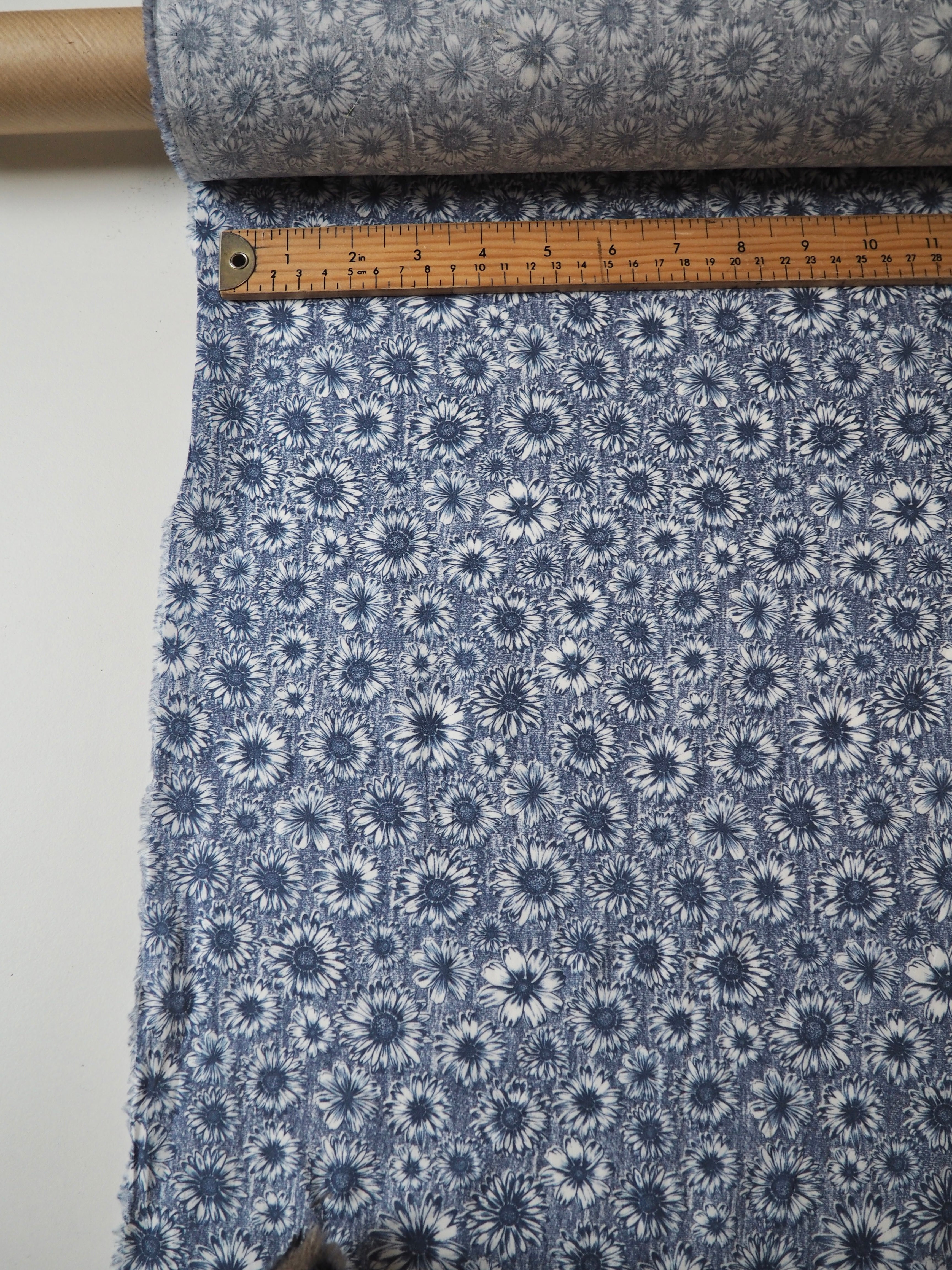 This ex-designer fabric is a classic Liberty Tana Lawn. It's in a blue floral print. A top-quality Liberty cotton, and super lightweight! Soft with a lovely drape and slight crispness. Has a wonderful cotton handle. Mostly opaque but lets a little light in. We would love to see it in a blouse or even for quilting!