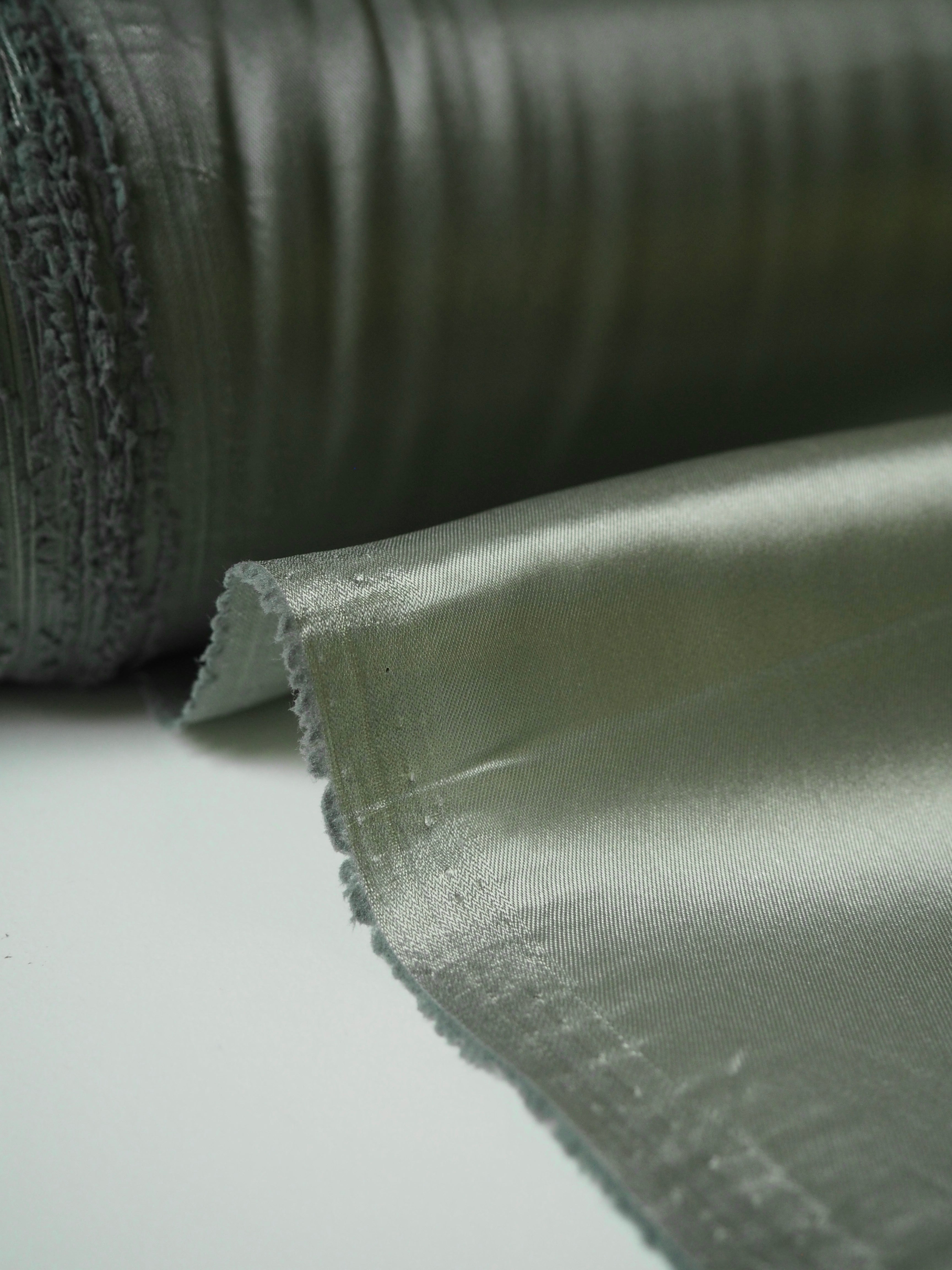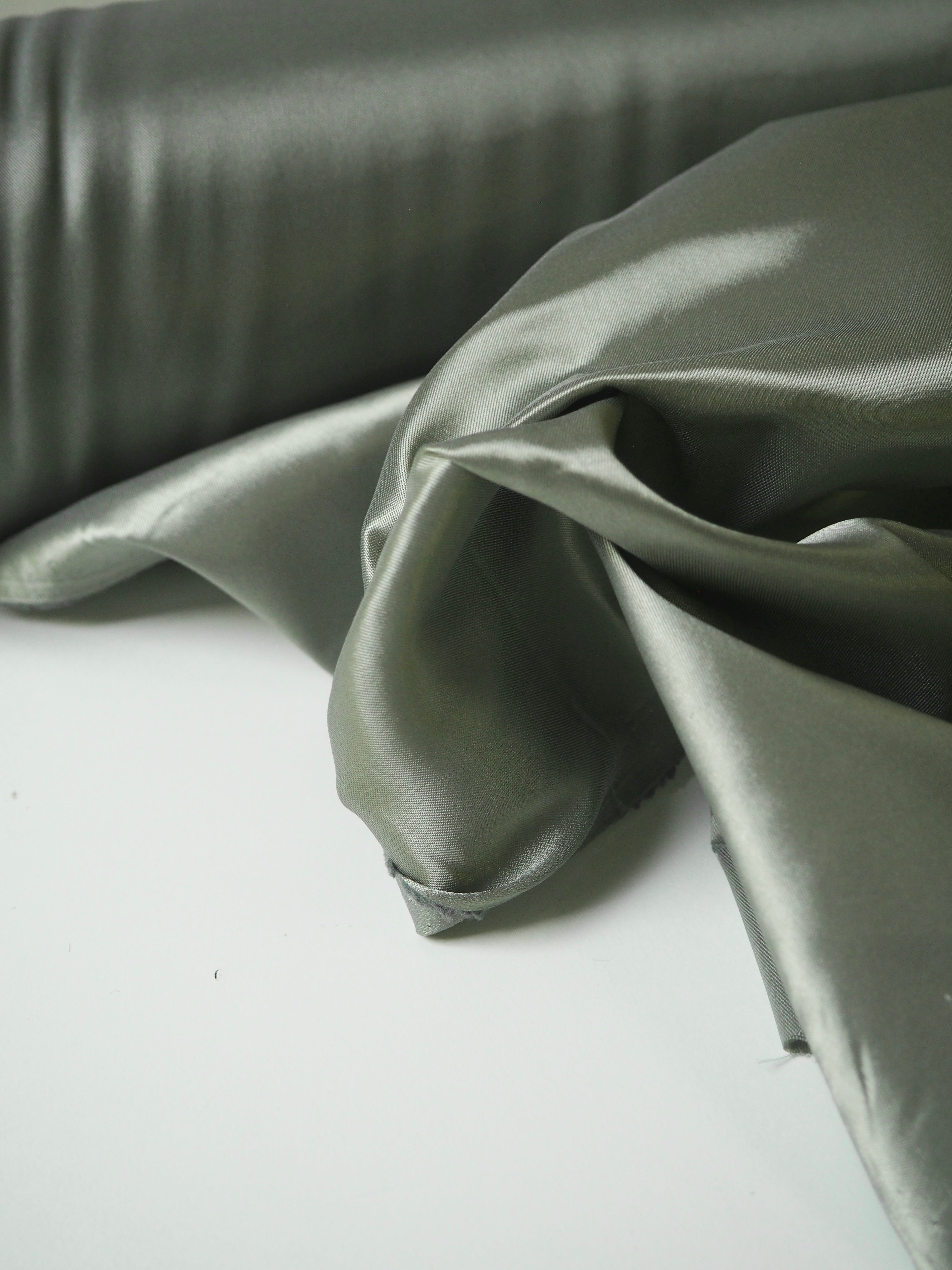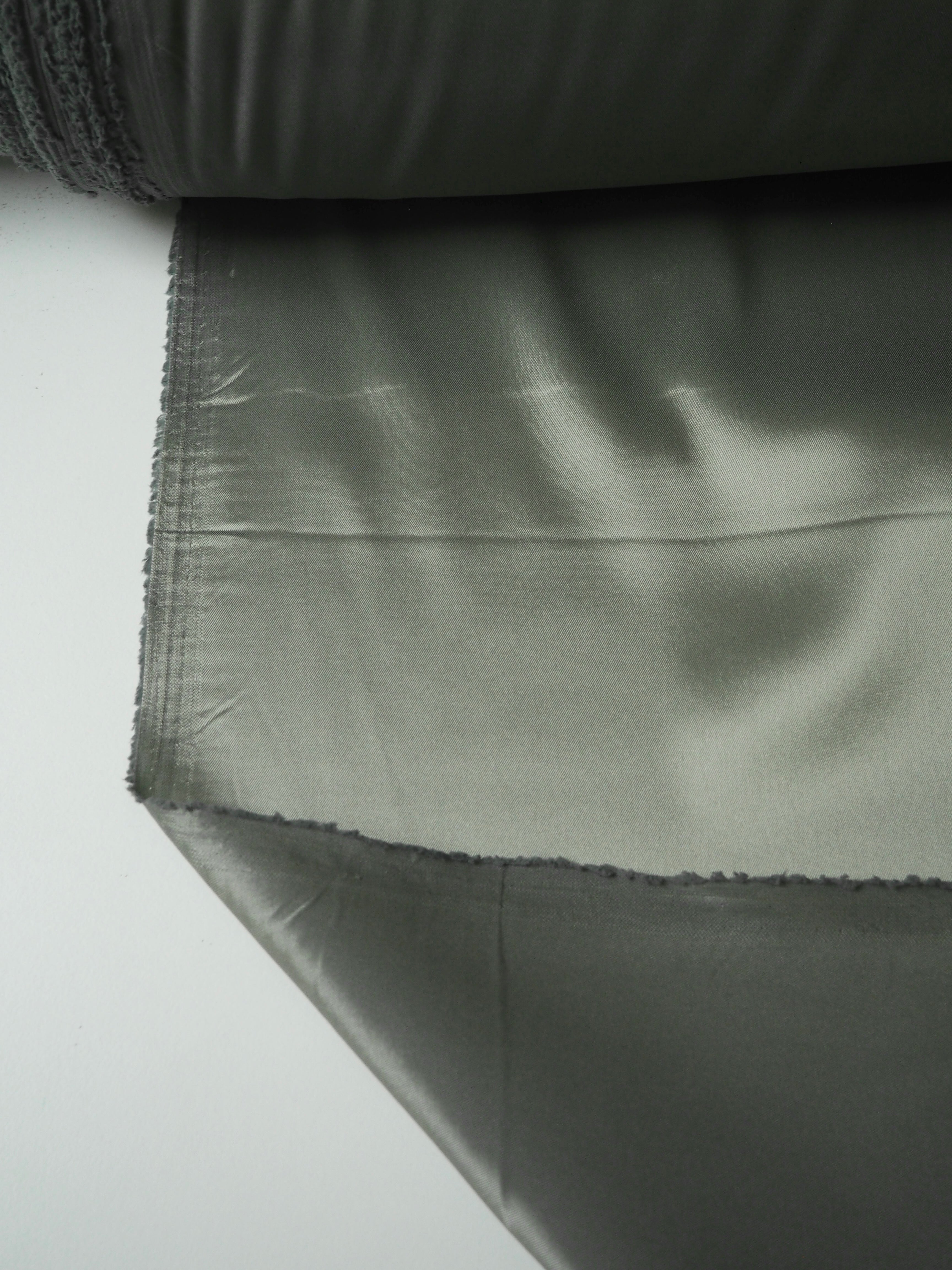 This ex-designer fabric is a stretch lining. It has a twill weave in a soft and slinky acetate fibre. Has a gentle 10% stretch width-ways. Lightweight with a gentle drape and nice satin finish. Has a slight structure to it as well. Mostly opaque. Ideal for lining any garment, especially a suit jacket or coat!