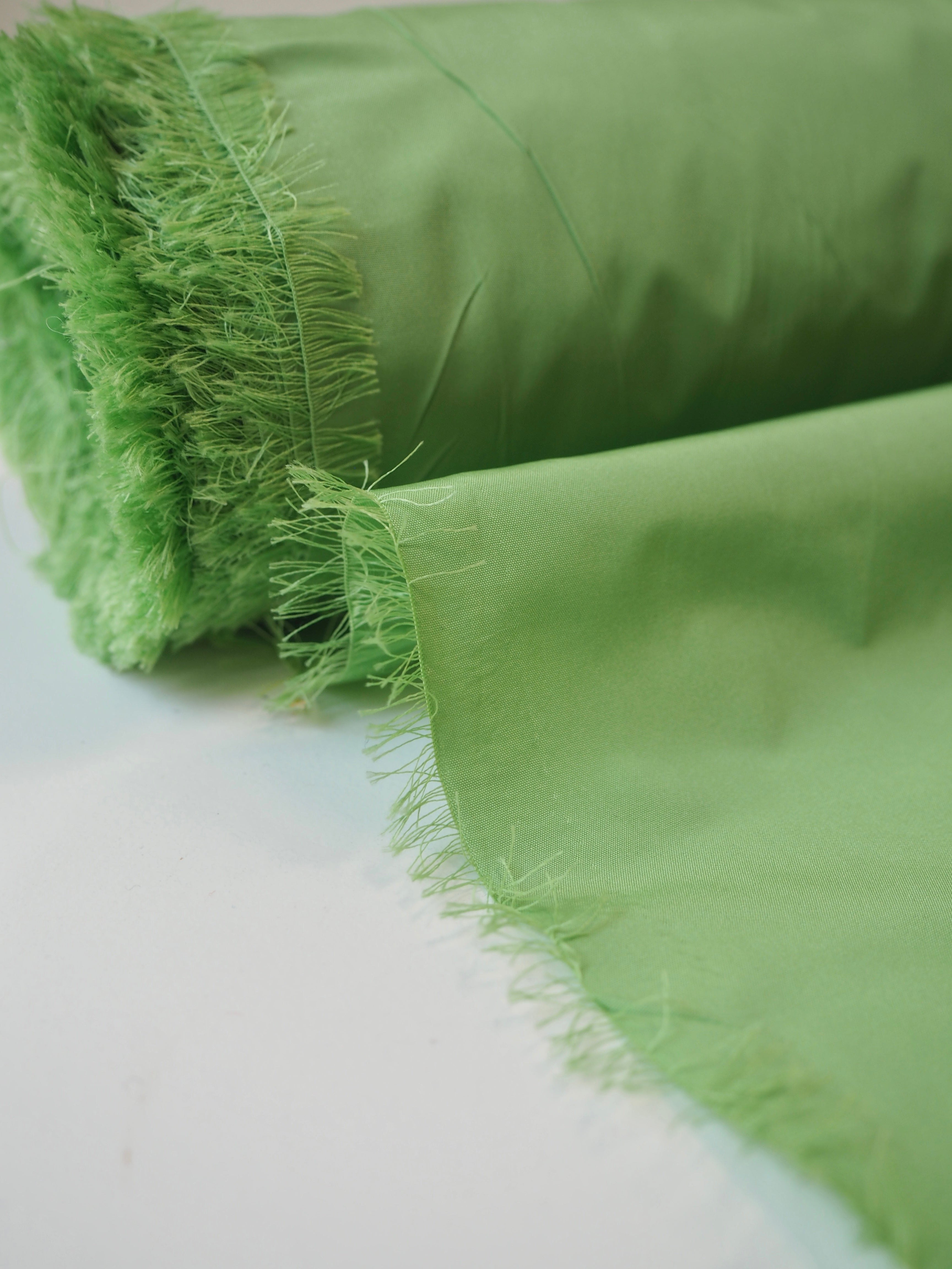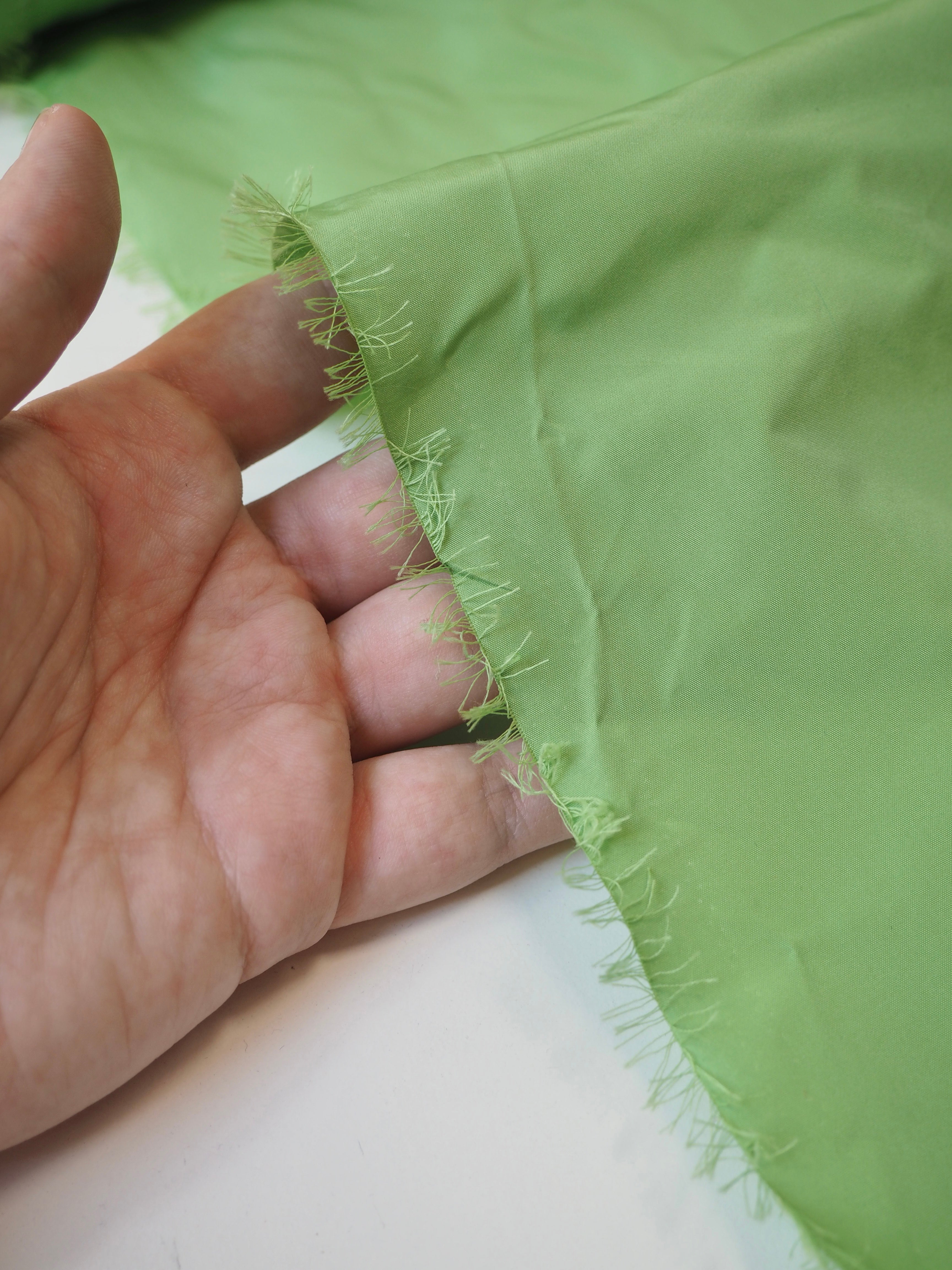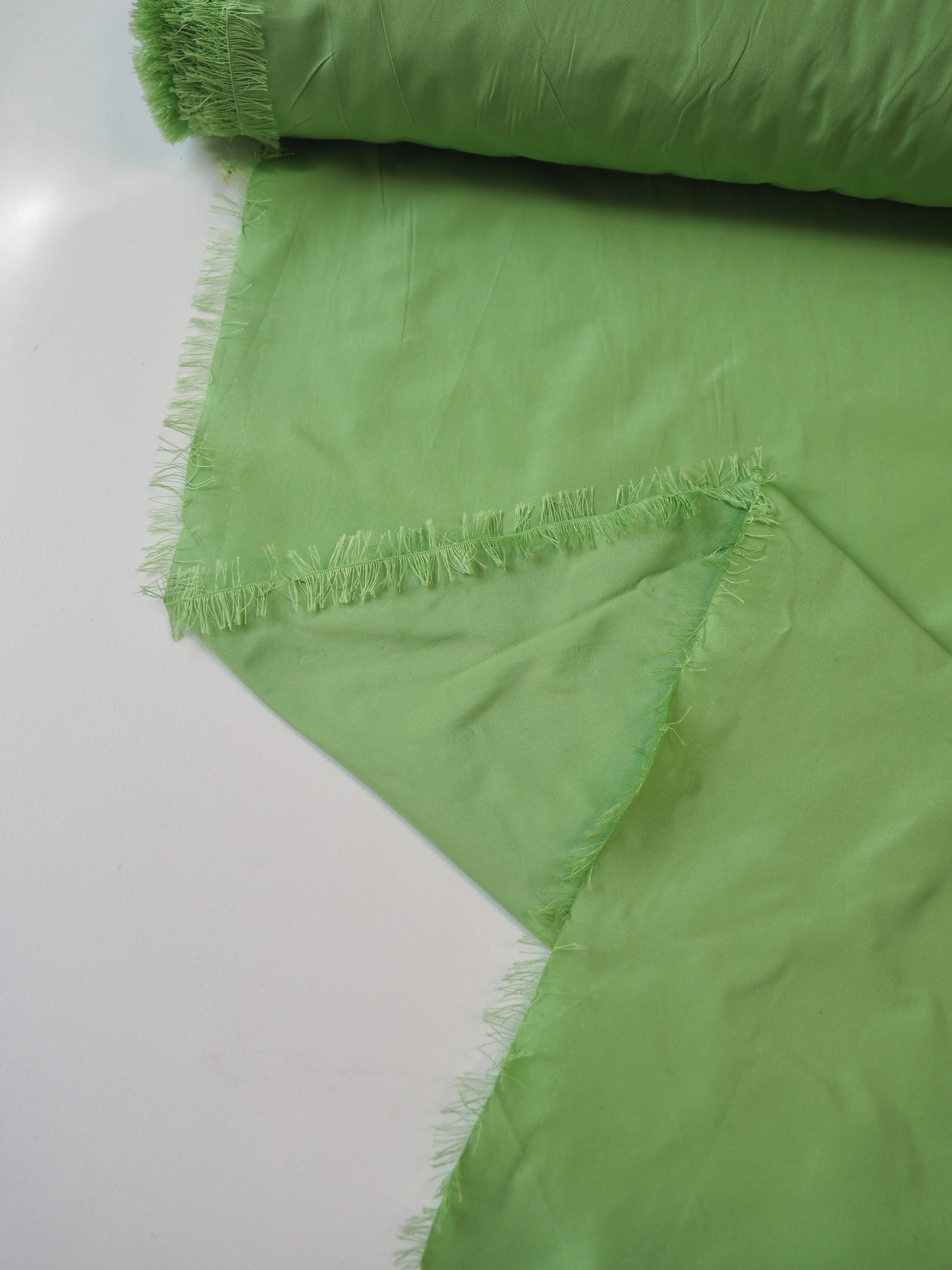 This ex-designer fabric is a taffeta. In a bright lime green colour. It is very lightweight with an incredible crisp taffeta handle and structure. Opaque and beautiful quality. Perfect for a dress or bag!