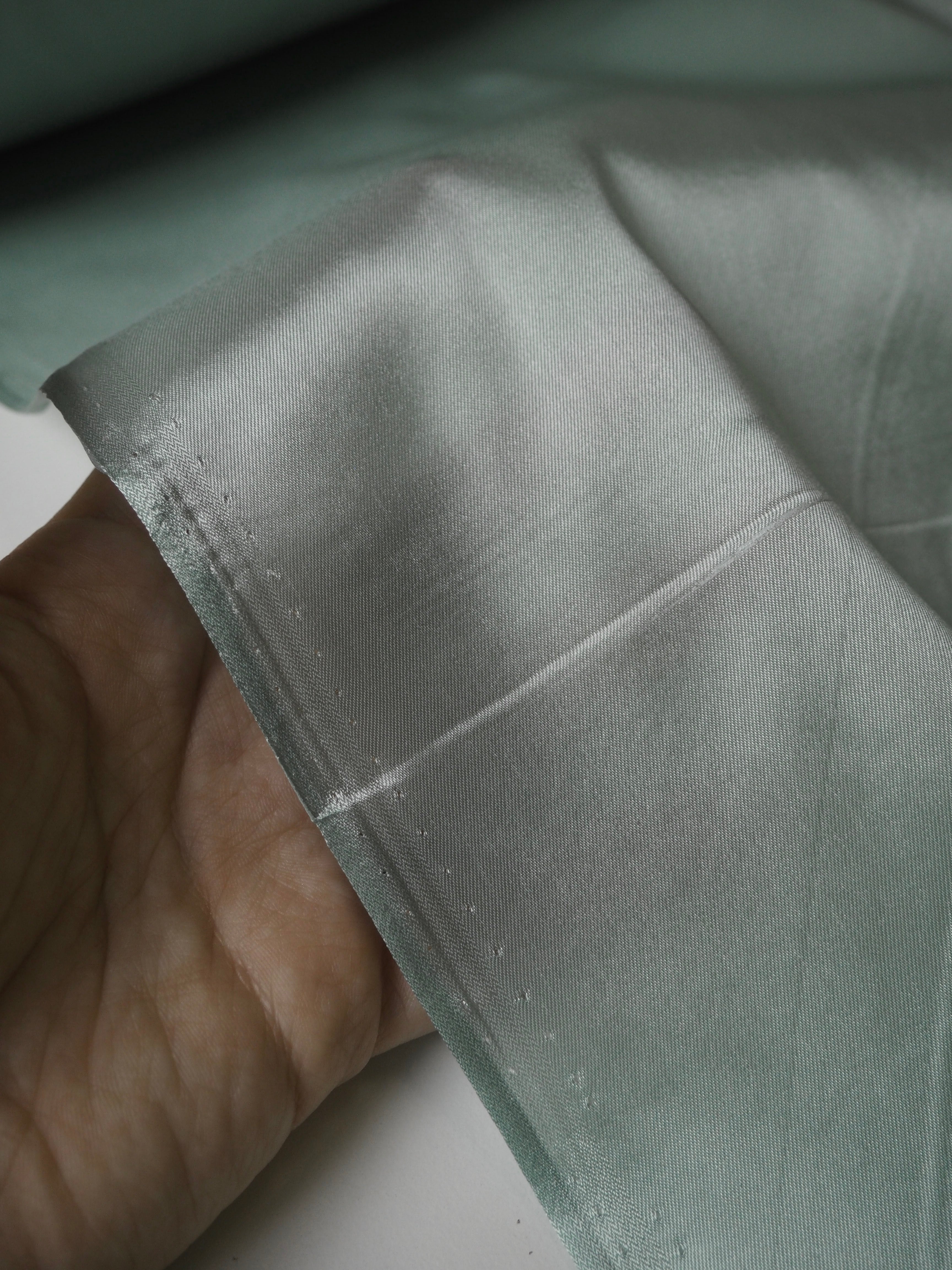 This ex-designer fabric is a stretch lining. It has a twill weave in a soft and slinky acetate fibre. Has a gentle 10% stretch width-ways. Lightweight with a gentle drape and nice satin finish. Has a slight structure to it as well. Slightly sheer. Ideal for lining any garment, especially a suit jacket or coat!