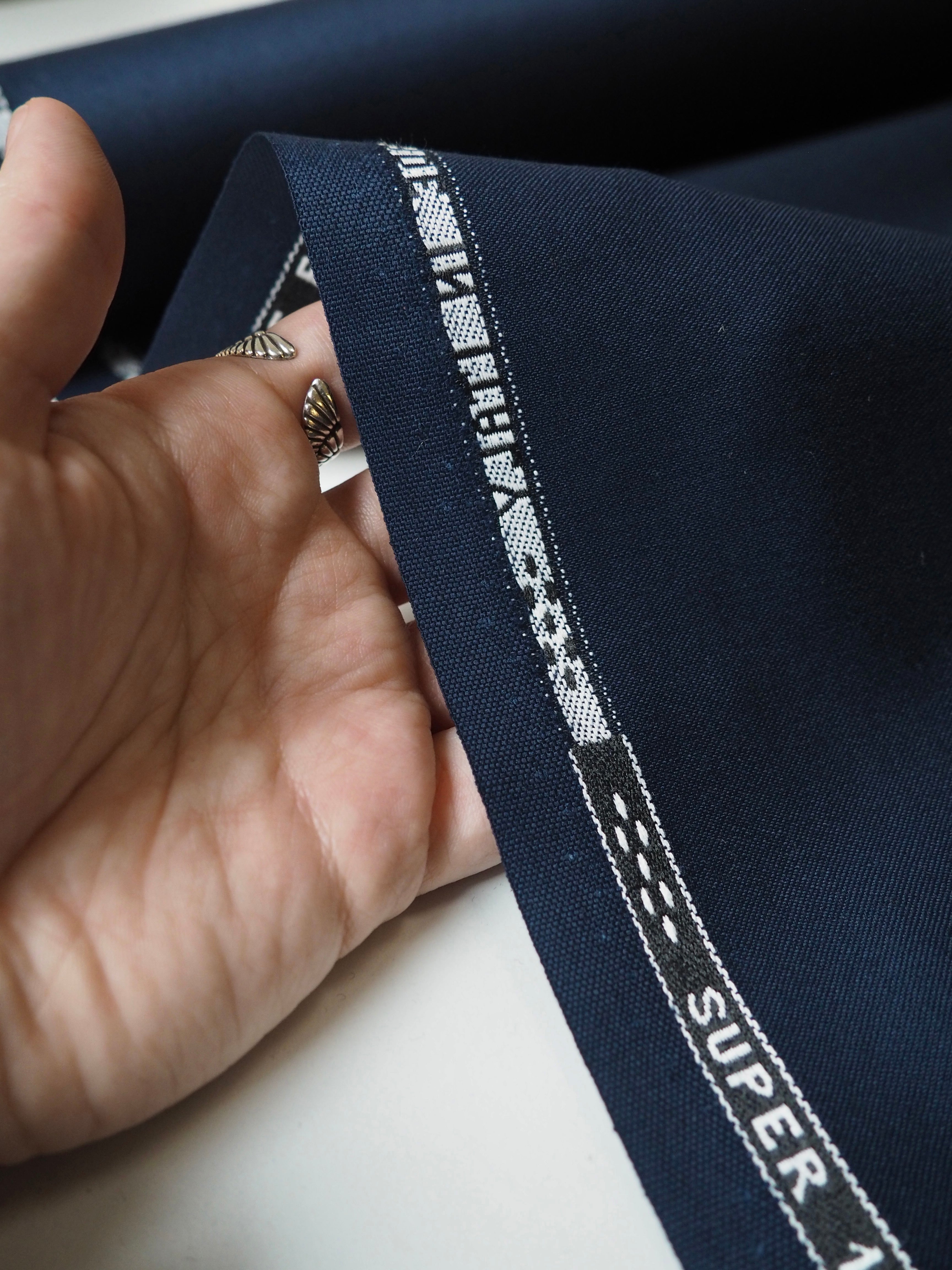 This ex-designer fabric is a luxurious wool suiting. Double faced, Italian made and Super 100, it has a beautiful sateen finish on the right side and is more matte on the reverse. In tailoring, 'Super' numbers refer to the amount of times the yarns have been twisted. A high twist produces a light, but very densely woven cloth and helps enhance the lustrous sateen finish. It has a great drape and would be perfect for jackets, trousers, dresses or even a jumpsuit!