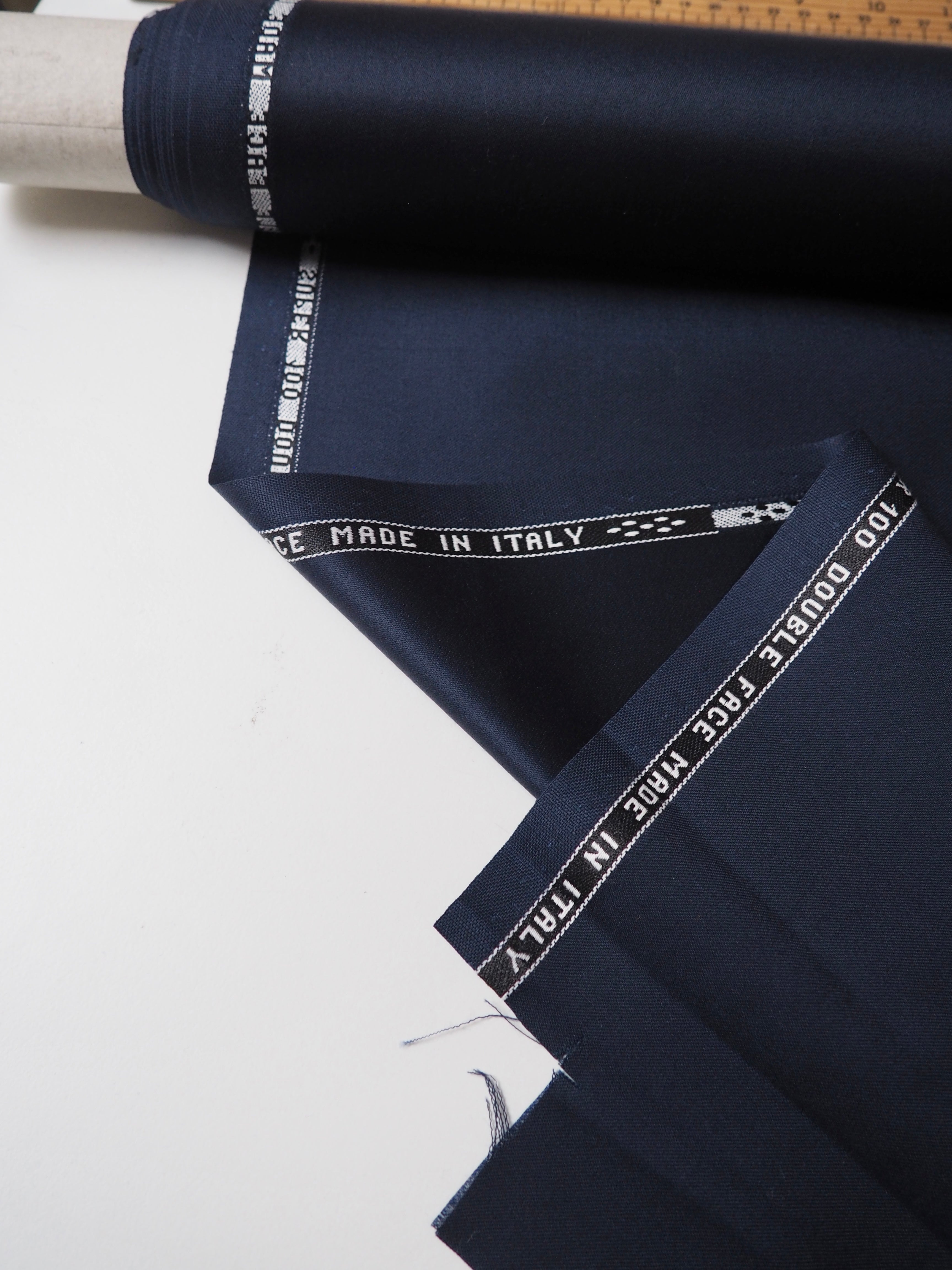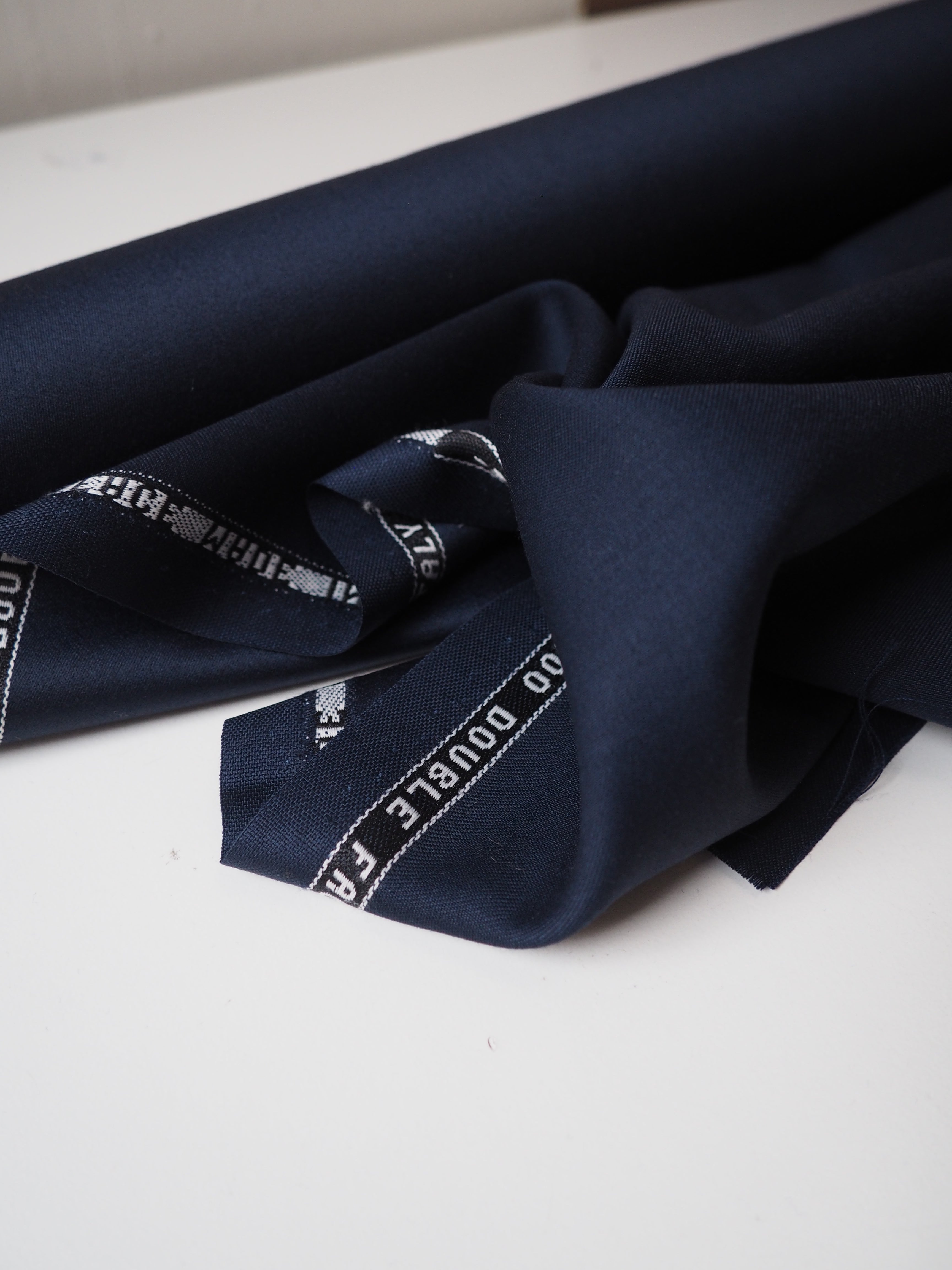 Navy Super 100 Double Faced Wool Sateen