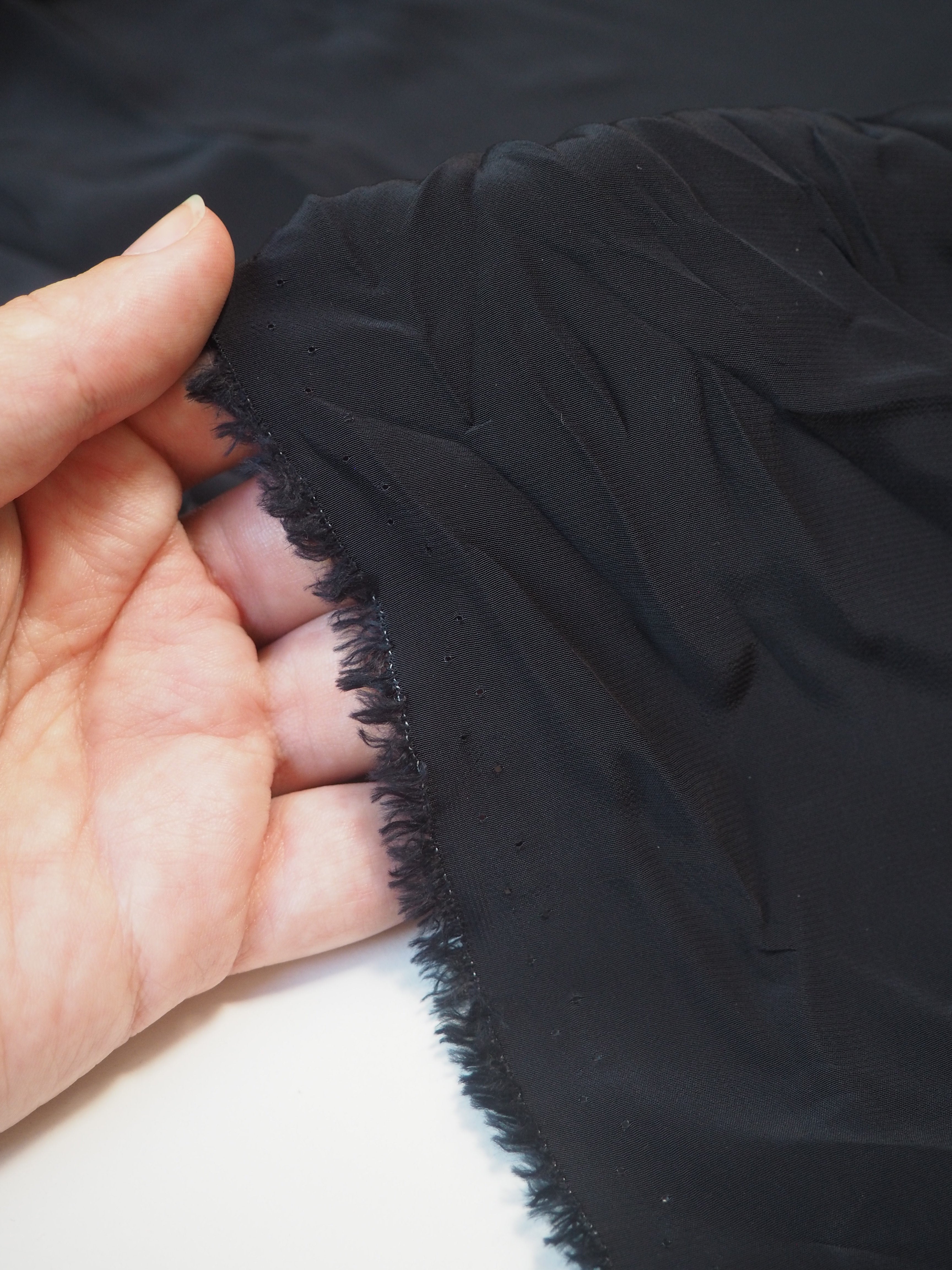 This ex-designer fabric is a viscose lining. It's a classic navy colour that is opaque. Light weight, slinky and super drapey. Beautiful handle typical of viscose, with a silky, smoother finish. Perfect for a button down, and great as a dress or skirt lining!