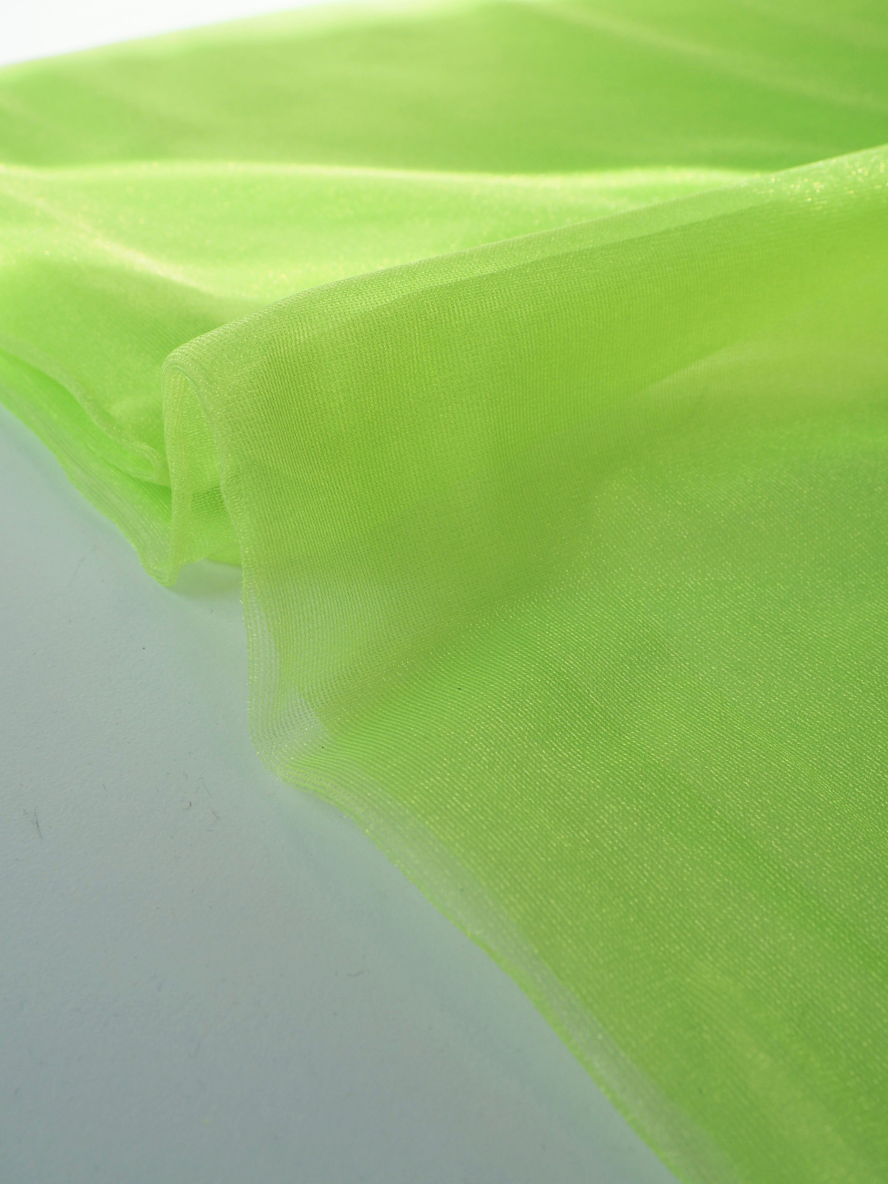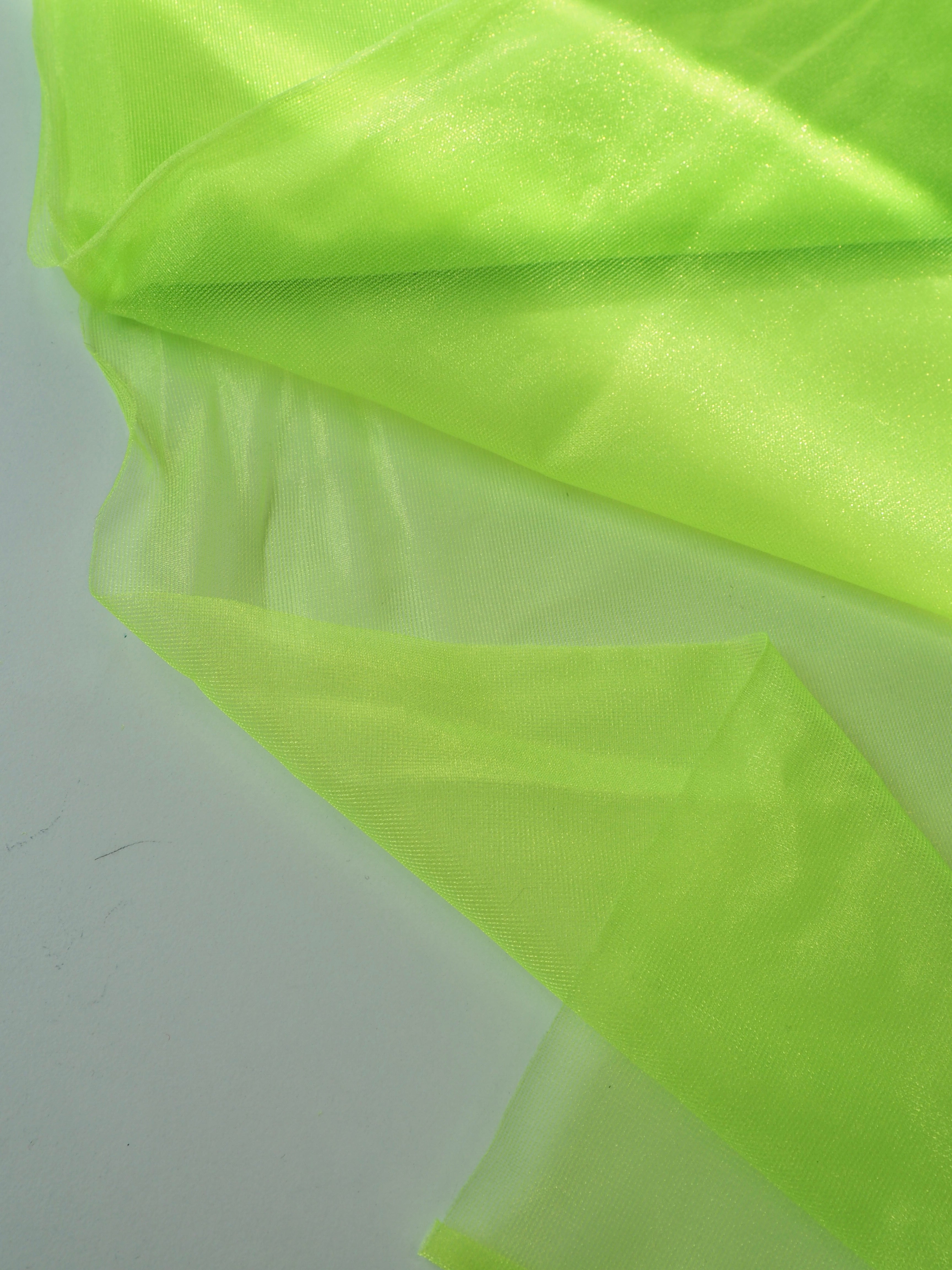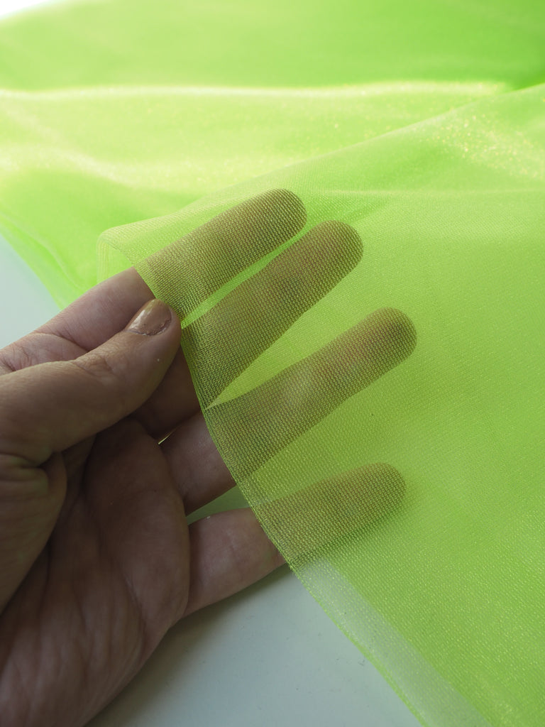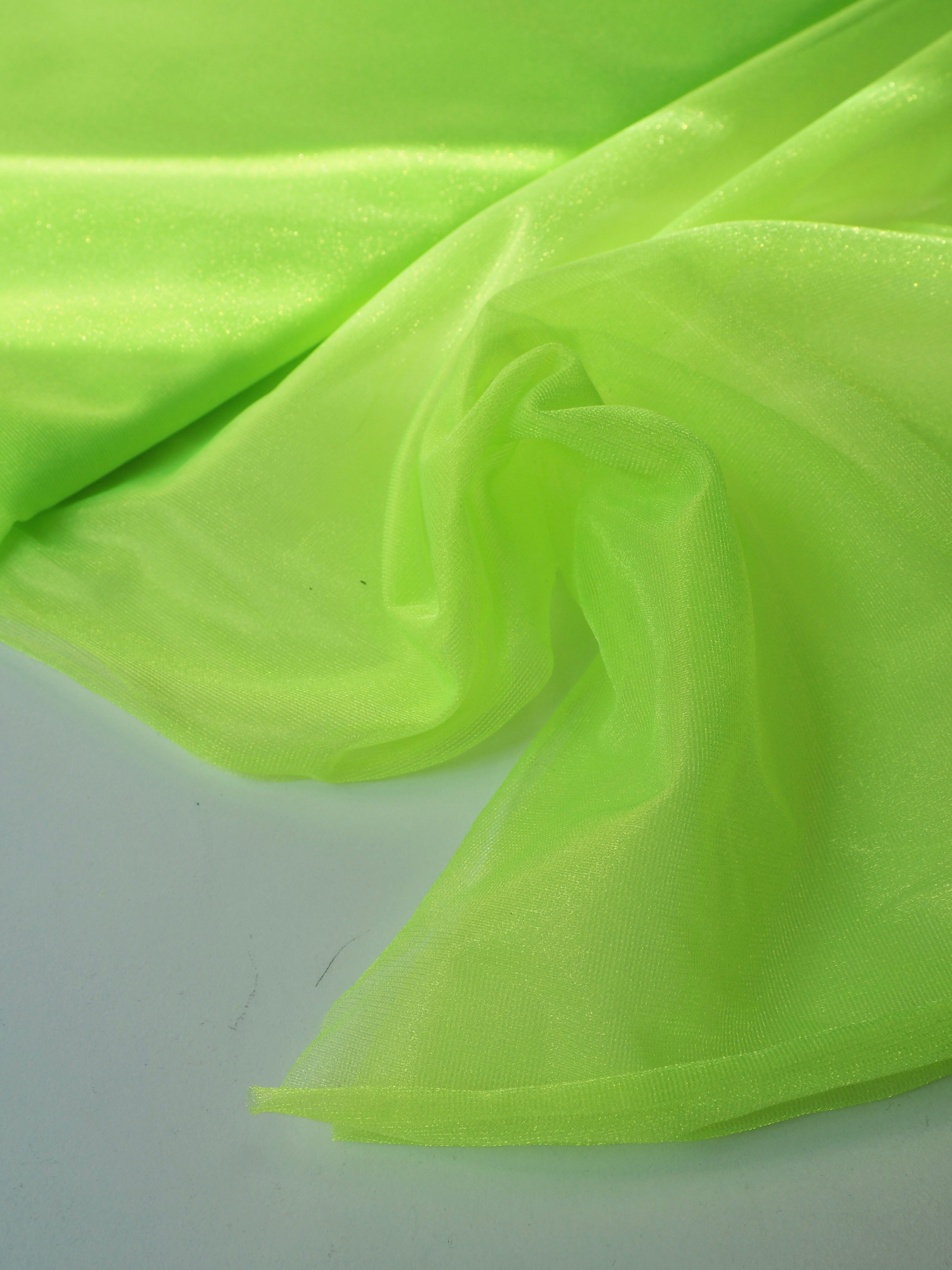 This ex-designer bright neon green tulle is super fine and has a nice soft structure. It has a flat weave, similar to an interlock mesh rather than the interconnecting hexagons usually associated with tulle. Lightweight with a soft drape. Perfect for a gathered dress or petticoat!