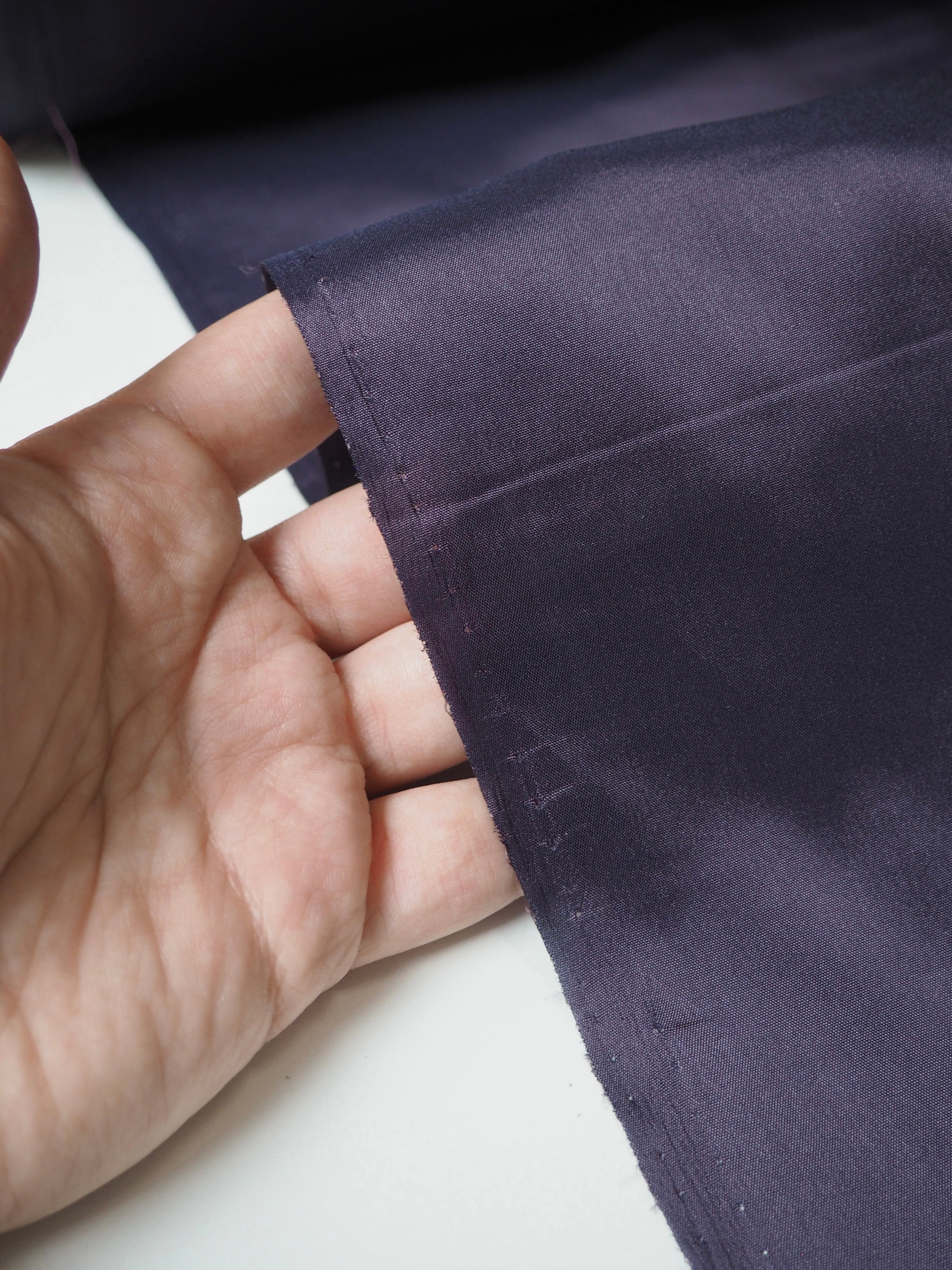 This ex-designer fabric is a lining. It has a plain weave in a soft and slinky acetate fibre. Has about 10% stretch, width-ways. Lightweight with a gentle drape and nice satin finish. Has a slight structure to it as well. Opaque. Ideal for lining any garment, especially a suit jacket or coat!