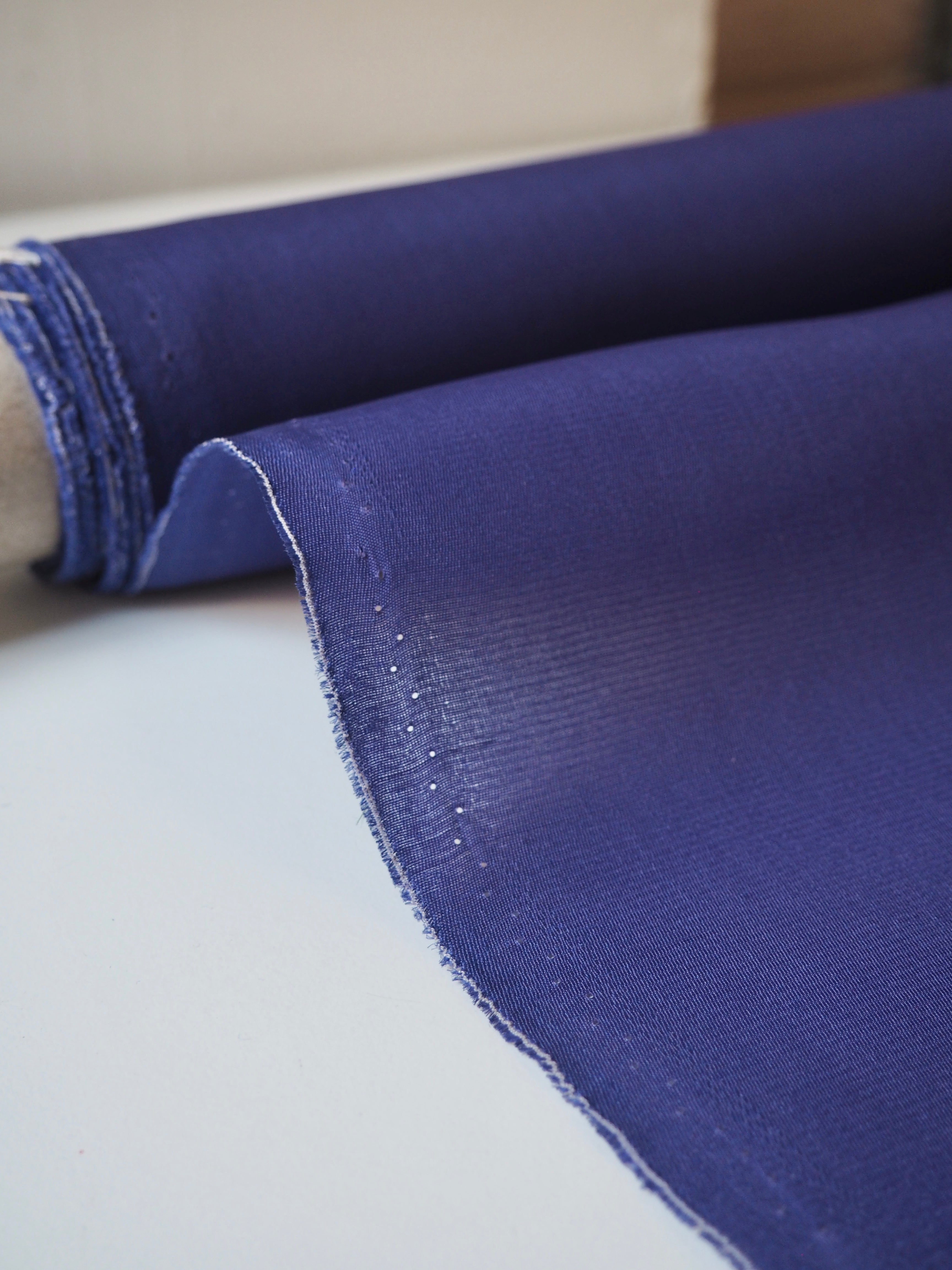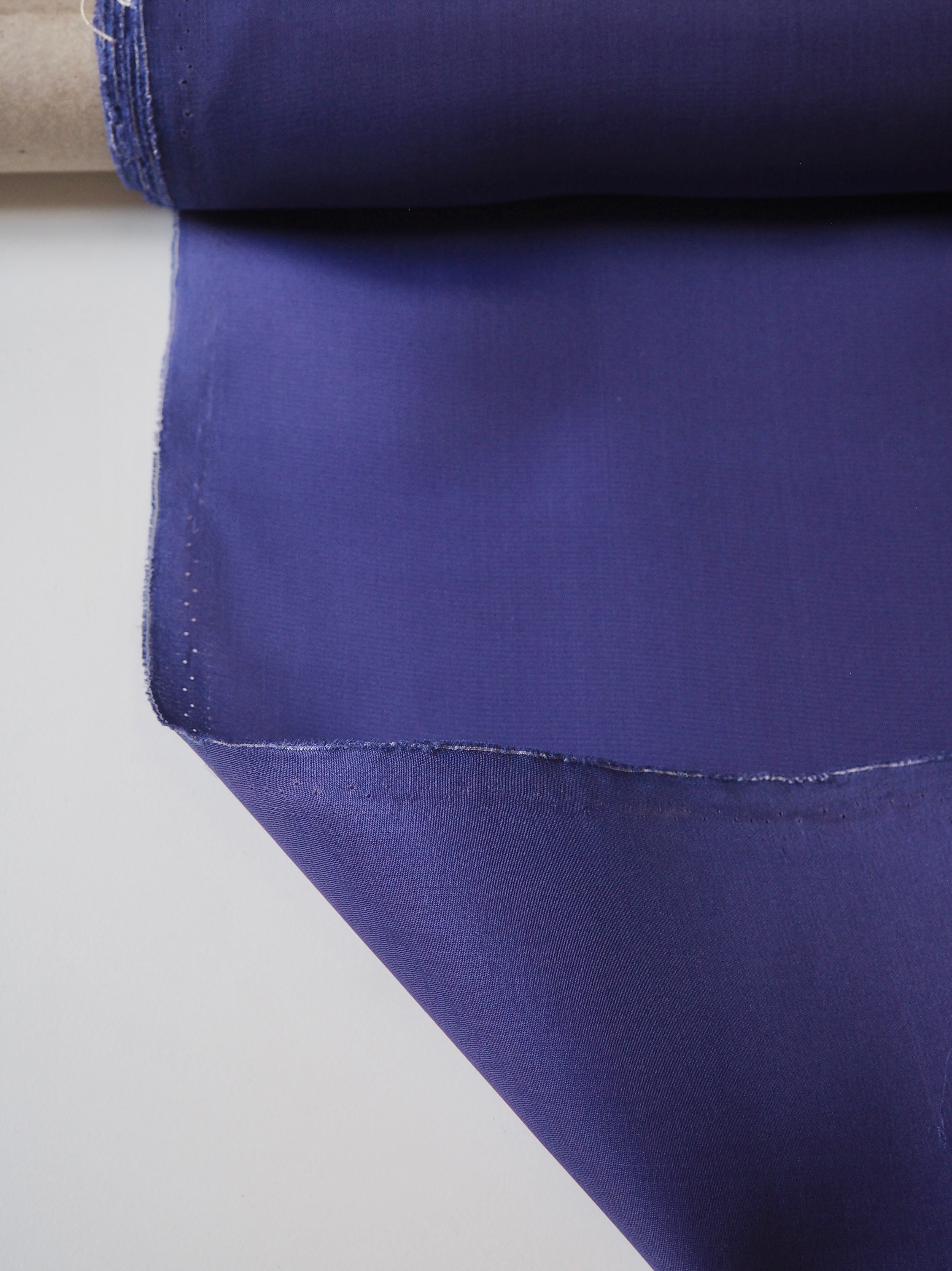 This ex-designer fabric is a beautiful silk organza. This organza is slightly heavier and less sheer. Woven from lustrous silk yarns which result in the finish that catches the light as it moves. In a rich purple shade, with amazing structure to play with. Great for volume pieces, like skirts, sleeves, or bags!