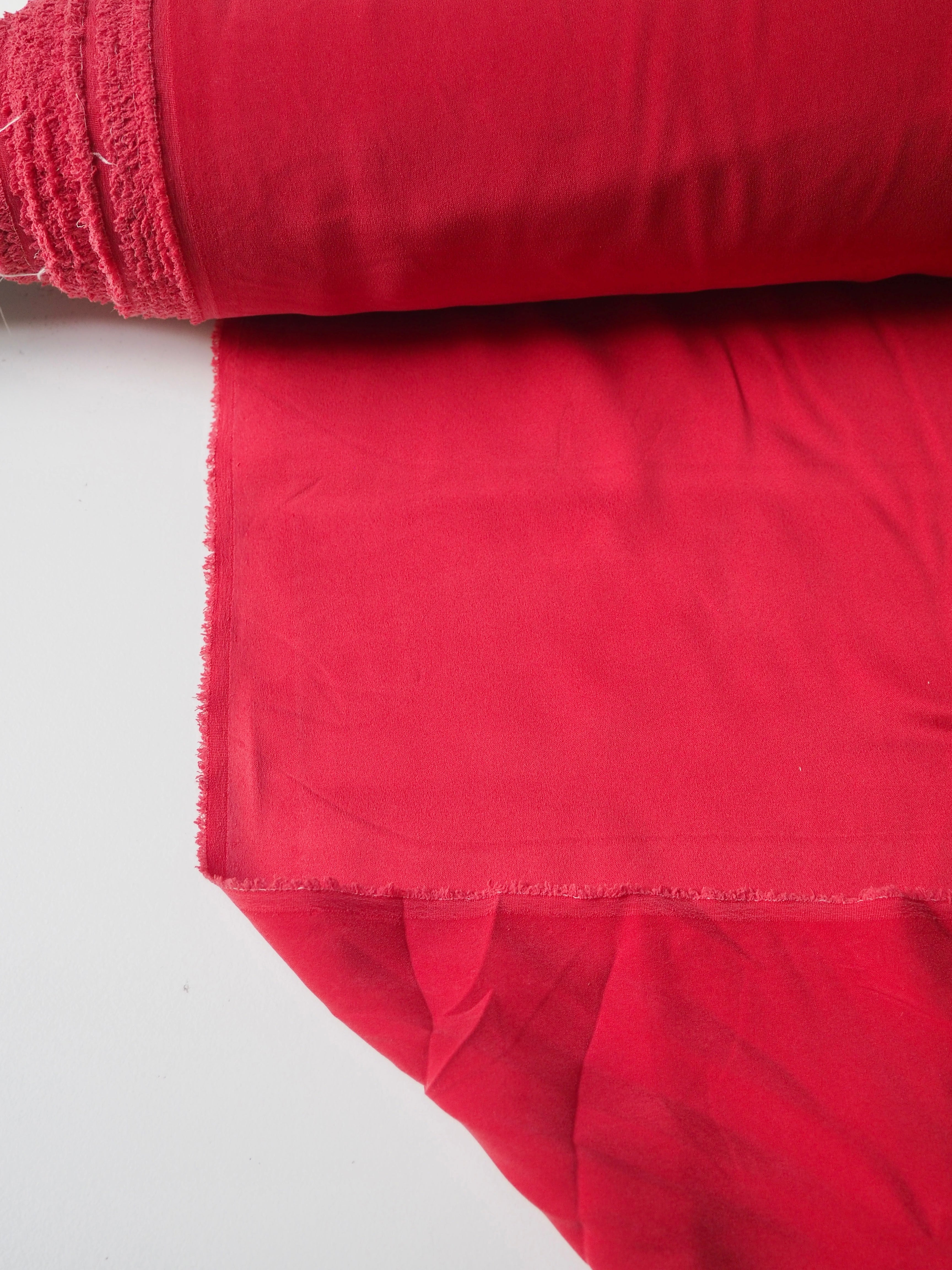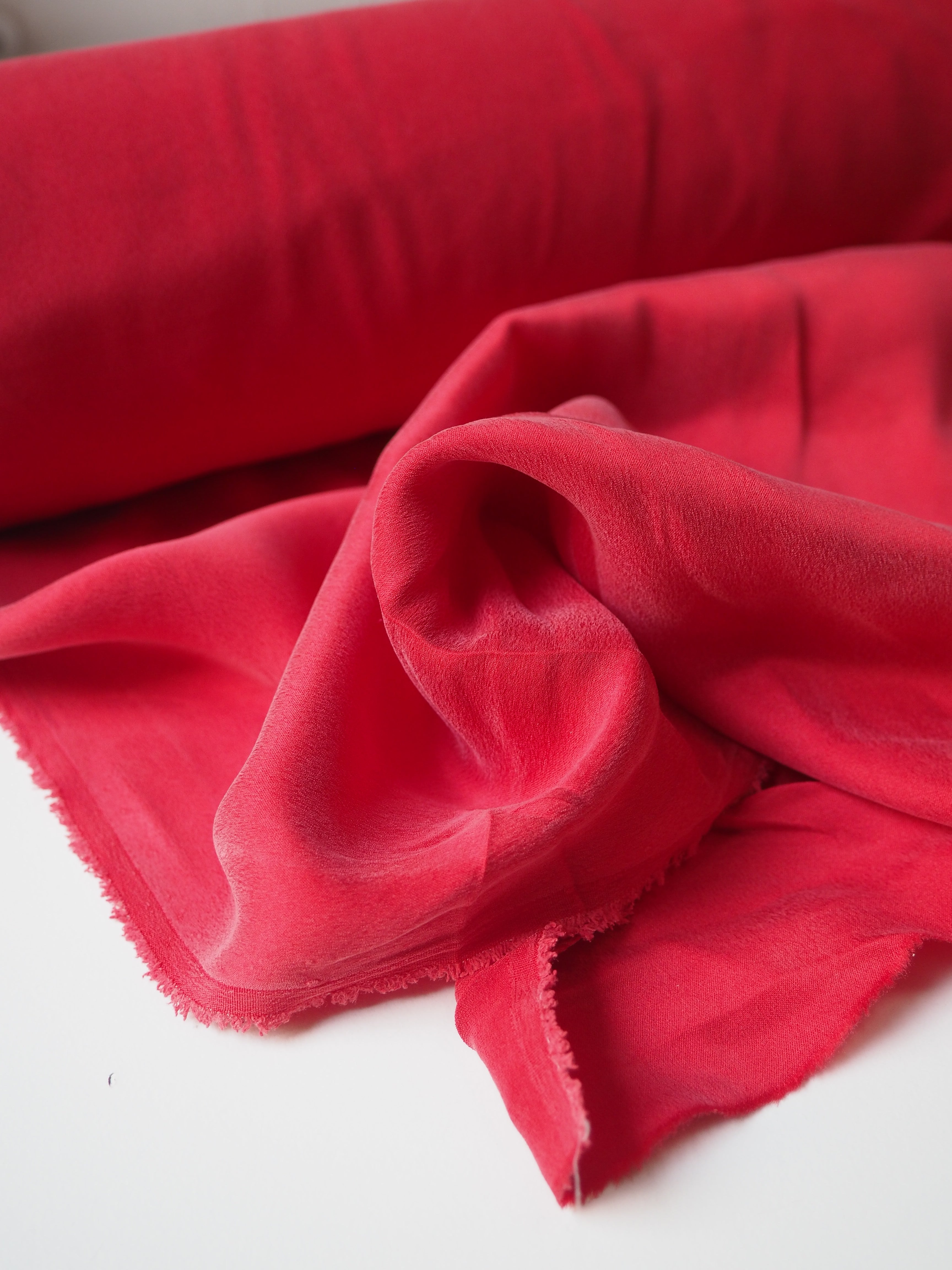 This ex-designer fabric is a washed silk. It's a luxuriously soft silk, with a washed finish. This makes the silk drape better and softens it. The stretch gives it more versatility, with about 15% width-ways. It has incredible liquid movement! Super lightweight and opaque. Such a wonderful handle, feels so fantastic to the touch! Perfect for skirts, blouses, and lingerie!