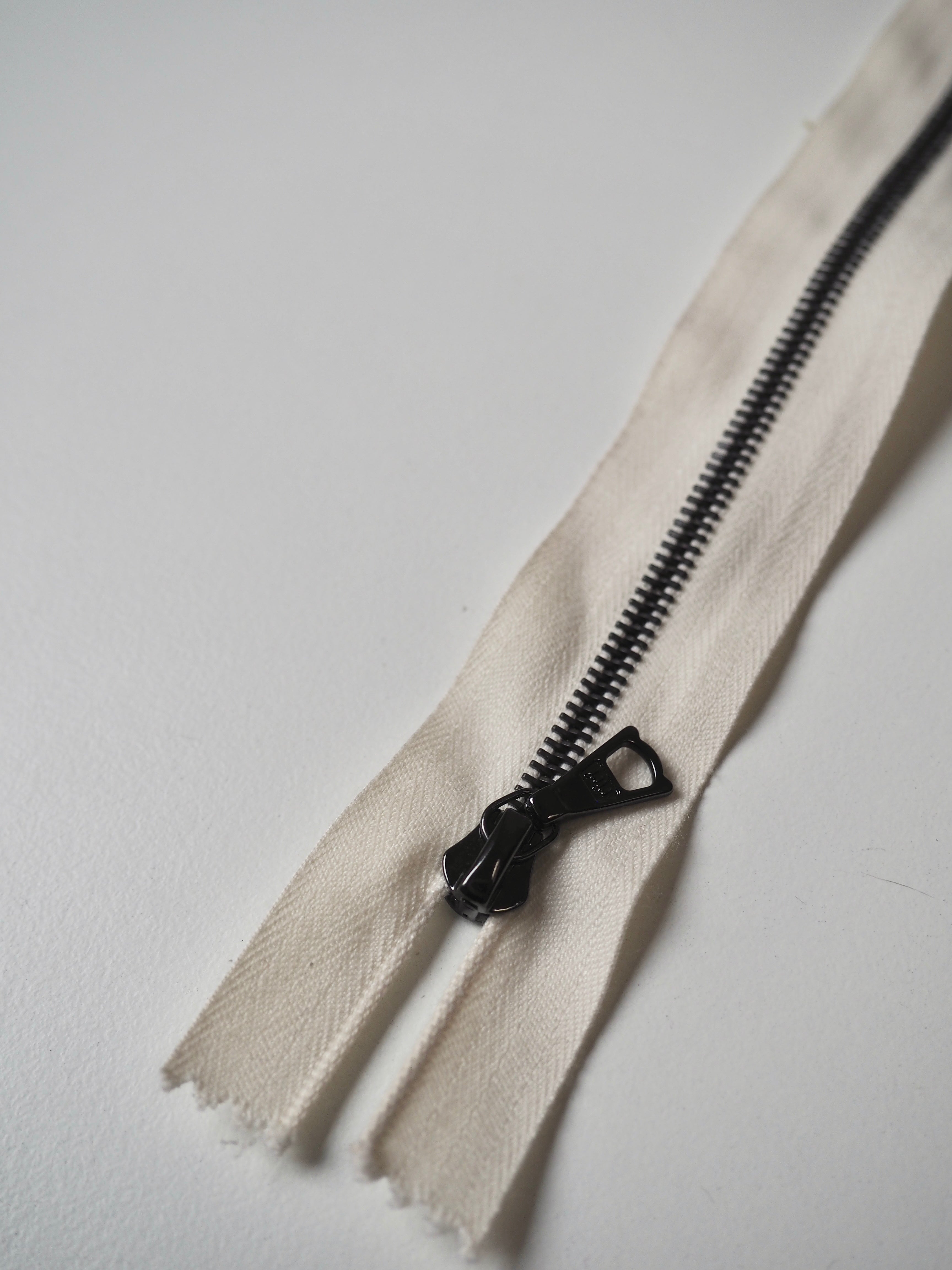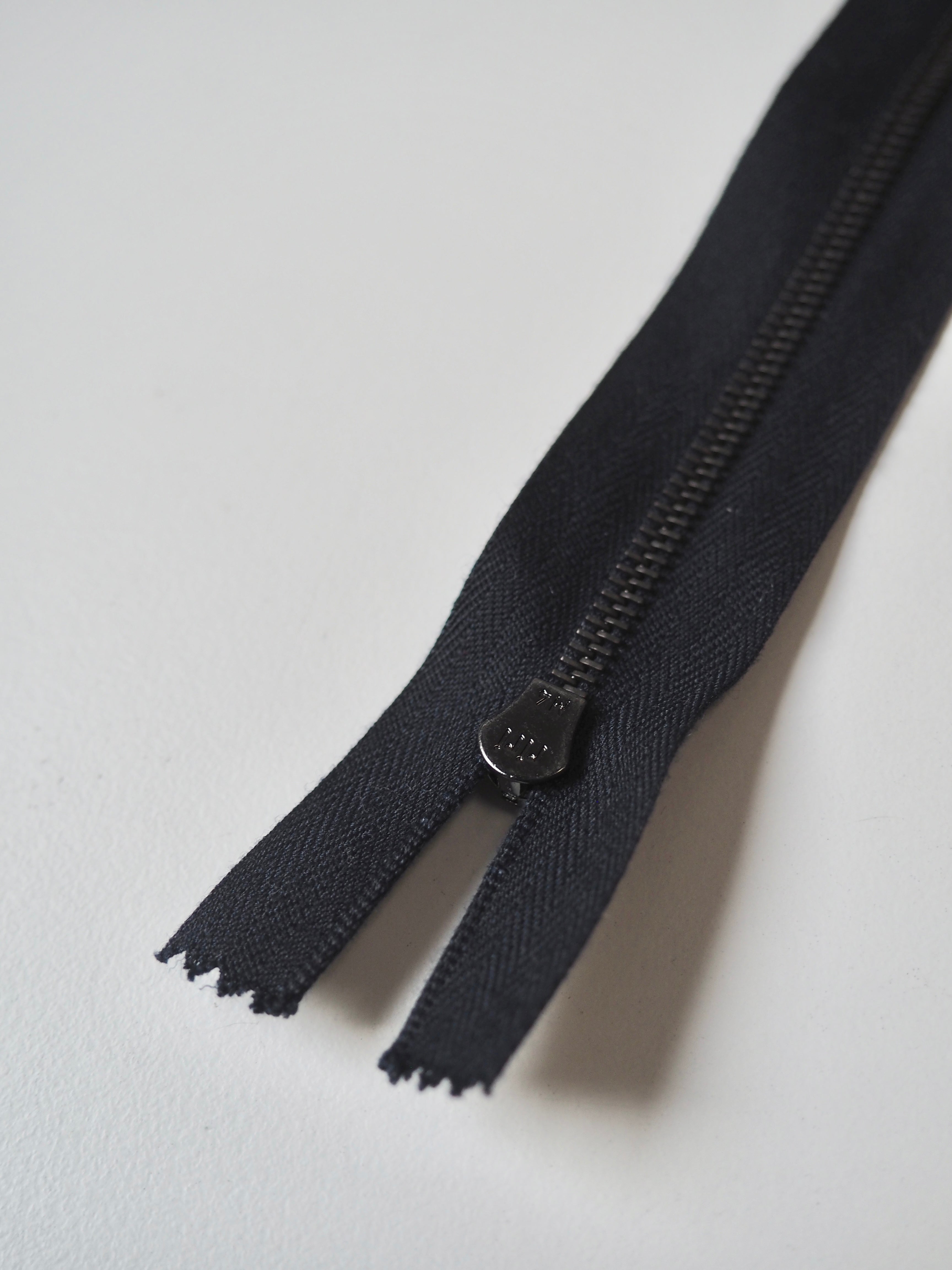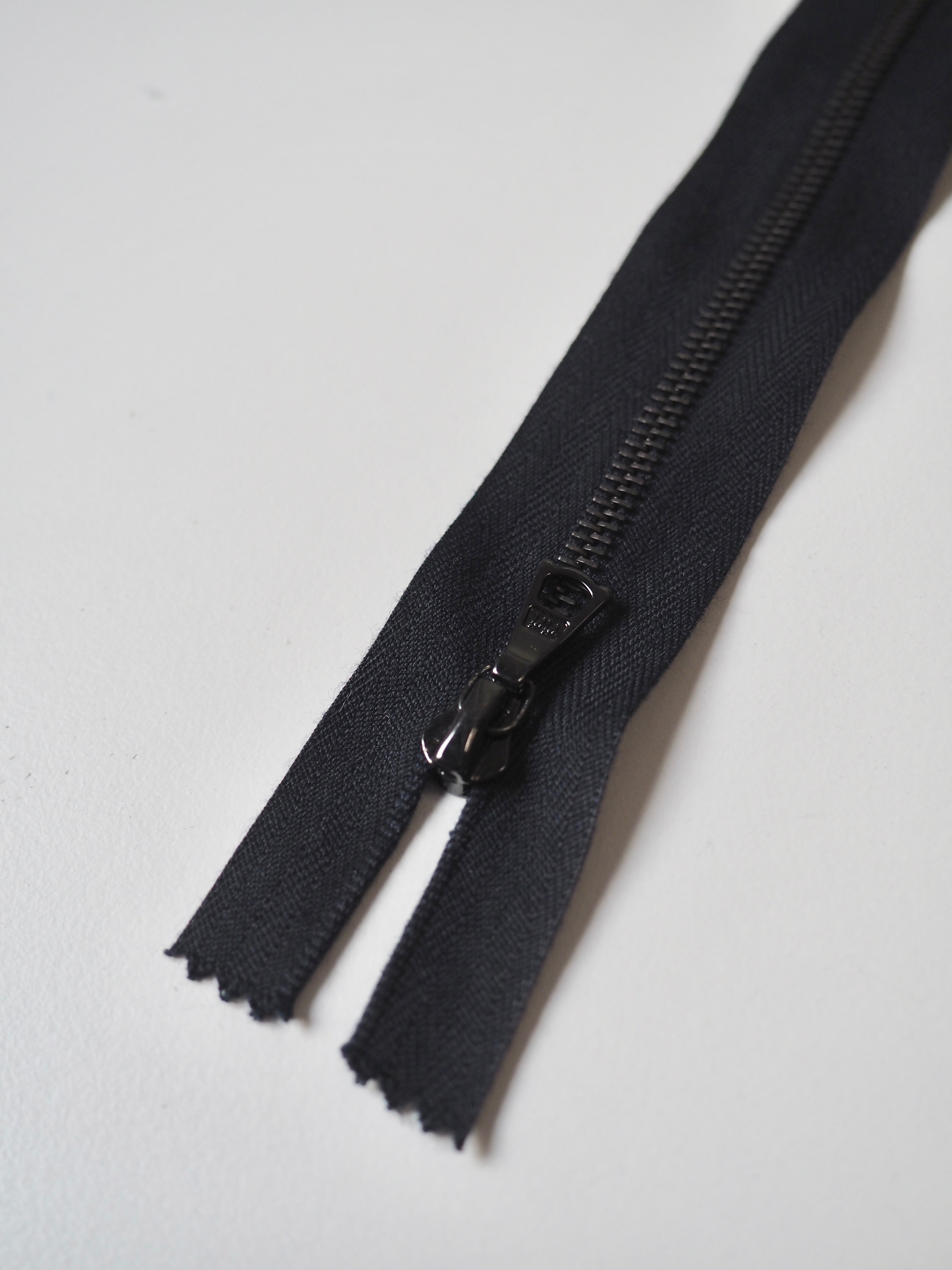Ex-designer deadstock zips sourced from one of our favourite London based designers. Amazing quality, closed ended with narrow 4mm gunmetal metal teeth and matching standard pulls.