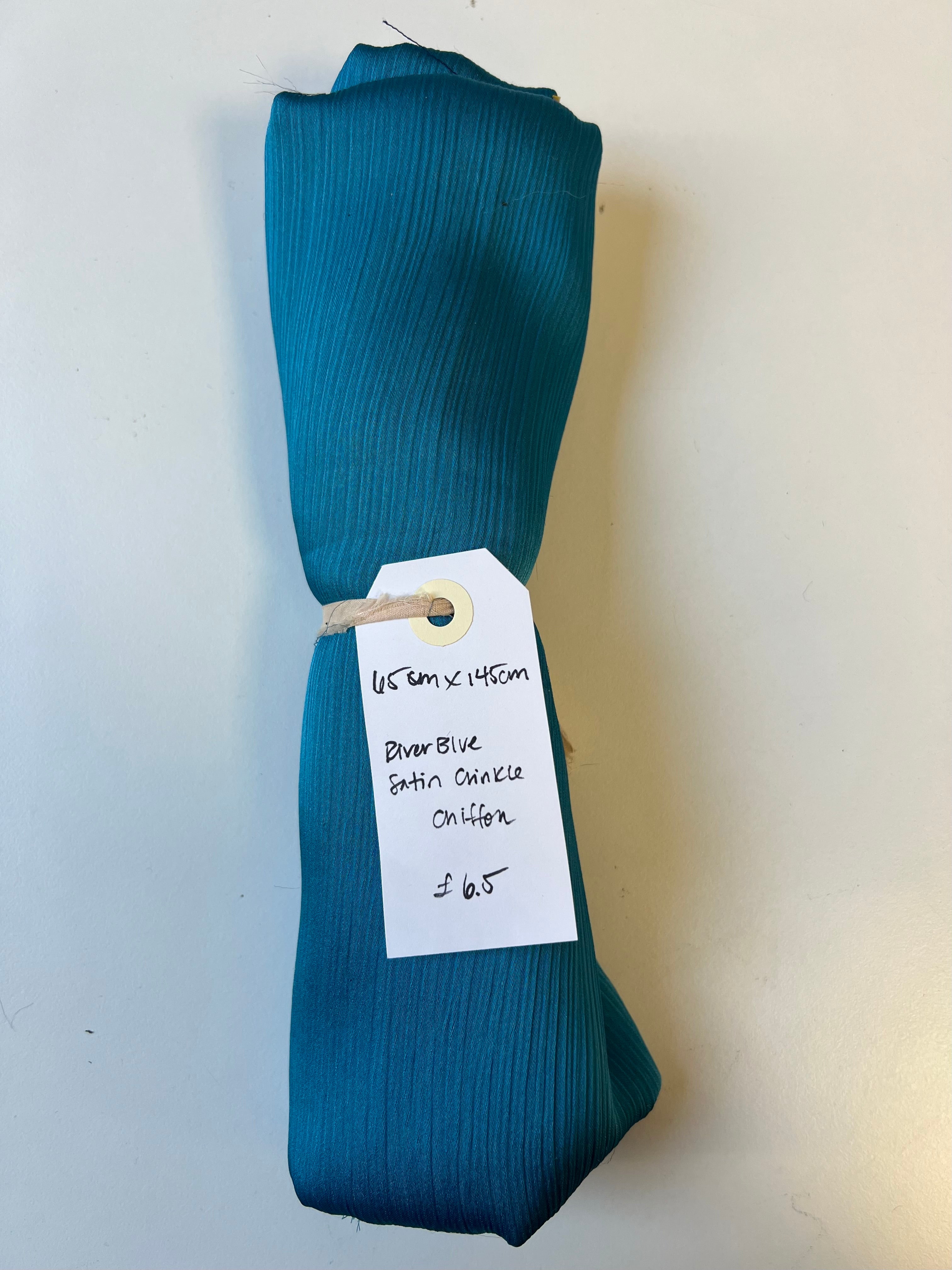 River Blue Satin Crinkle Chiffon Remnant