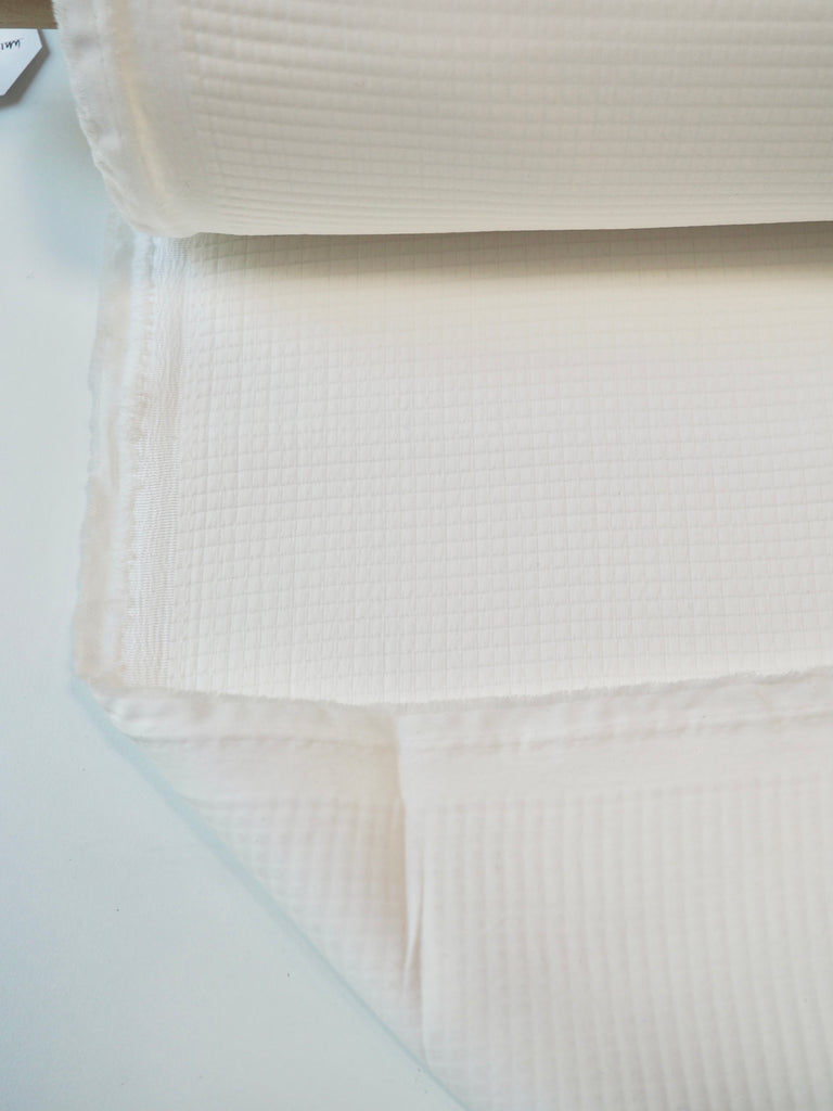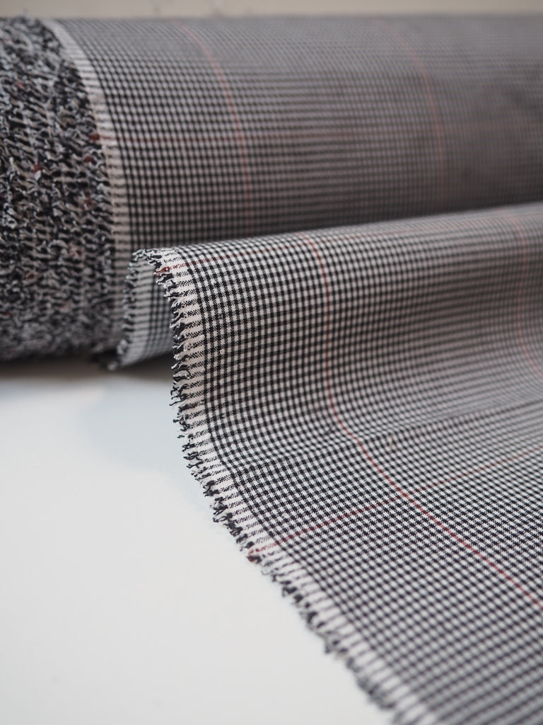 This ex-designer fabric is a cady. It's a bespoke designer print of rosebushes cut out in a prism-like layout. Light to medium weight with a soft drape. Has a typical smooth but slightly textured cady handle and nice heavy drape. Perfect for dresses, tops, and even tote bags!