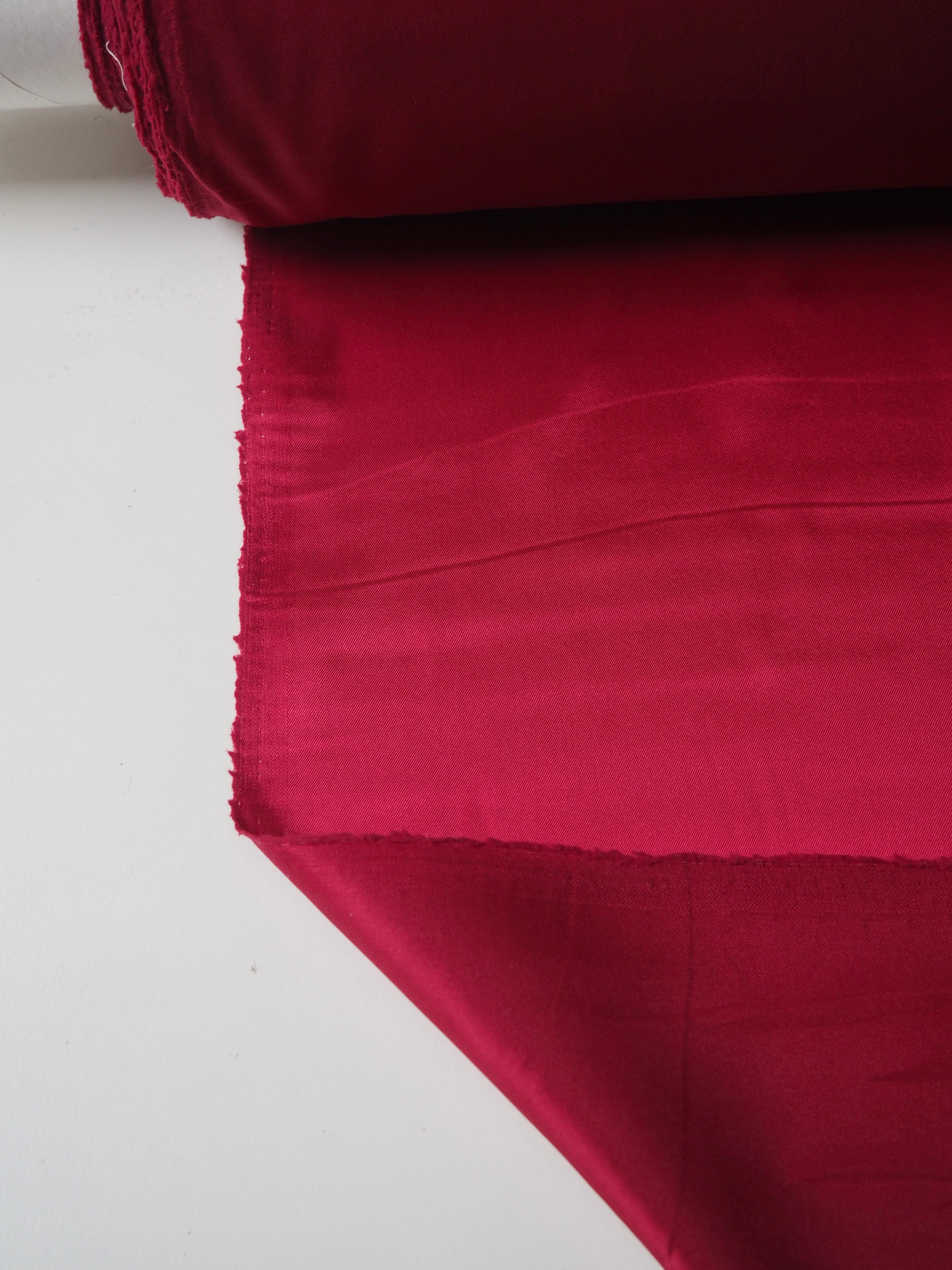 This ex-designer fabric is a stretch lining. It has a twill weave in a soft and slinky acetate fibre. Has a gentle 10% stretch width-ways. Lightweight with a gentle drape and nice satin finish. Has a slight structure to it as well. Mostly opaque. Ideal for lining any garment, especially a suit jacket or coat!