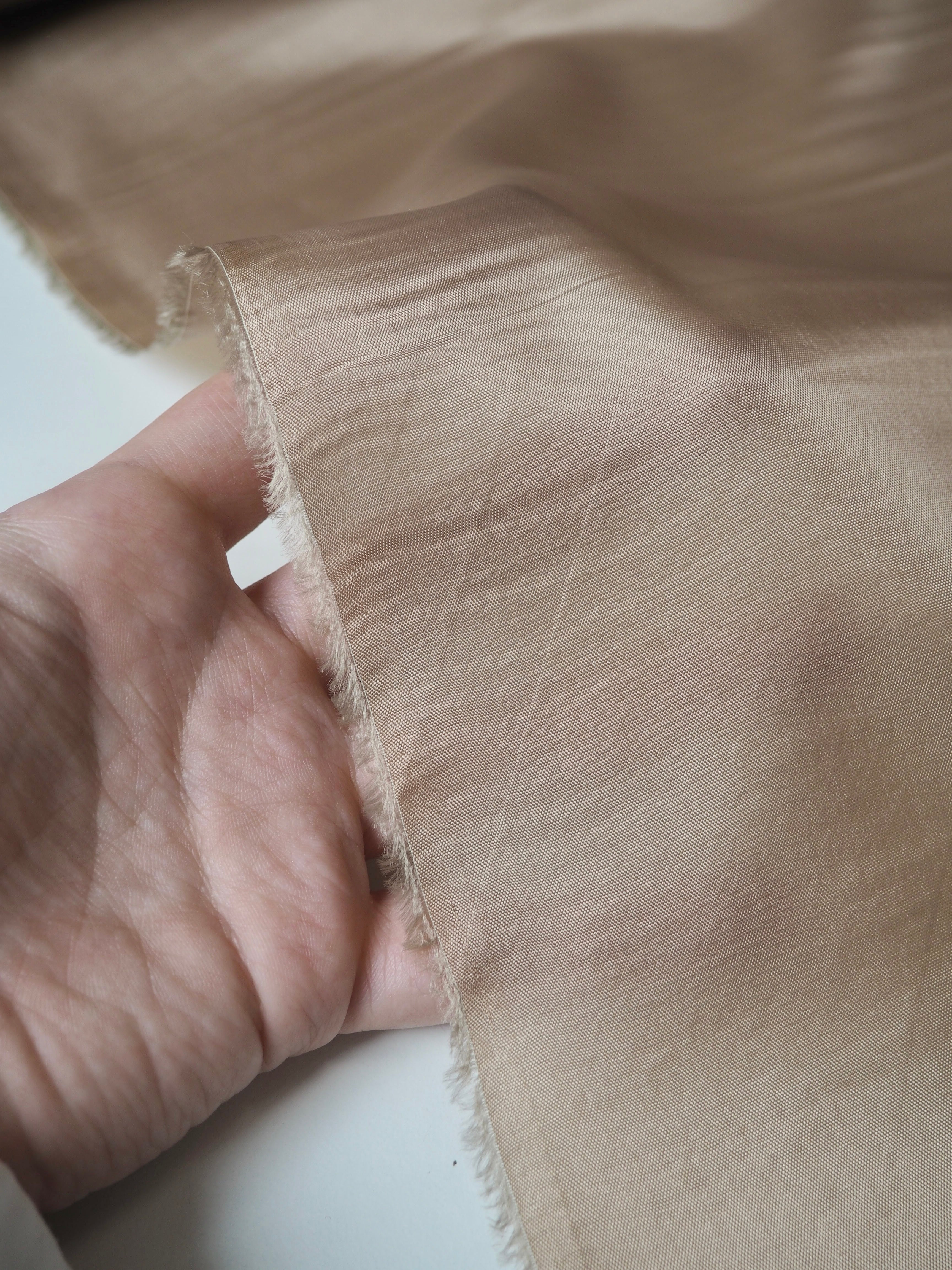 This ex-designer fabric is a lining. It has a plain weave in a soft and slinky acetate fibre. Lightweight with a gentle drape and nice satin finish. Has a slight structure to it as well. Slightly sheer. Ideal for lining any garment, especially a suit jacket or coat!