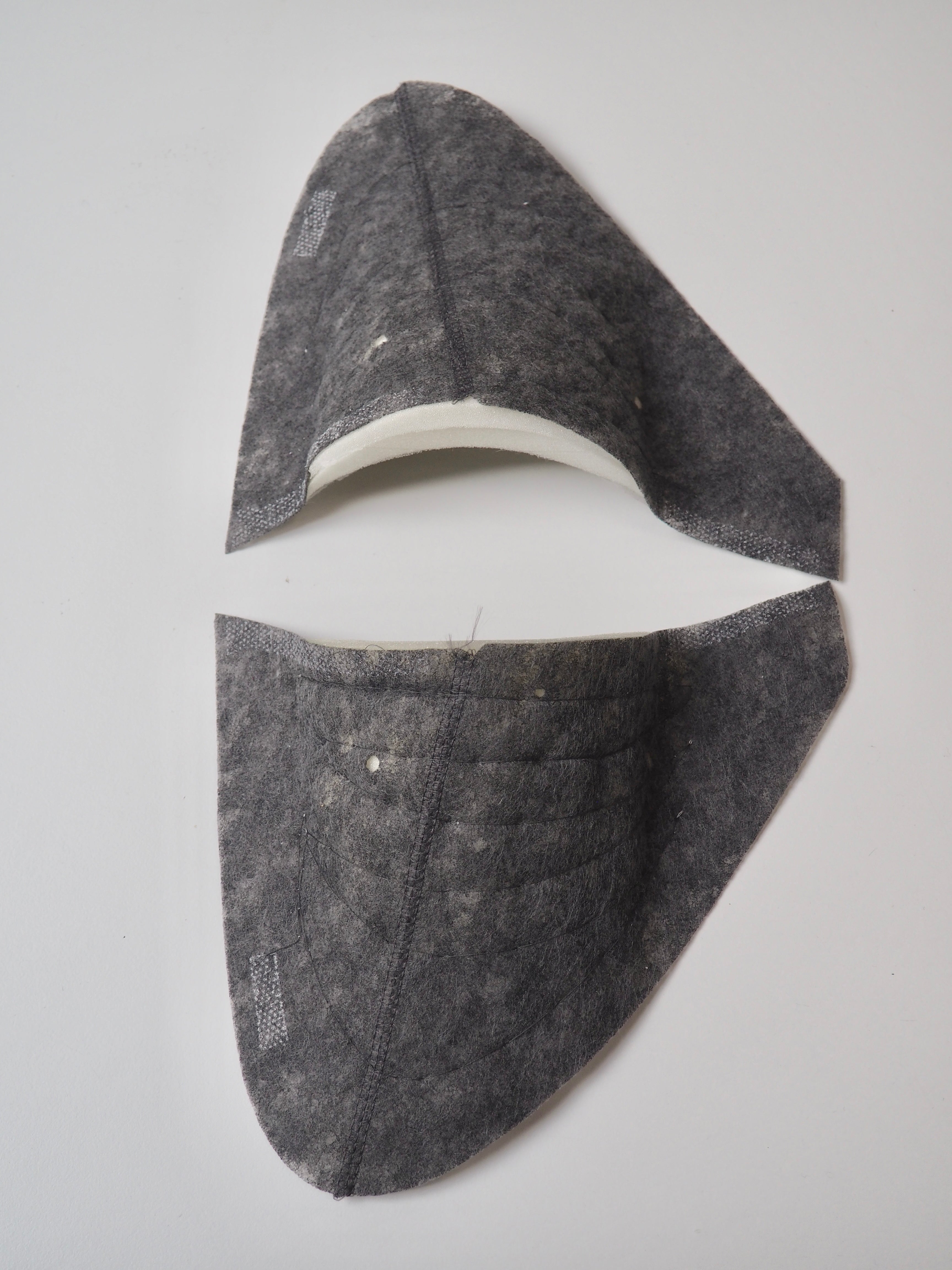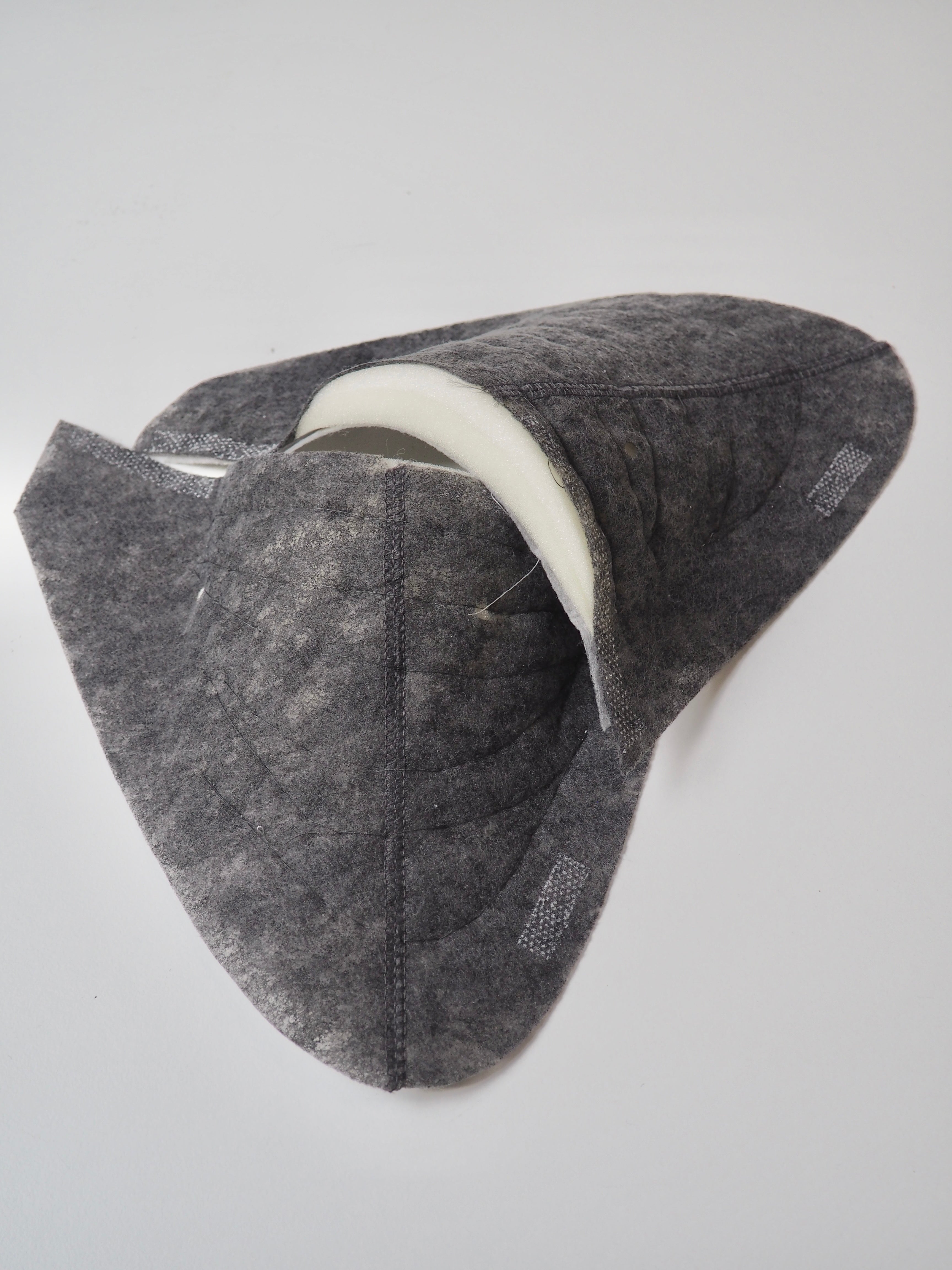 This ex-designer trim is a pair of shoulder pads. They are a great thickness, made up of a two layers of felt around two layers of foam in the centre. The layers have been basted together to easily take out the padding, to accommodate the thickness you would like. They are an elongated triangular shape which could also be adjusted for the desired fit and effect. Versatile for an 80's power shoulder jacket, down to a staple winter coat!