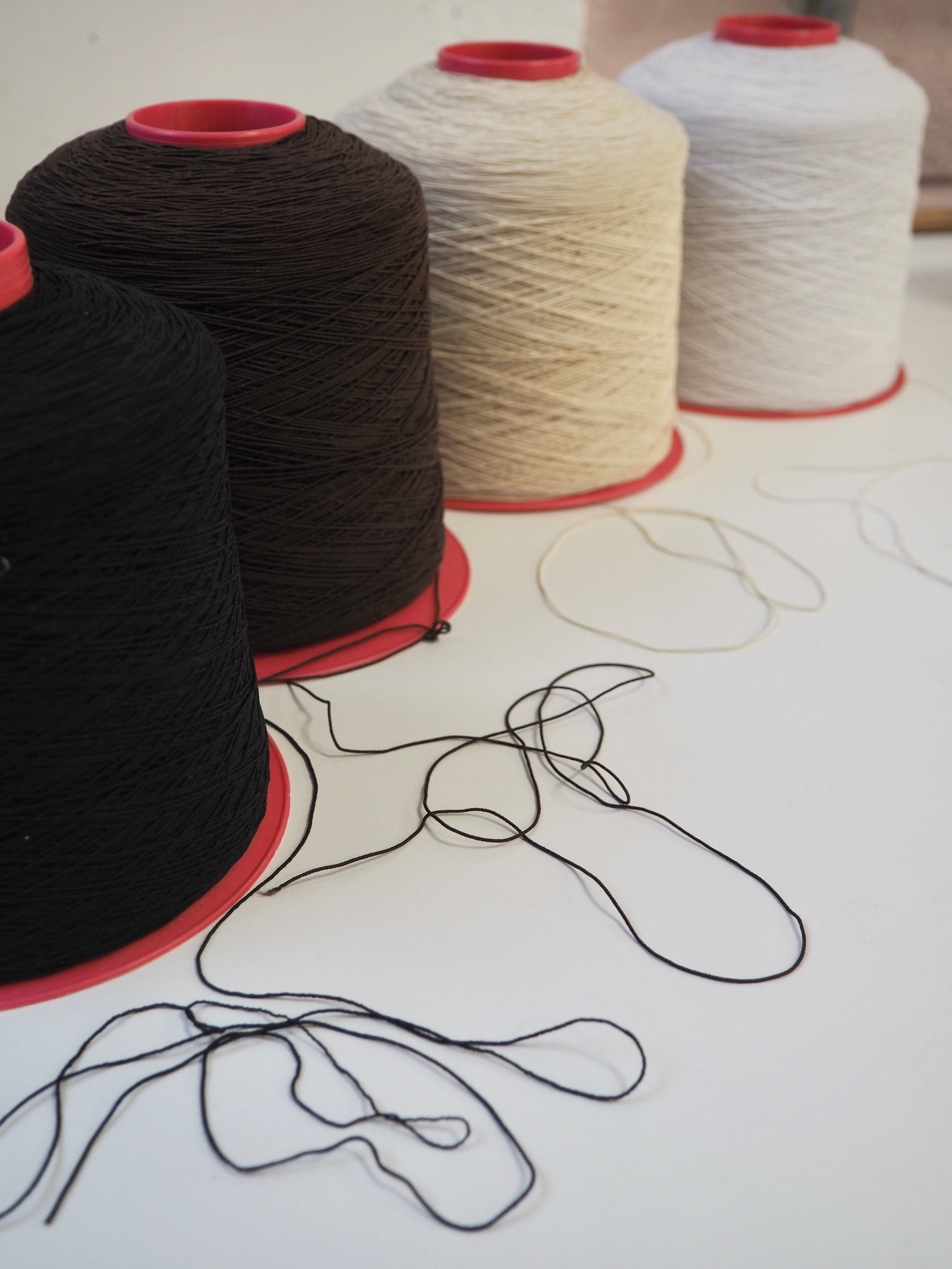 This ex-designer trim is an elastic thread. It's very stretchy, up to 1.5x its original size. Super lightweight and perfect for shirring projects!