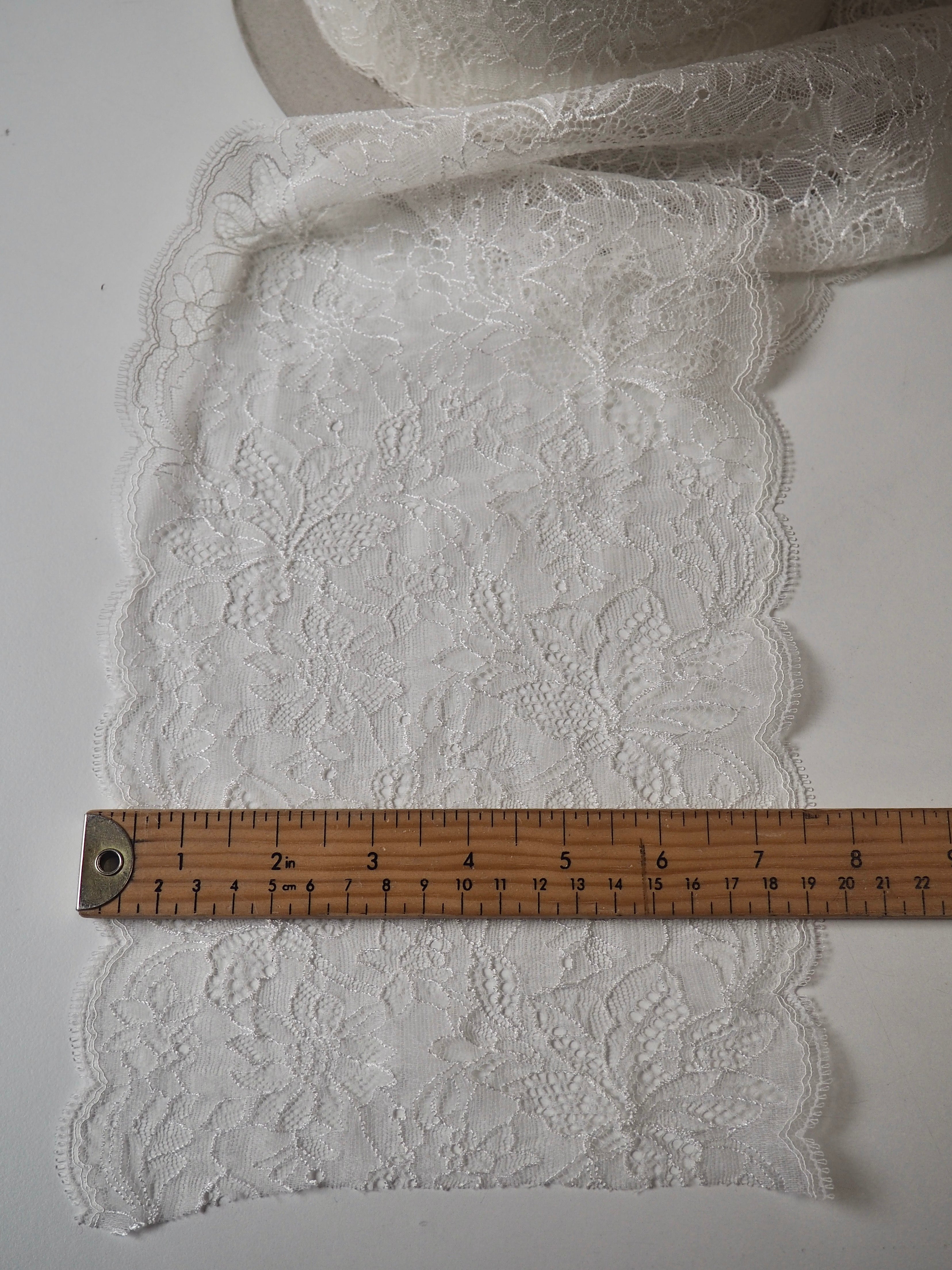 White Stretch Flower Meadow Scallop Lace Trim 19.5cm