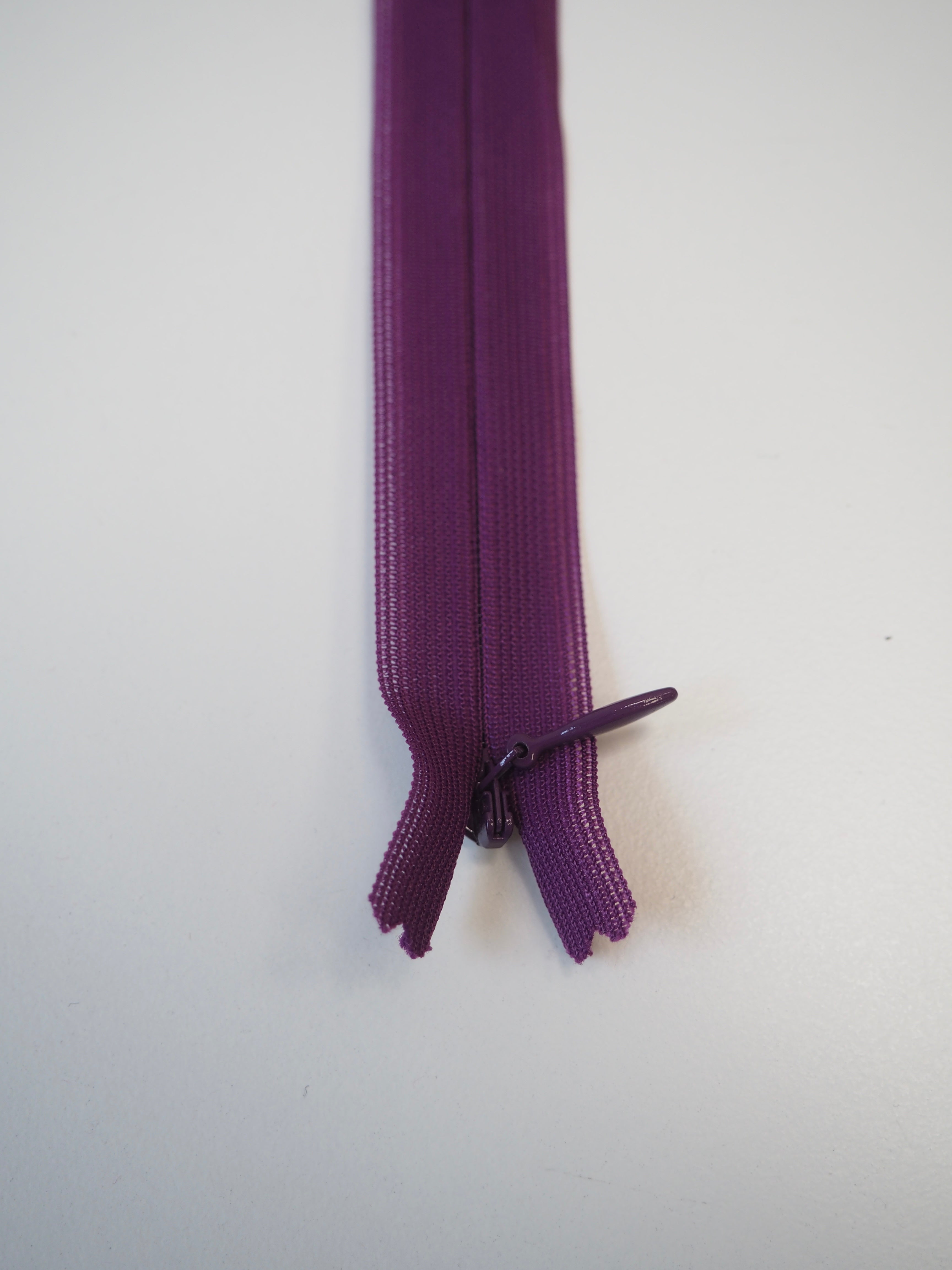 Closed end invisible zips. Available in various colours. Plastic teeth and metal zipper pull. Perfect for using as a hidden closure. Colours read from left to right.