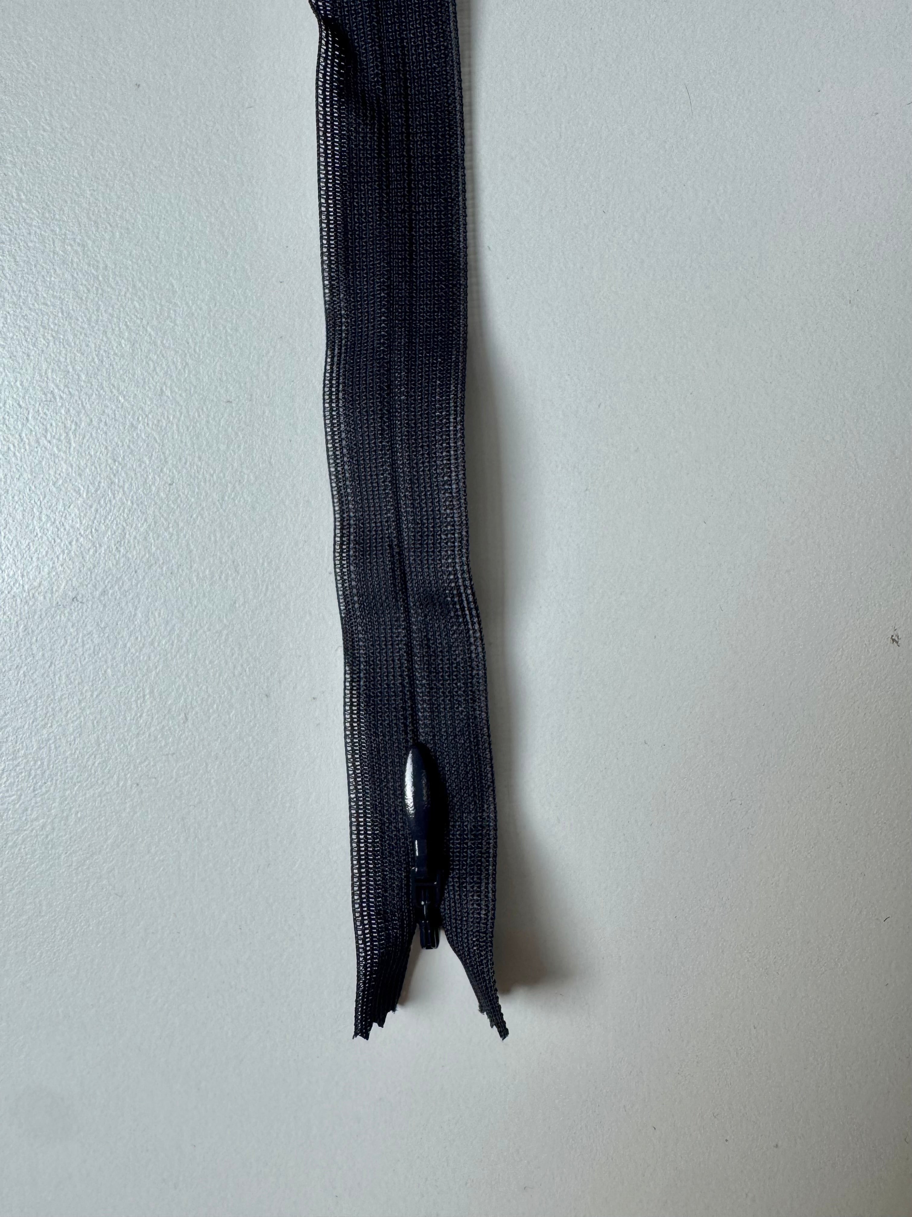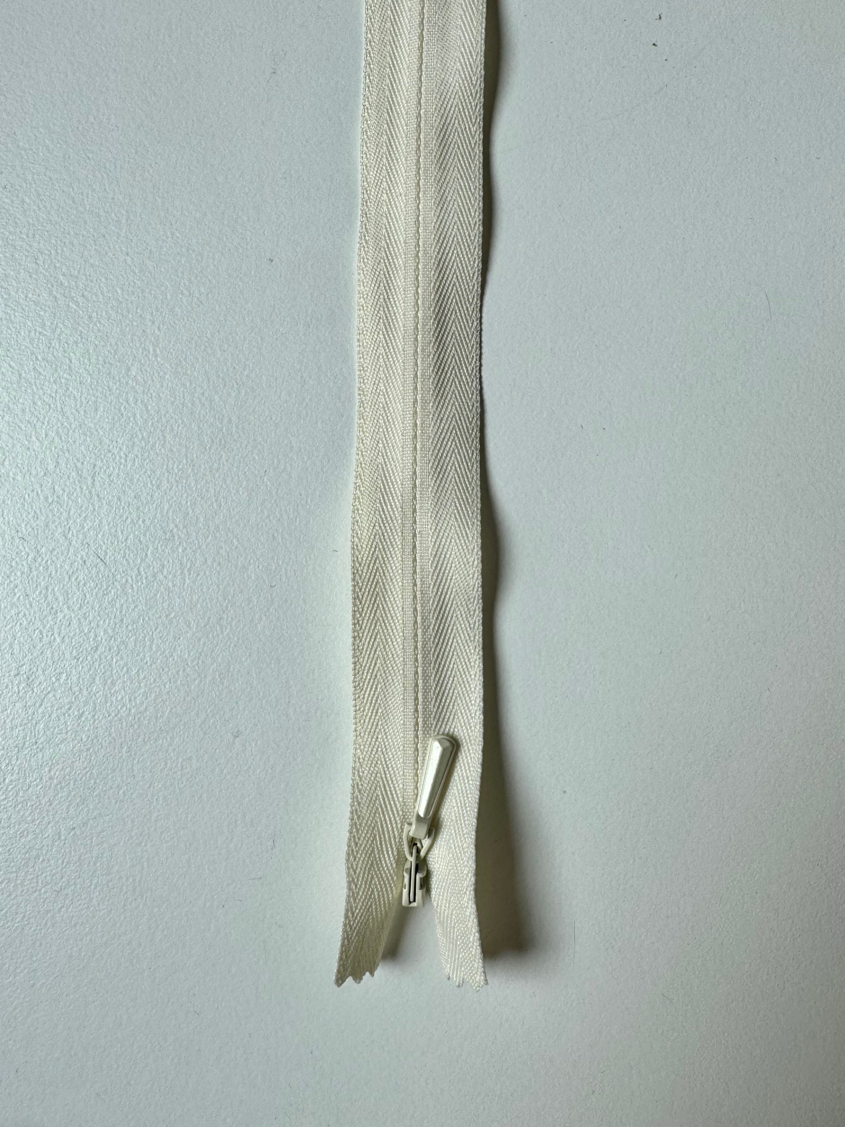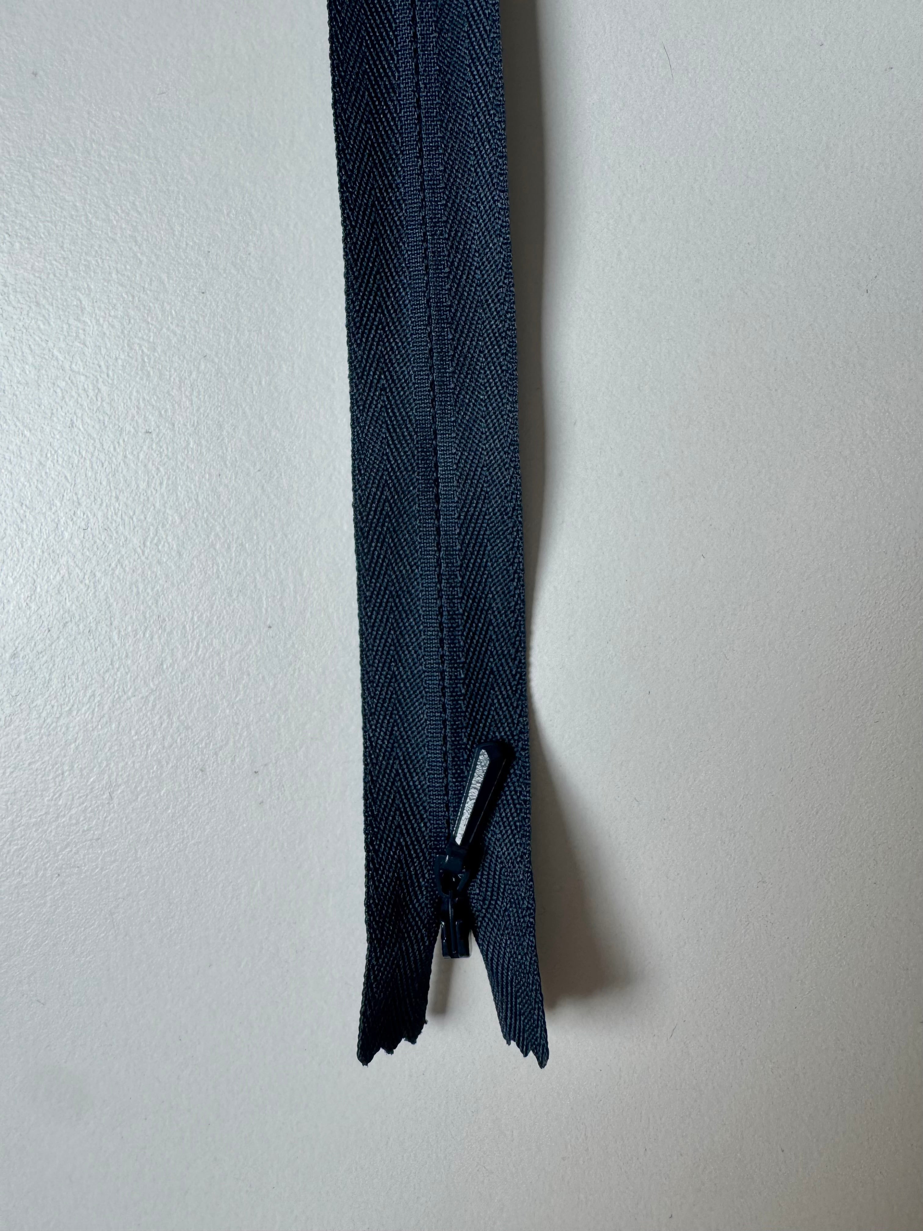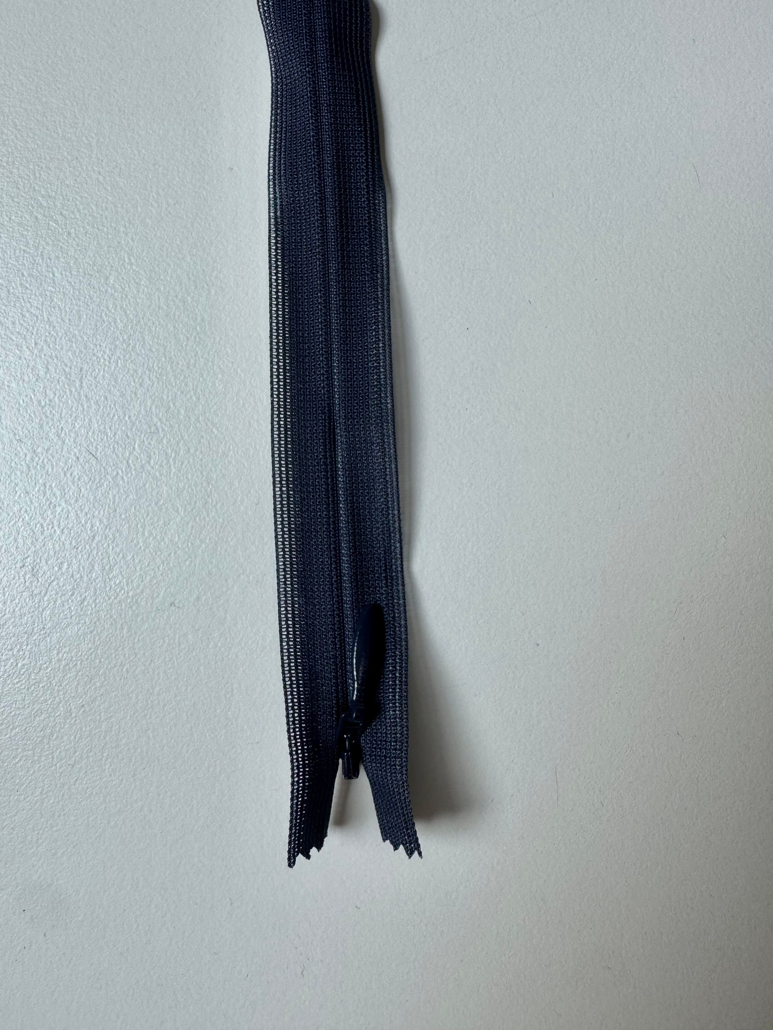 Closed end invisible zips. Plastic teeth and metal zipper pull. Perfect for using as a hidden closure.