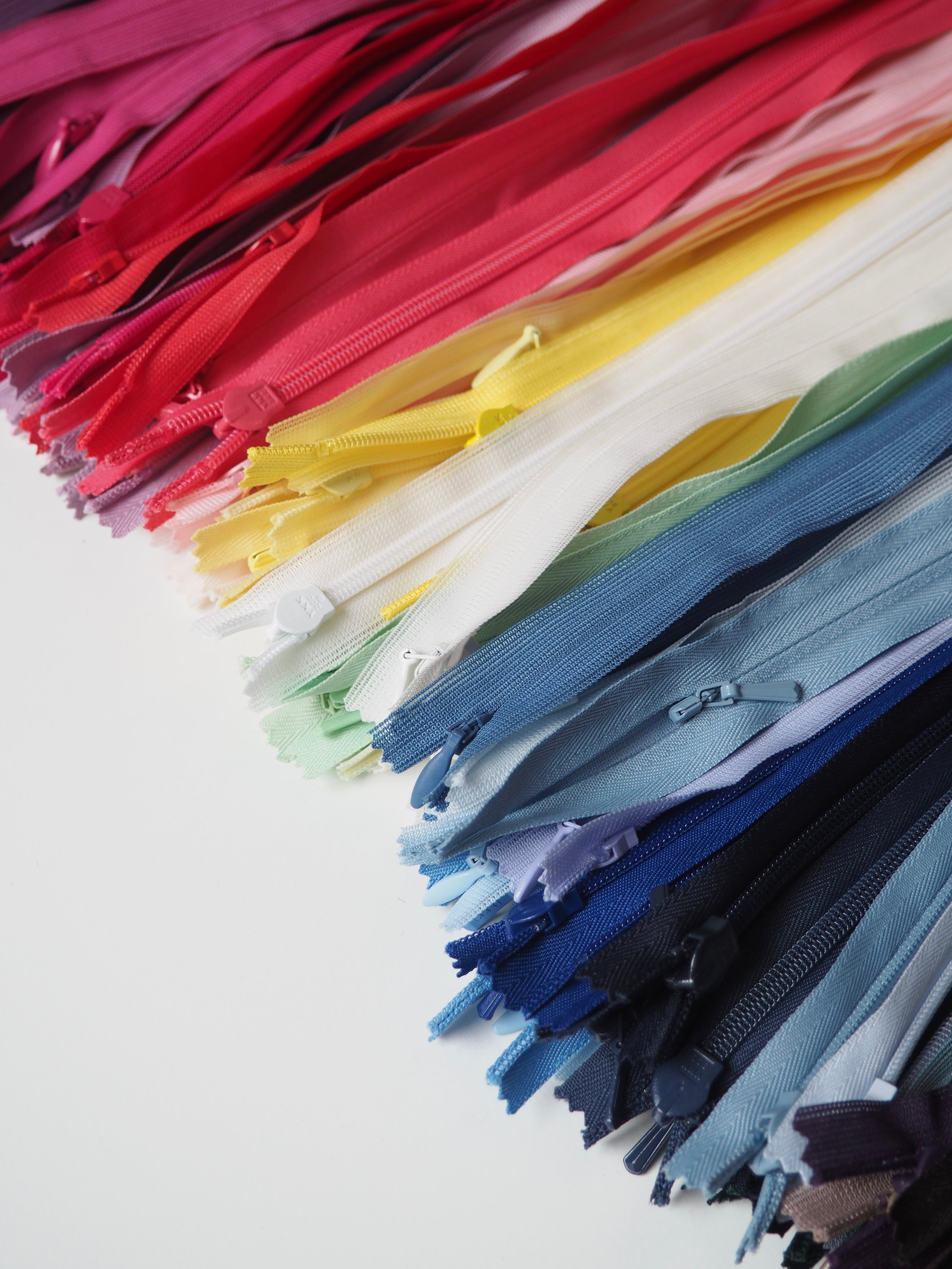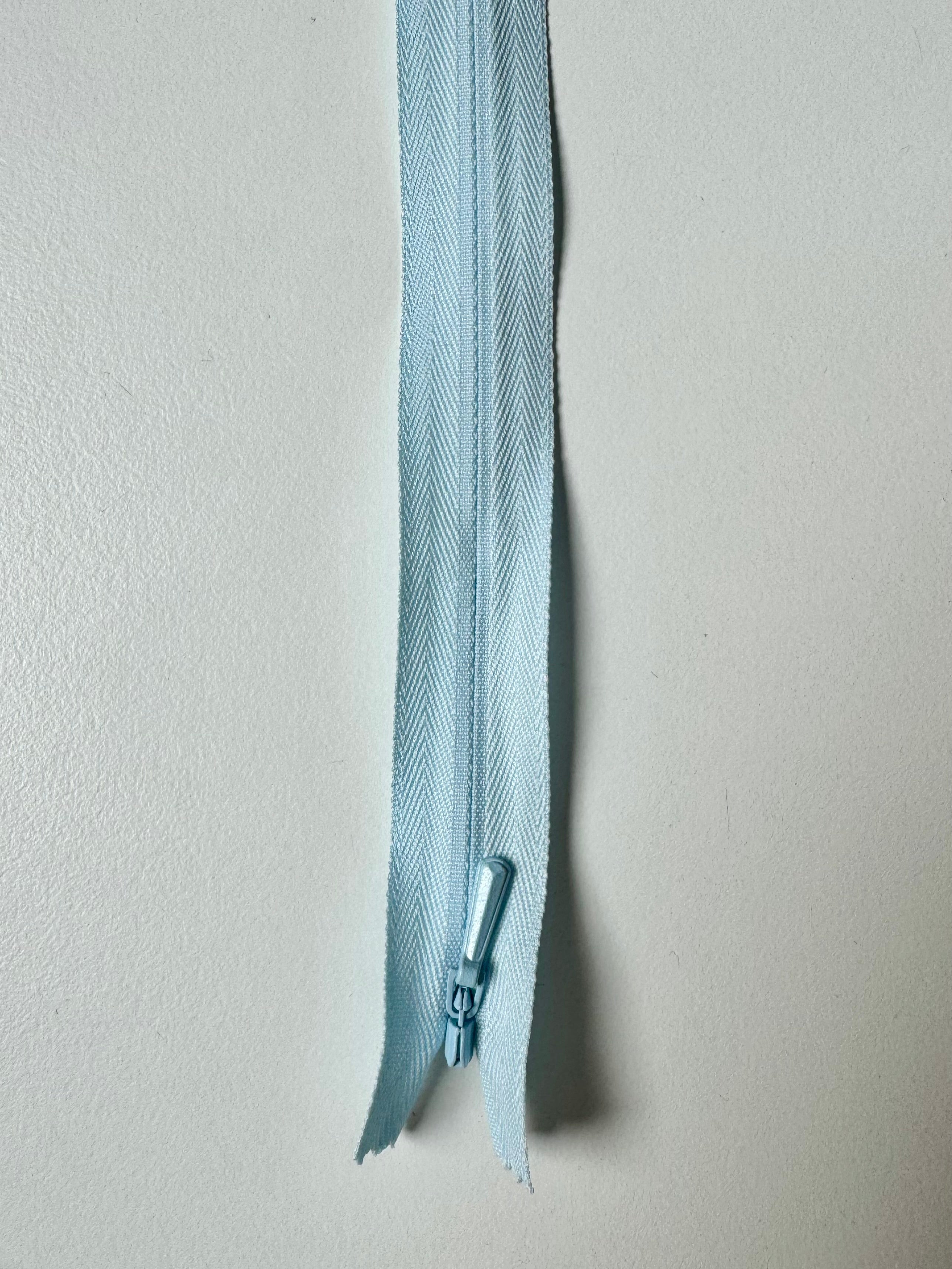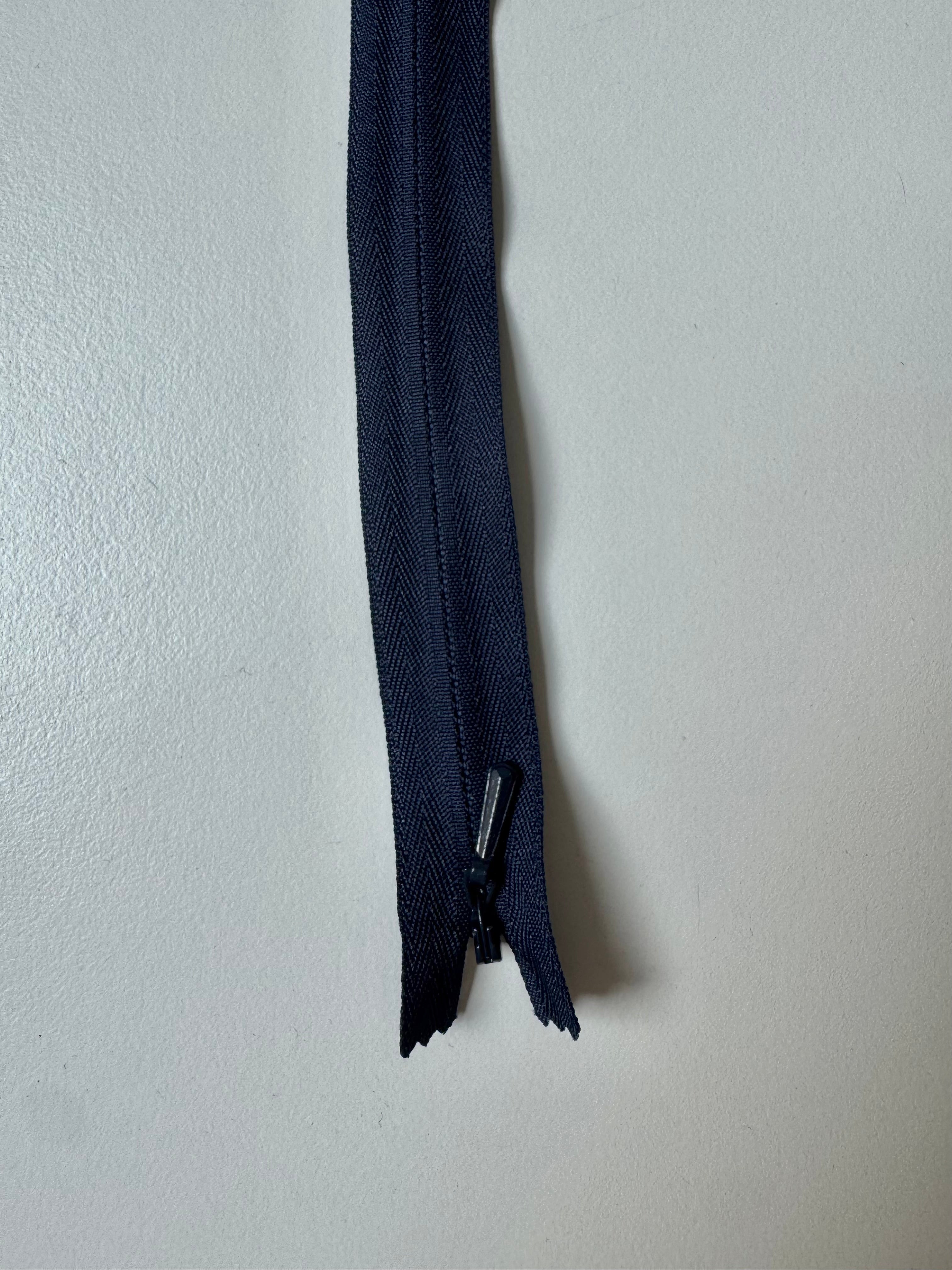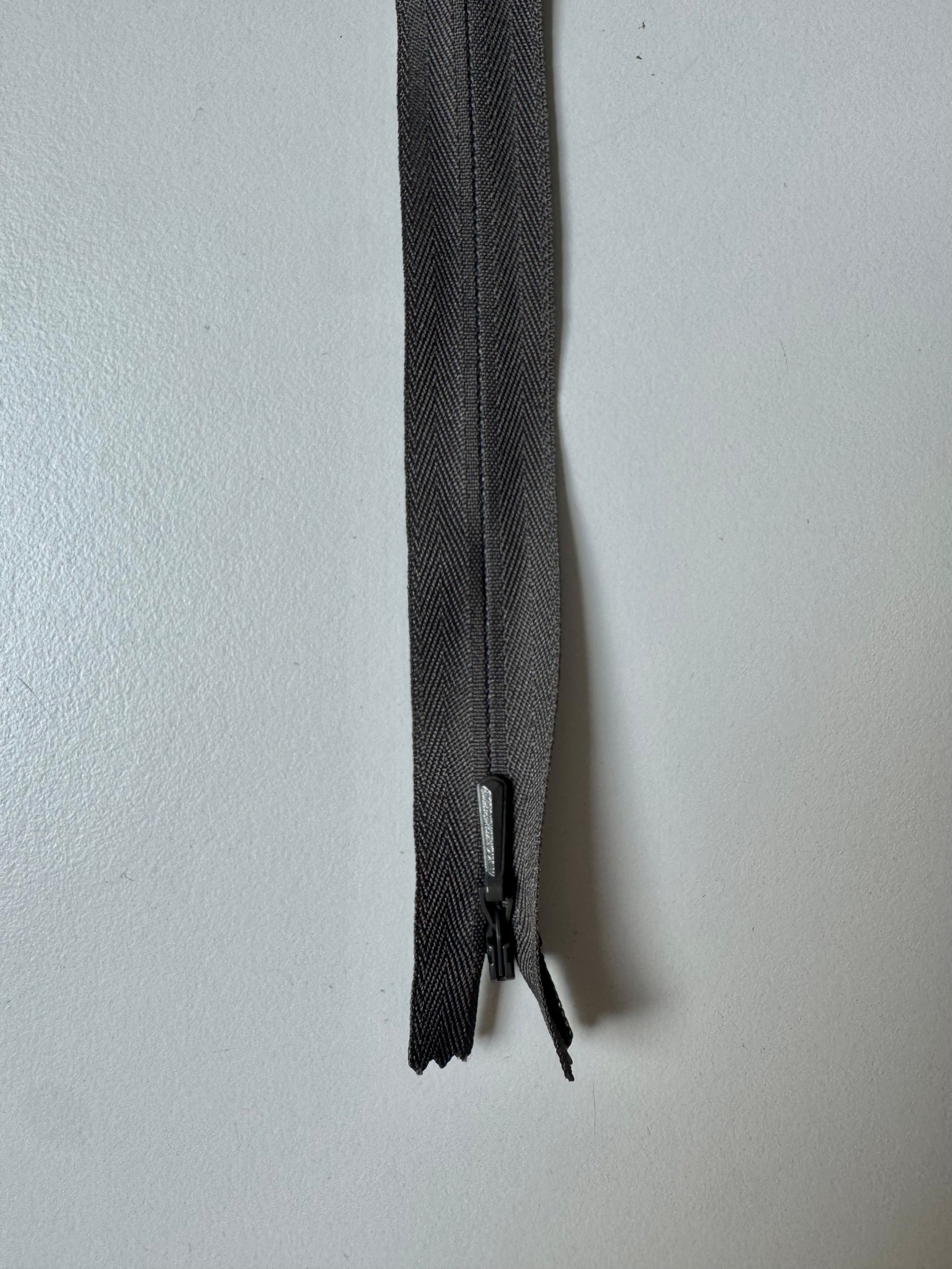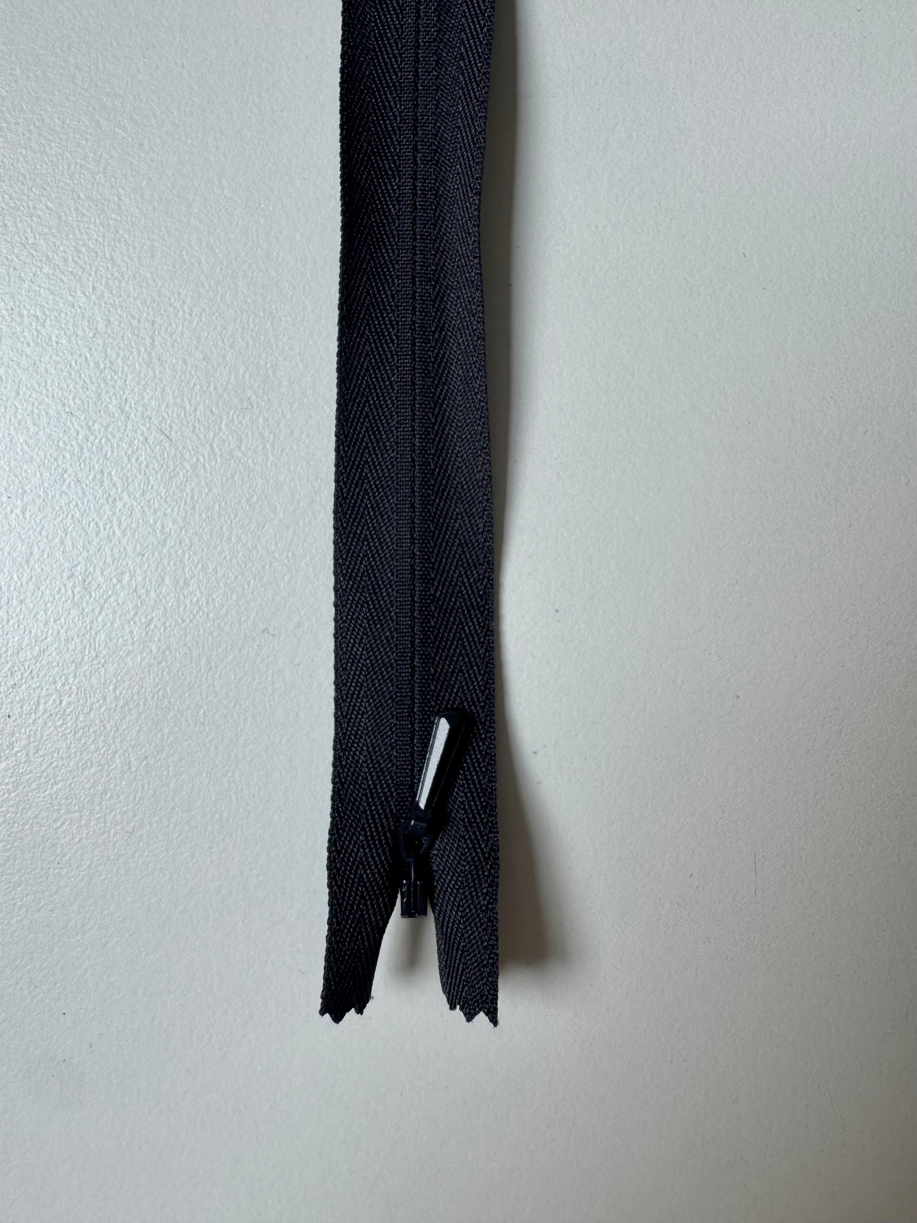 Closed end invisible zips. Plastic teeth and metal zipper pull. Perfect for using as a hidden closure.